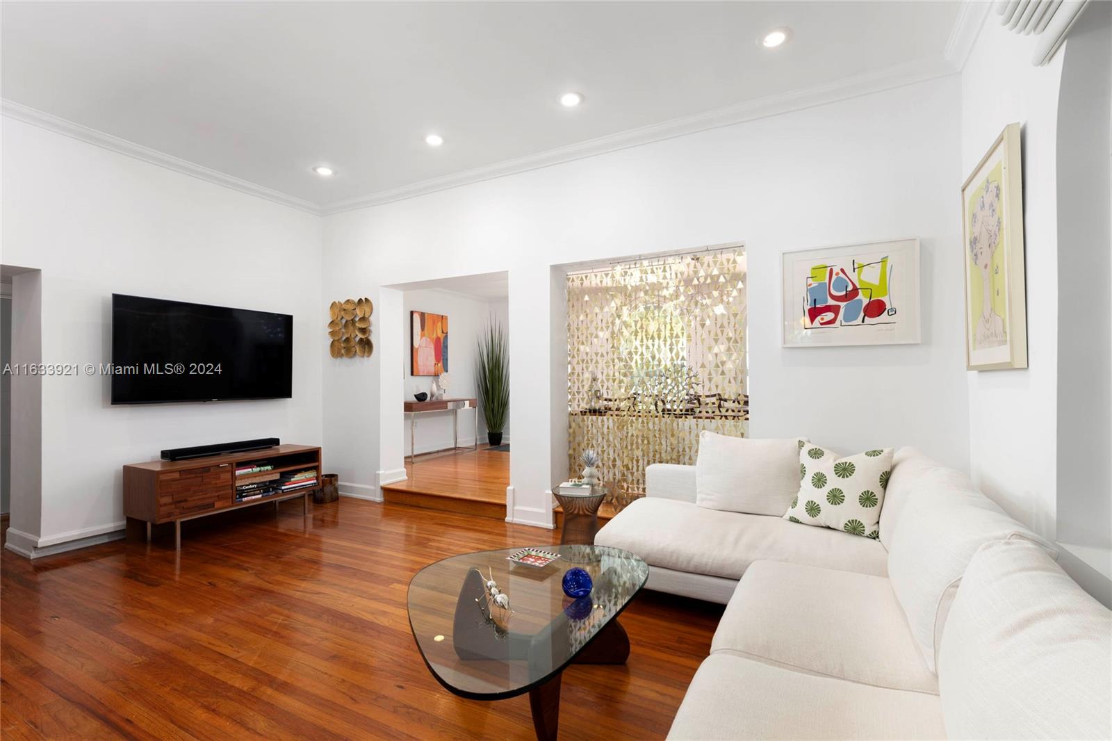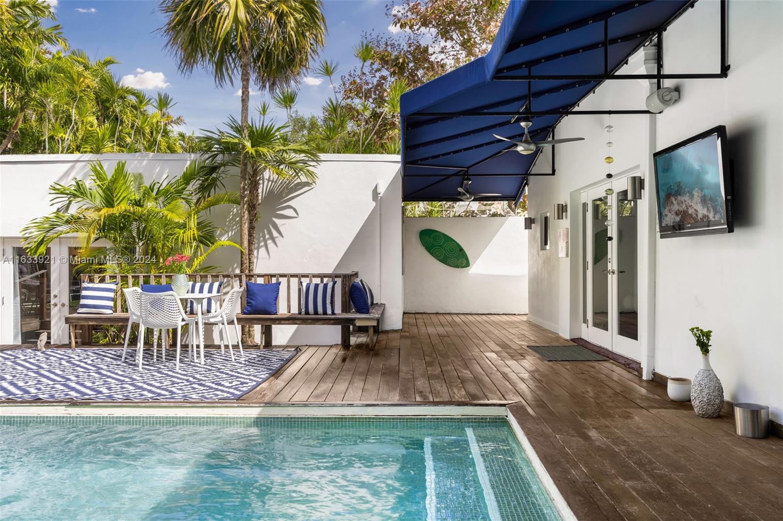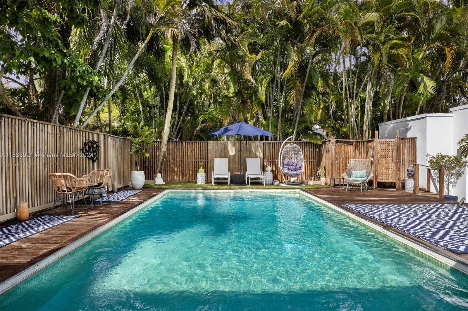 Captivating home + detached guest house on an idyllic, tree canopied street in the lush South Grove neighborhood aptly named "Utopia". Light-filled living spaces seamlessly blend classic architectural details w/ a modern vibe. Timeless features include glistening hardwood & porcelain tile flooring, a wood-burning fireplace and an elegant formal dining room w/ tall arched windows overlooking dense tropical foliage. Updated, European-style kitchen w/ sleek cabinetry, quartz countertops & built-in breakfast banquette. The spacious primary suite has custom walk-in closet, spa-like bath & French doors that open to an expansive Ipe wood deck & tranquil pool. Your ultra-private backyard oasis awaits you. Walk or bike to the historic Grove village's cafes, boutiques and bayfront parks & marinas.