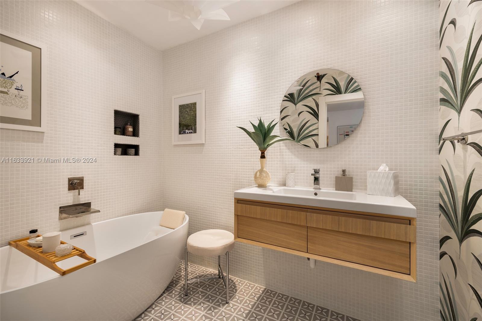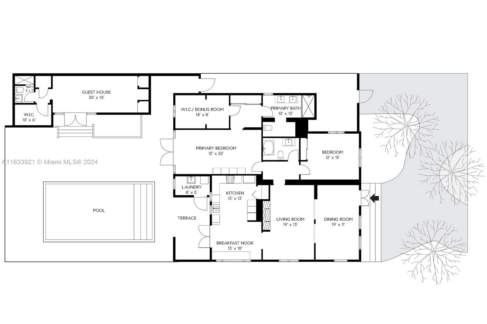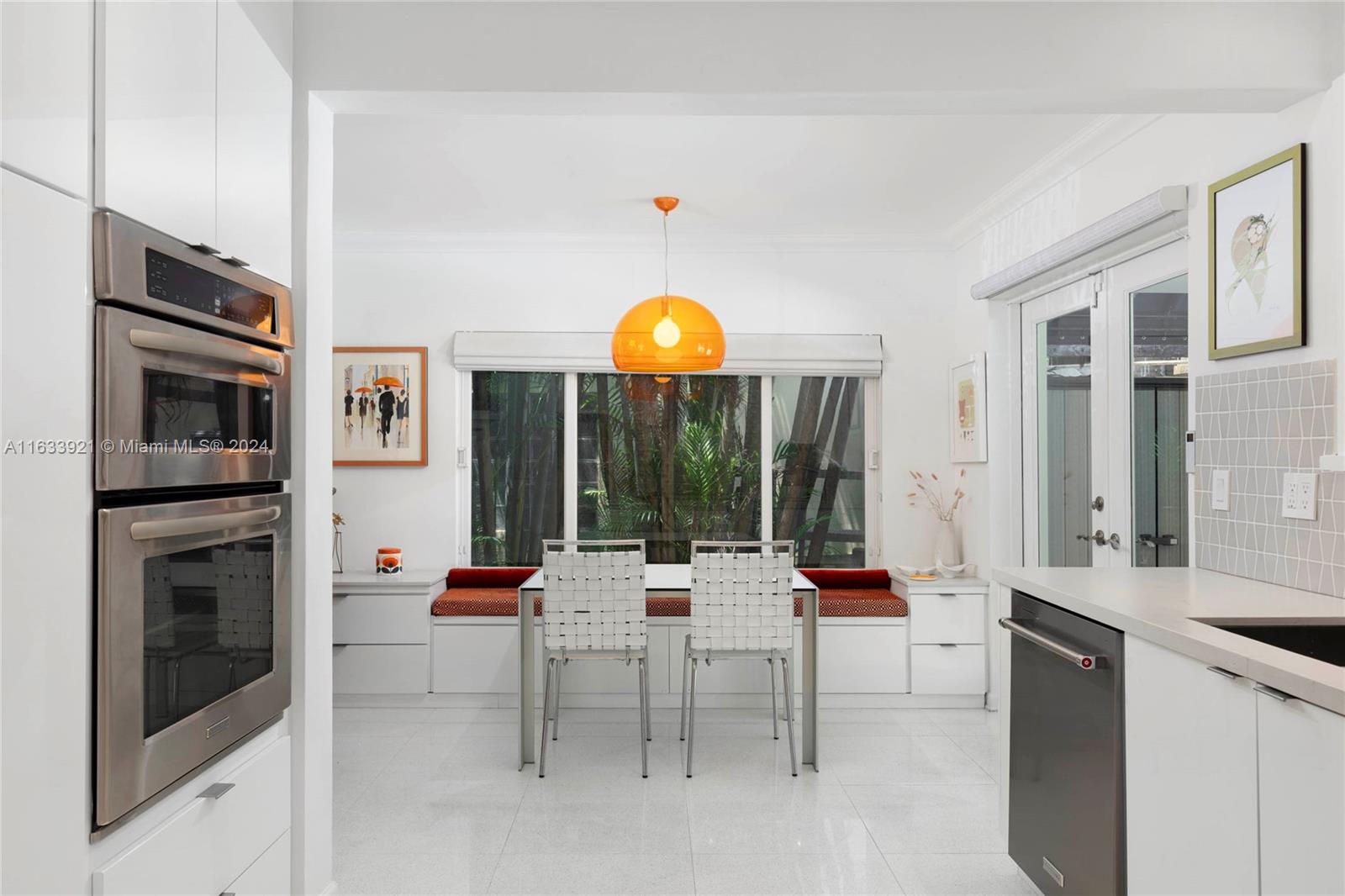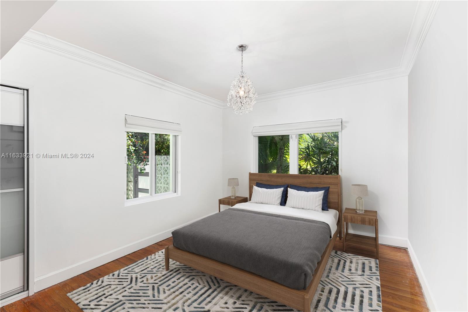 Captivating home + detached guest house on an idyllic, tree canopied street in the lush South Grove neighborhood aptly named "Utopia". Light-filled living spaces seamlessly blend classic architectural details w/ a modern vibe. Timeless features include glistening hardwood & porcelain tile flooring, a wood-burning fireplace and an elegant formal dining room w/ tall arched windows overlooking dense tropical foliage. Updated, European-style kitchen w/ sleek cabinetry, quartz countertops & built-in breakfast banquette. The spacious primary suite has custom walk-in closet, spa-like bath & French doors that open to an expansive Ipe wood deck & tranquil pool. Your ultra-private backyard oasis awaits you. Walk or bike to the historic Grove village's cafes, boutiques and bayfront parks & marinas.