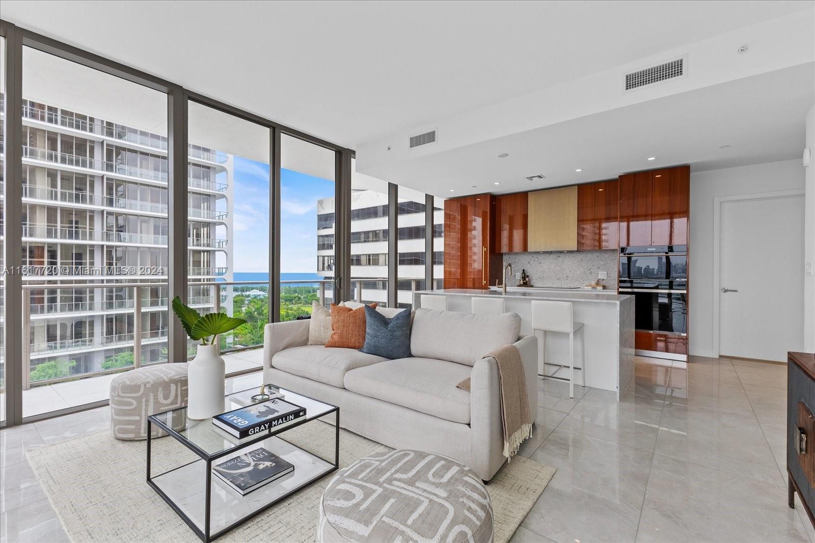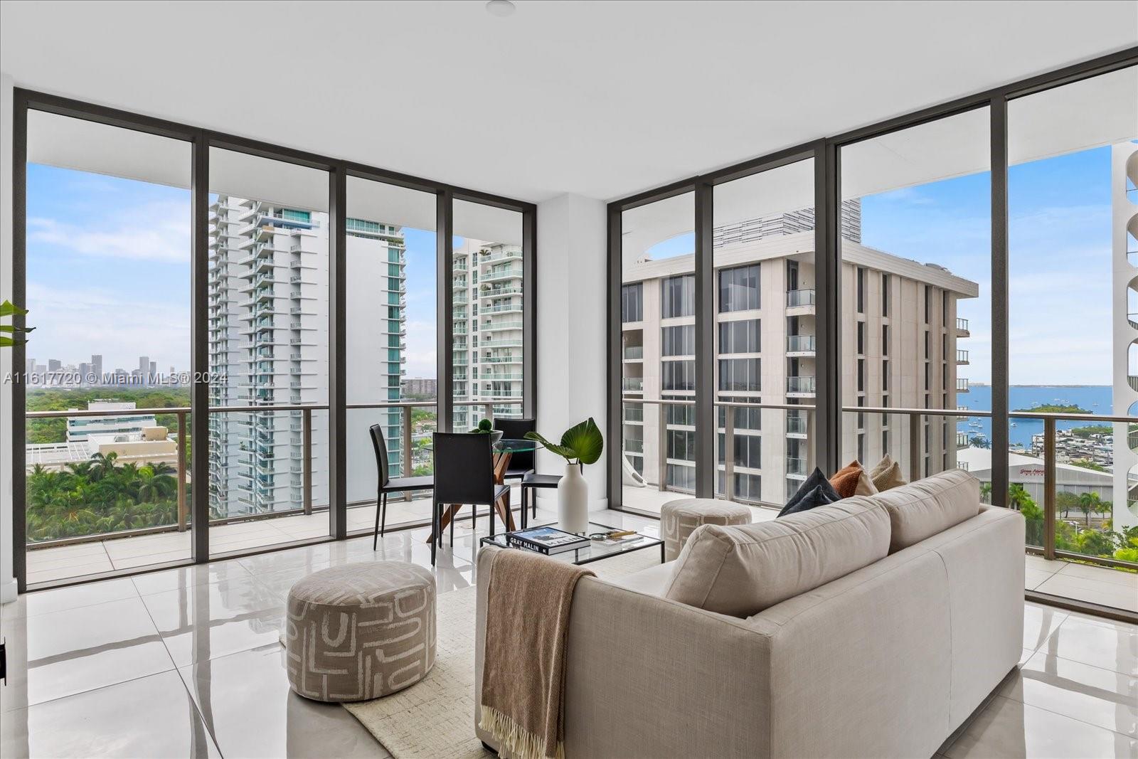 Discover unparalleled luxury at Mr. C Residences in Coconut Grove in this 2 Bed/2.5 Baths home. This corner unit features 1,453 Total SF w/ expansive open floor plans w/ floor-to-ceiling glass windows offering breathtaking panoramic views of the city skyline, bay waters, and lush Grove surroundings. Featuring private outdoor terraces, & exquisite finishes such as terrazzo & quartz countertops. Italian cabinetry & premium Wolf & Sub-Zero appliances, while porcelain tile floors & solid core wood doors enhance every space. Concierge reception, butler service, 24-hour valet & security. Enjoy the exclusive rooftop pool, bar and lounge, fully outfitted fitness center. Storage unit included. Elevate your lifestyle w/ the convenience of being in the heart of the Grove. Urban living at its best.