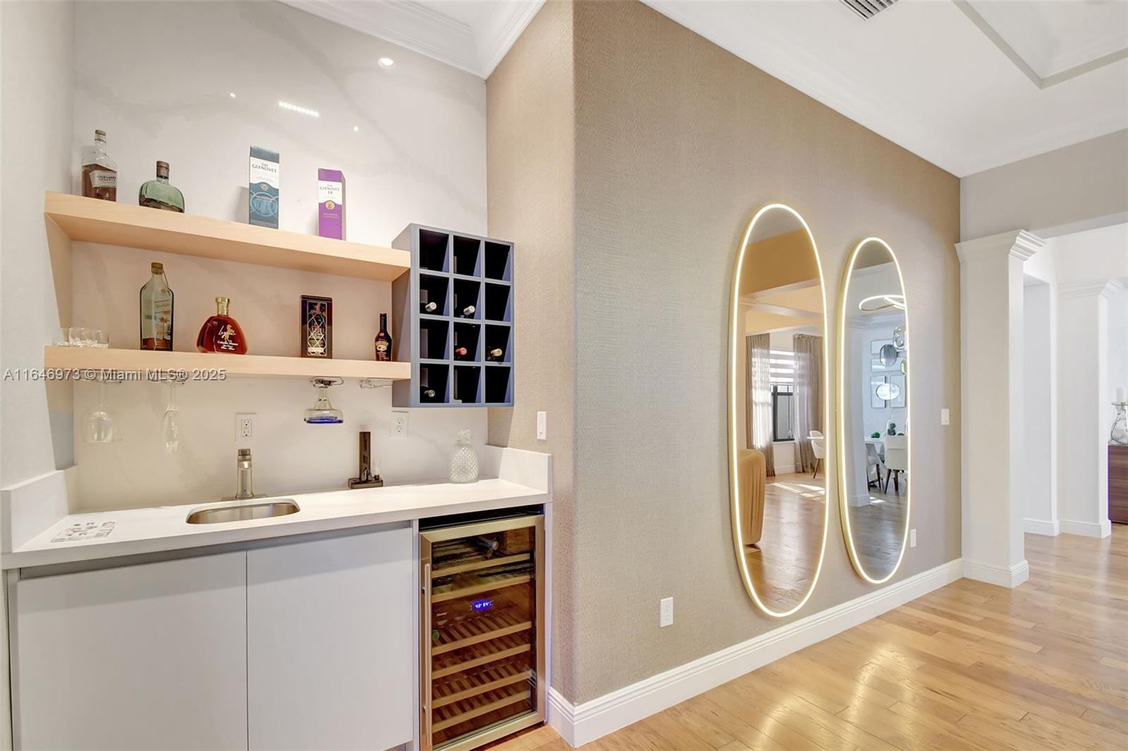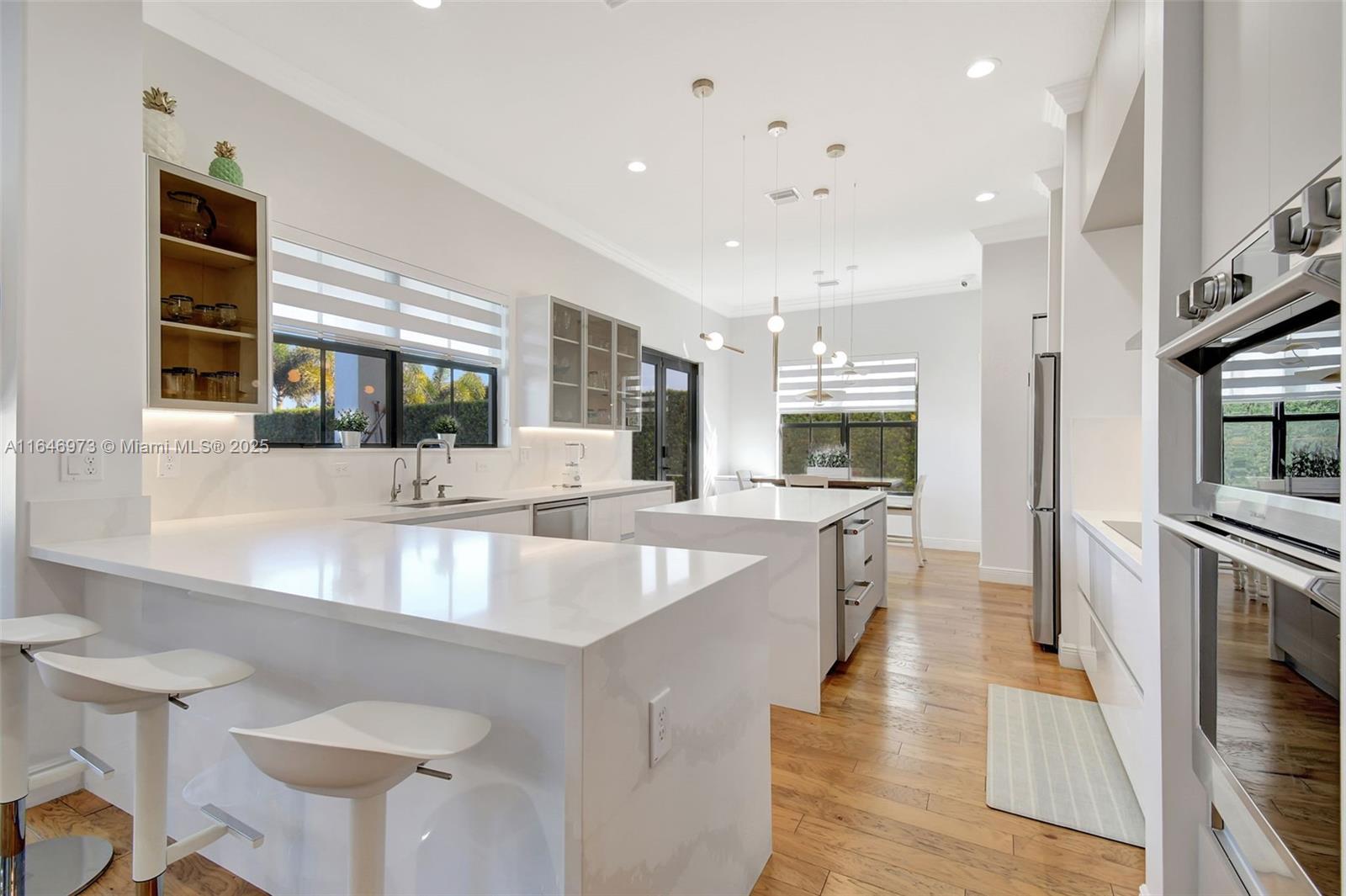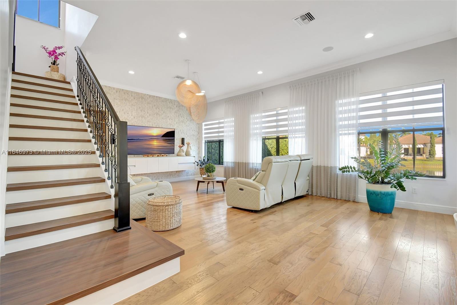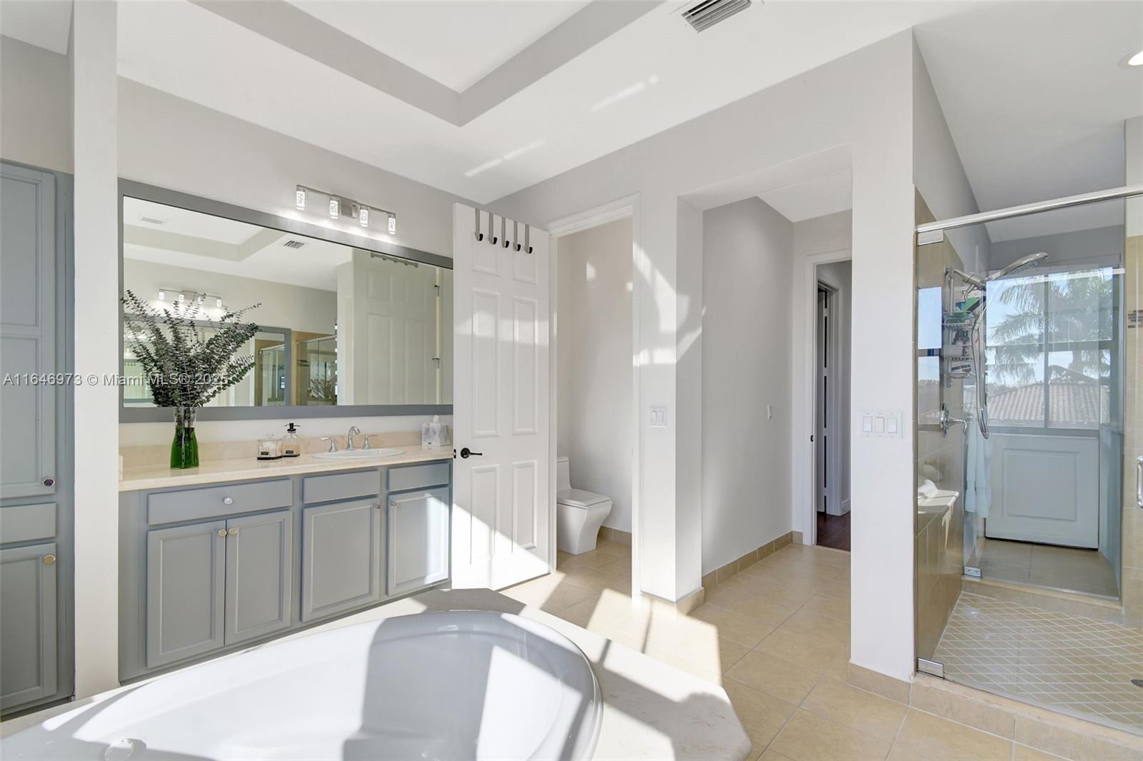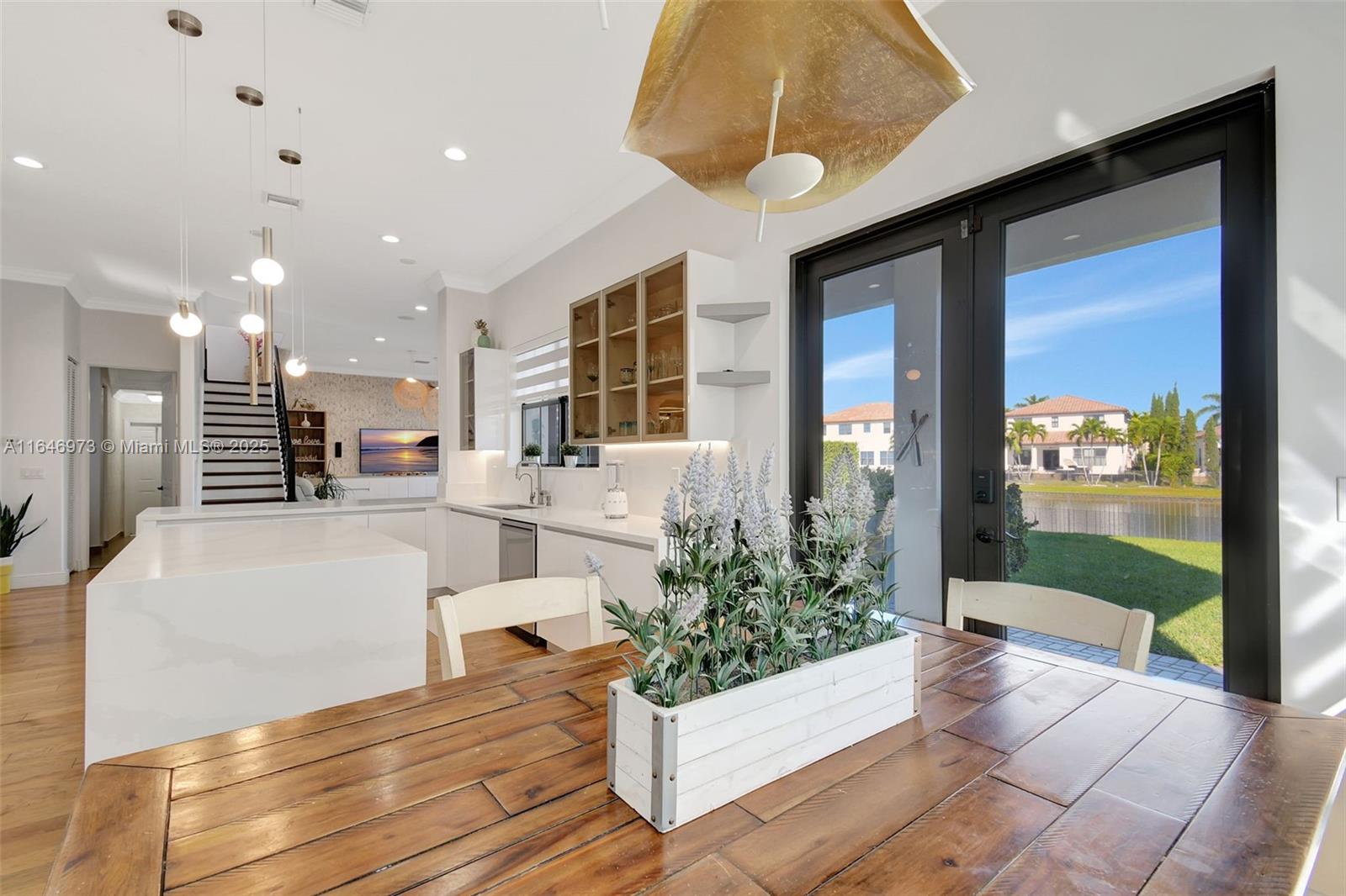 Discover this rarely available beautiful waterfront - Delano model that features 5 bedrooms, 5.5 baths including a separate full in law suite with over 3800 square feet of elegant living space this residence offers an open floor plan, high ceilings, and a gourmet kitchen a chefs dream - completely redone in 2023 with CALACATTA Quartz, stainless steel appliances and a family HUB Samsung refrigerator. Yes there is room for a pool as it sits on a lot well over 10,000 sq ft - a the luxurious master suite features a walk-in island closet a spa-like bathroom with dual vanities and a soaking tub. All Bedrooms are upstairs; the only bedroom downstairs is the in-law suite with a full bath and separate entrance, curtains and water system do not convey. Great Location and A rated Schools