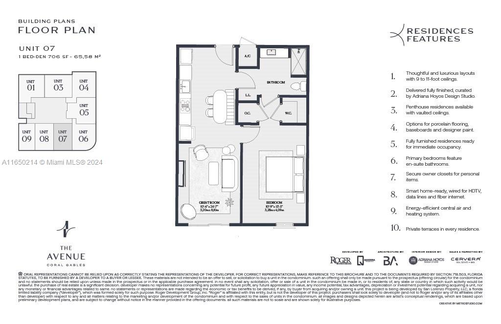 THE AVENUE- A 48 Unit, 8 story Boutique Luxury building. Comprised of 1- and 2-bedroom Residences. All Designer Decorated units by Adriana Hoyos, who has redefined the sophisticated tropical luxury with a touch of European elegance. Floor plans & layouts range between 571 to 978sqft, with 9-to-11-ft ceilings. Smart home ready, wire HDTV, data Lines & fiber Internet. Residences will enjoy flexibility in private leasing or thru the Hotel property management. Make it your Permanent Home or Pied a' Terre or Luxury Condo Hotel. Lobby Level will have 24 Hr Concierge, 24 Valet Parking & European style cafes & boutiques. Close to The Shops at Merrick Park, world class dining, shopping and exercising, strolling in the beautiful garden surroundings. Estimated delivery date is Q2-2025.