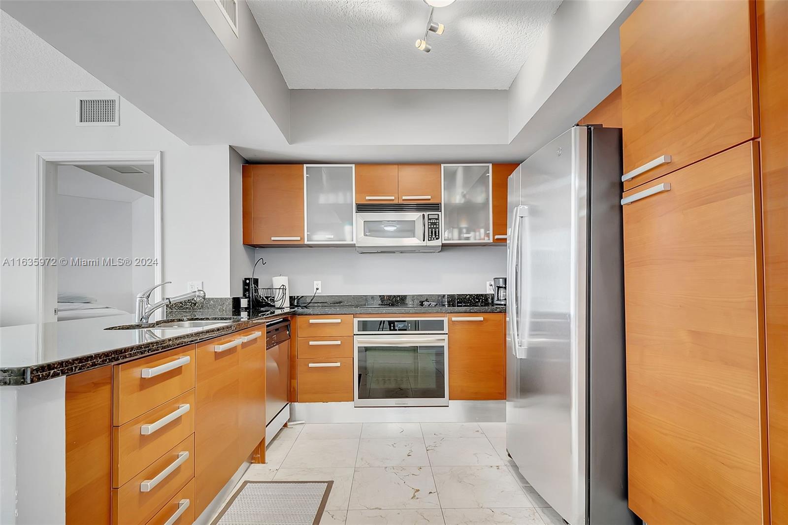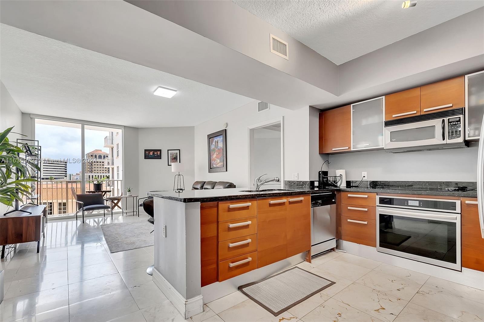 Fantastic 2 bedroom/ 2 bath condo in the Minorca building in Coral Gables. Kitchen has spacious eat-in snack bar and plentiful cabinetry and counterspace. Split bedroom floorplan. Washer/dryer in unit. Balcony with courtyard view, overlooking the pool area. Wonderful primary suite with large closet and space for a desk/office. Primary bath has large tub and glass enclosed shower. 2 assigned and covered tandem parking spaces plus storage room. Building amenities include pool and exercise room, 24-hour security/ front desk attendant and secure elevator. Centrally located with close proximity to all the restaurants the Gables has to offer, grocery store and a short distance to the airport.