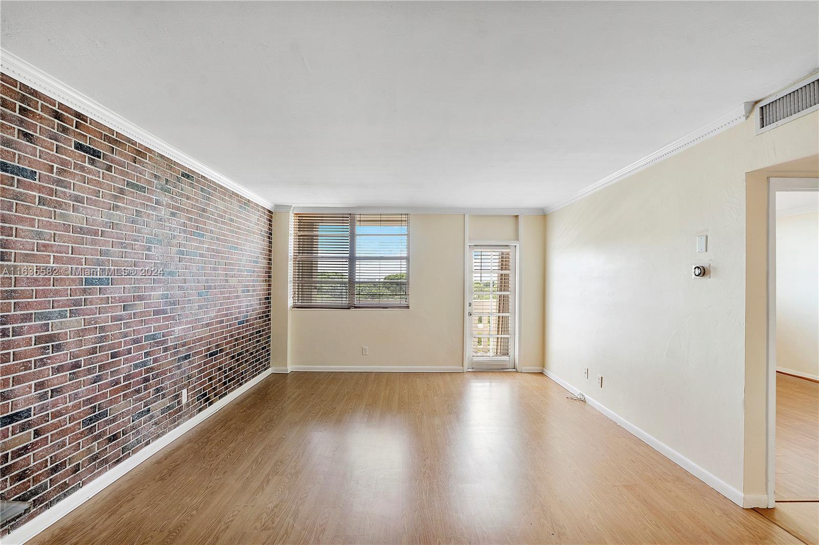 Large one bedroom with 1 bathroom [880 sq f} with wood floors throughout, a genuine Chicago Brick wall in the living room, and large master closet in the bedroom. The unit is nicely updated and has been well maintained. Large bathroom with bathtub-shower. This unit faces west with beautiful sunset views & treetop views and The Biltmore Hotel to the north. Accordion shutters on all windows and terrace door. Gables Waterway Towers has 24/7 Valet, Concierge & security. Amenities include a heated pool overlooking the Bay, Boat Slips for sale or rent, fully equipped Gym, party & Game Rooms & beautiful front & rear Lobby's. It's Like living at a resort, all year long.