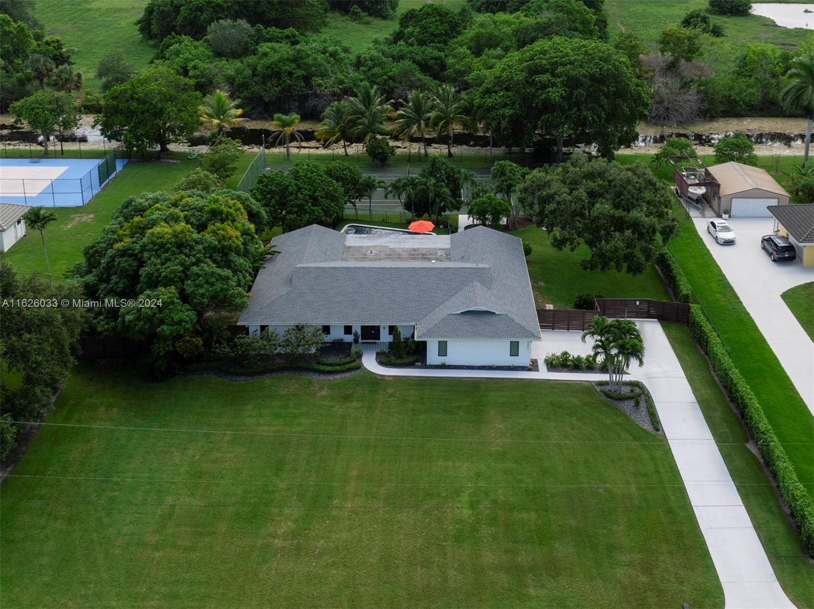 Discover true peace in Majestic Groves, an exclusive community with no HOA. This updated gem on a 46,194 SF lot boasts a tennis court, garage, saltwater heated pool, rare mature fruit trees, and canal-side privacy. Inside, indulge in premium finishes and smart-home technology that elevates your experience, ensuring more convenience, safety, and enjoyment. Integrated speakers and lighting enhance the atmosphere, enabling you to effortlessly create any ambiance you desire. The kitchen is adorned with custom Italian cabinetry crafted with some of the most durable and long-lasting materials on the market featuring Bosch appliances, a Sub-Zero fridge, and ample storage. Other valuable features throughout are best appreciated in person. Schedule a showing to see if this feels like home to you.
