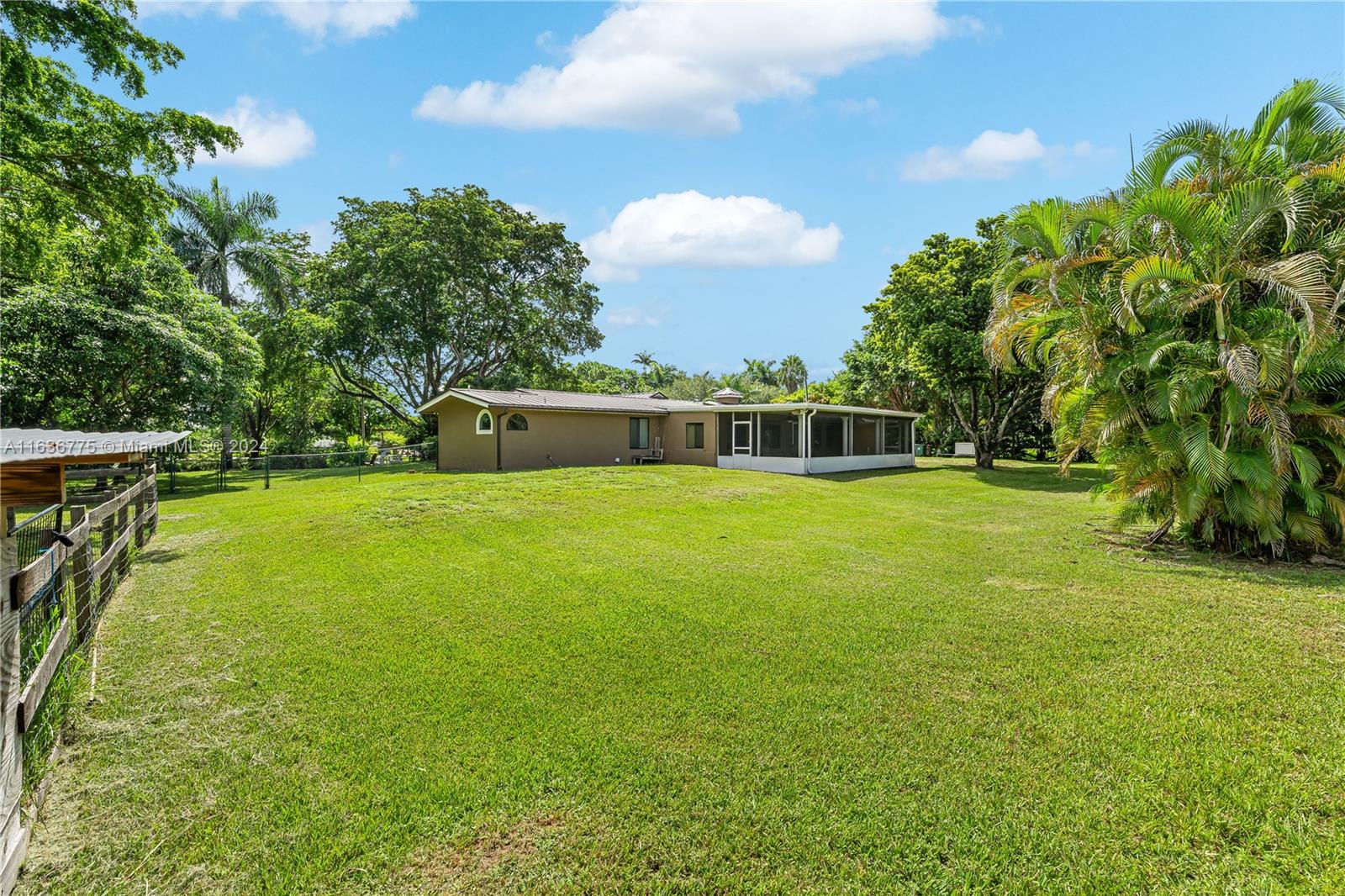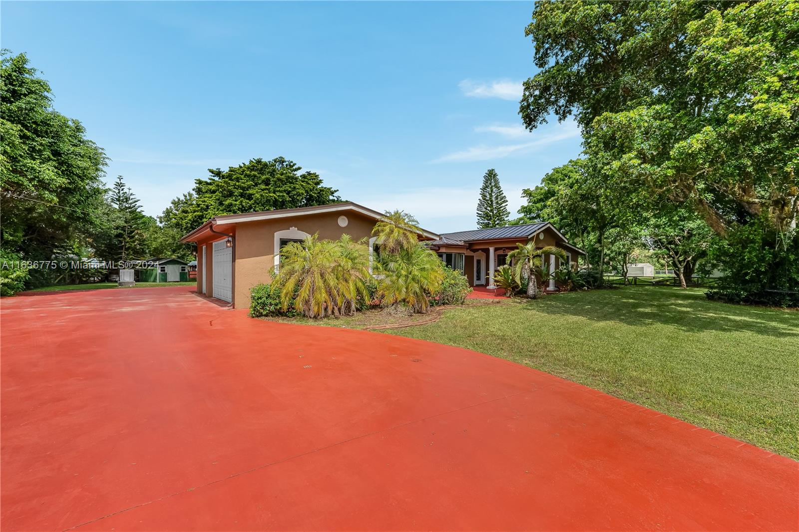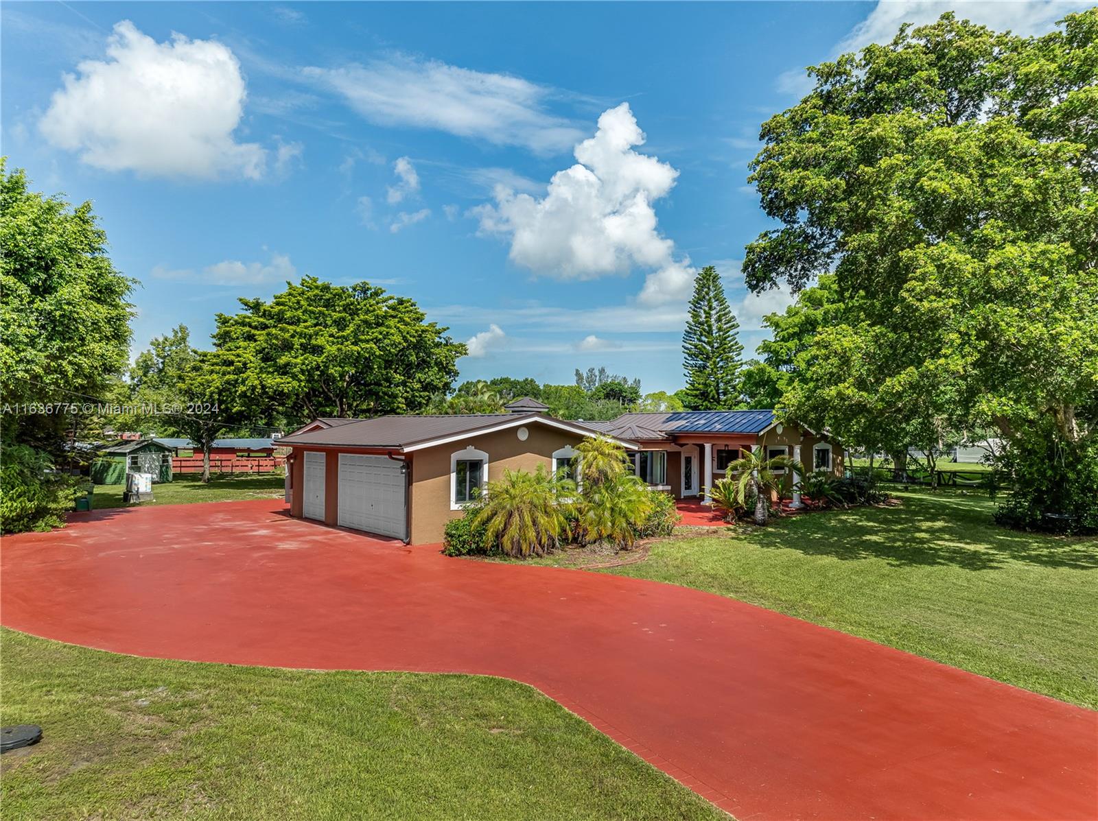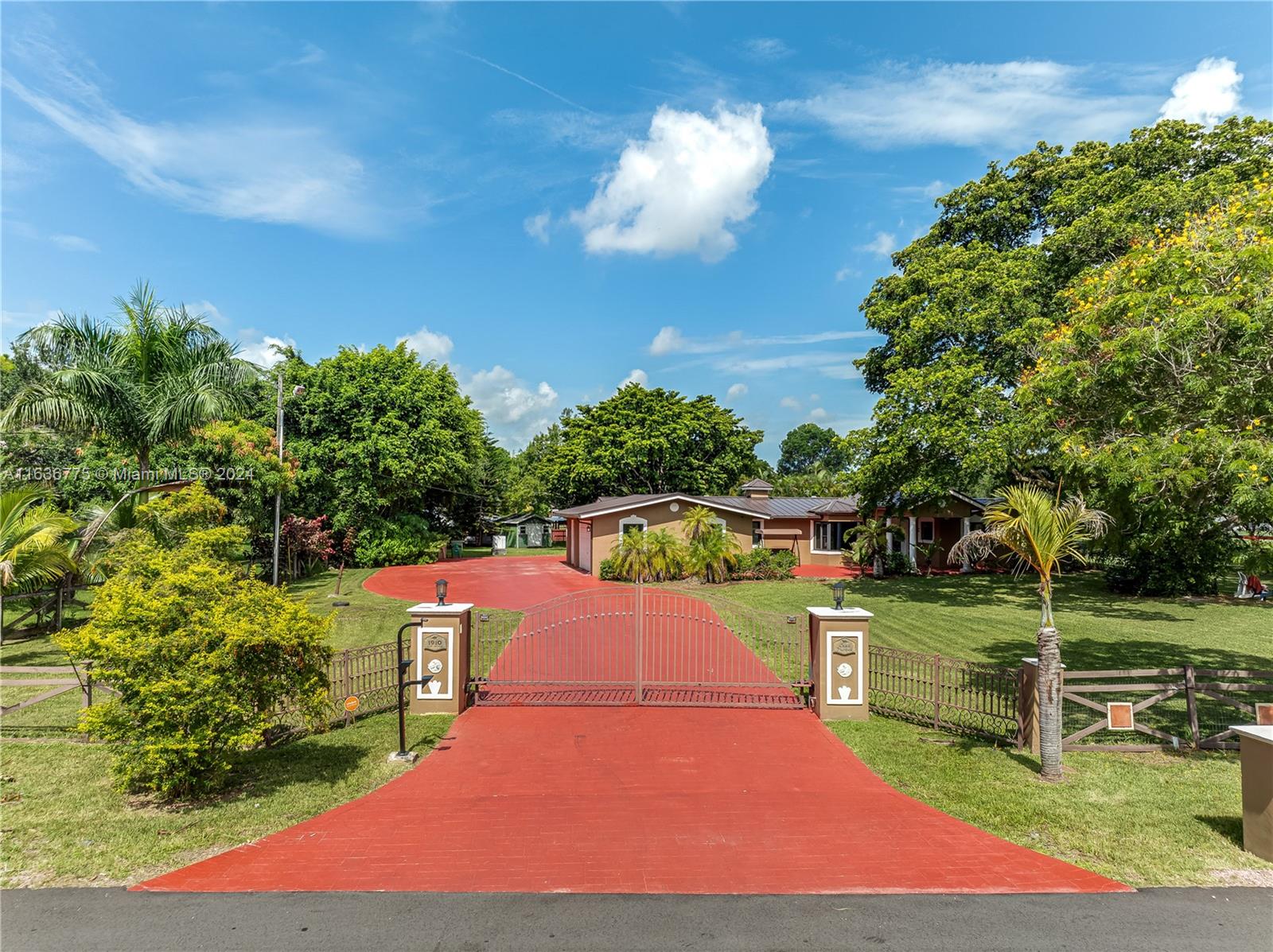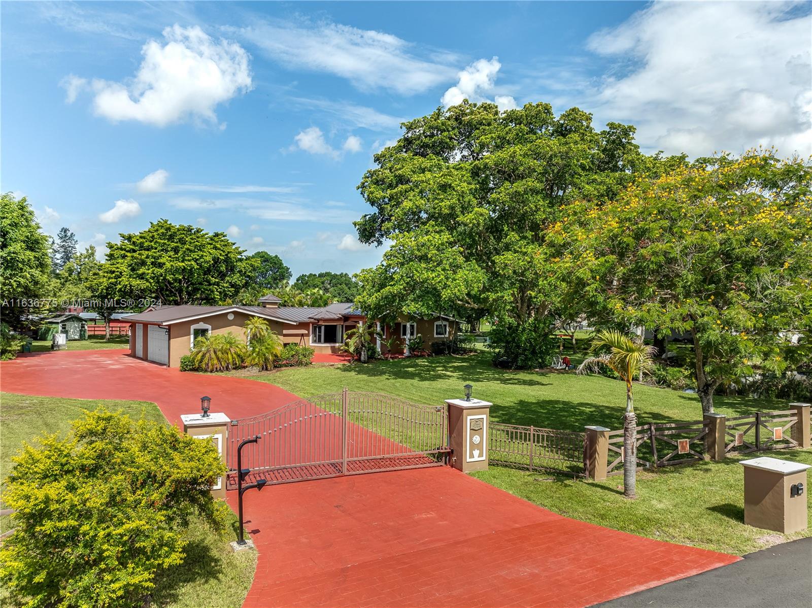 REDUCED! This is Davie living at its BEST! Bring your horses, goats, chickens and recreational vehicles to this acre estate home with NO HOA. Over $200,000 in recent upgrades including: New metal roof AND flat roof. New Cool Bear AC & ducts. New attic insulation. Other upgrades include impact windows, impact garage doors, updated septic system & more. Lots of room in this spacious home with 2 primary bedrooms. Convenient studio has full bath can be used for office, guests, generational living. Huge lot with peaceful stocked pond to enjoy and fish in. Goat pen & shelter (can be converted for horses). Large chicken coop. Car lovers dream with 3 car attached garage and 2 car detached garage. Beautiful fenced property with electric gate for security & privacy. Plenty of space for a garden too.