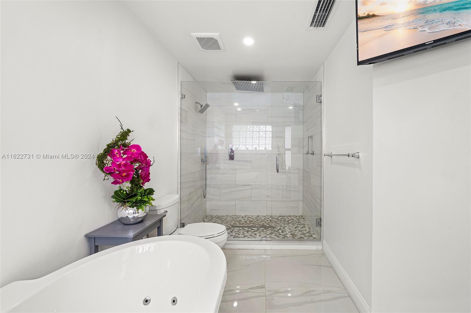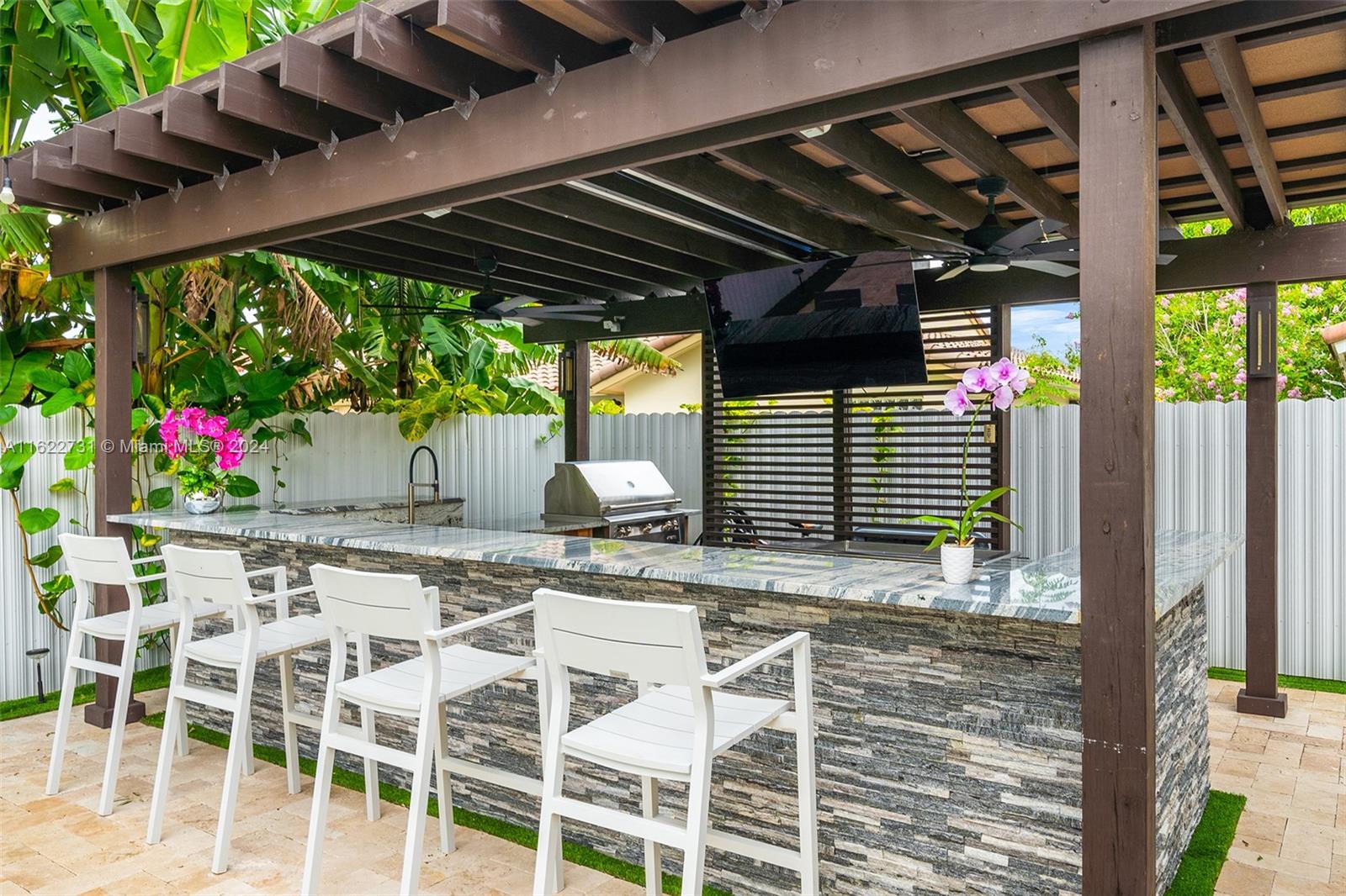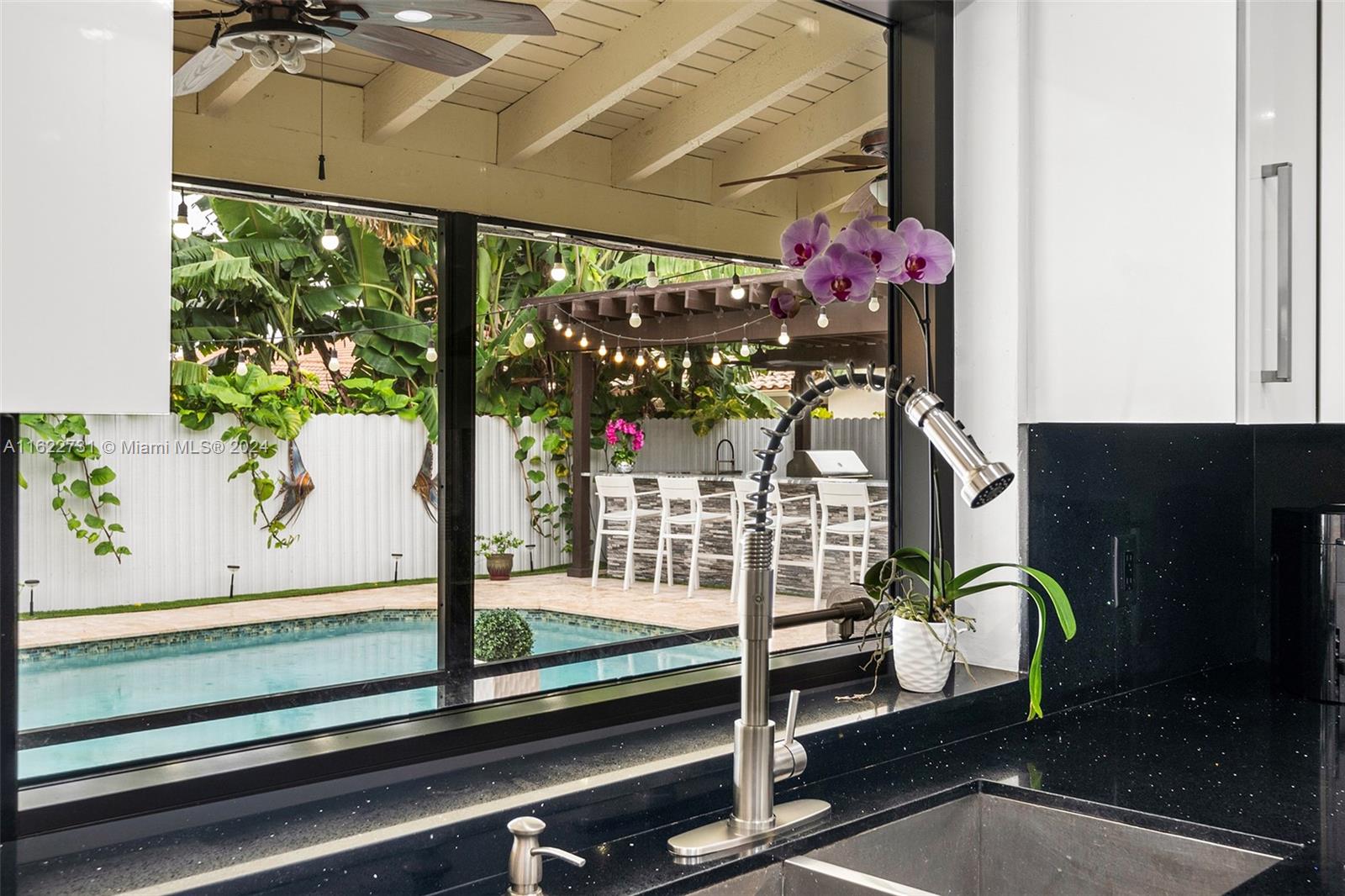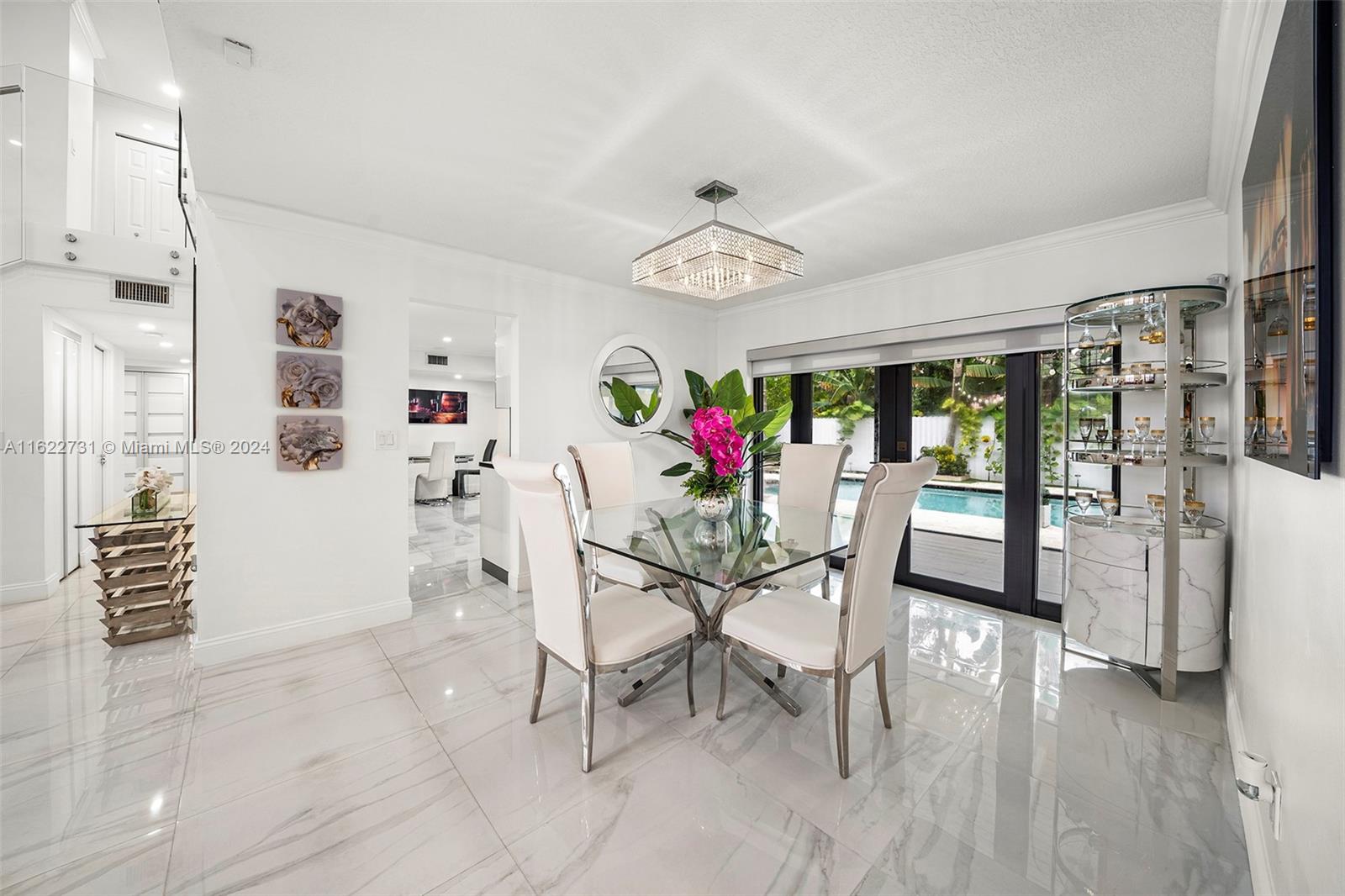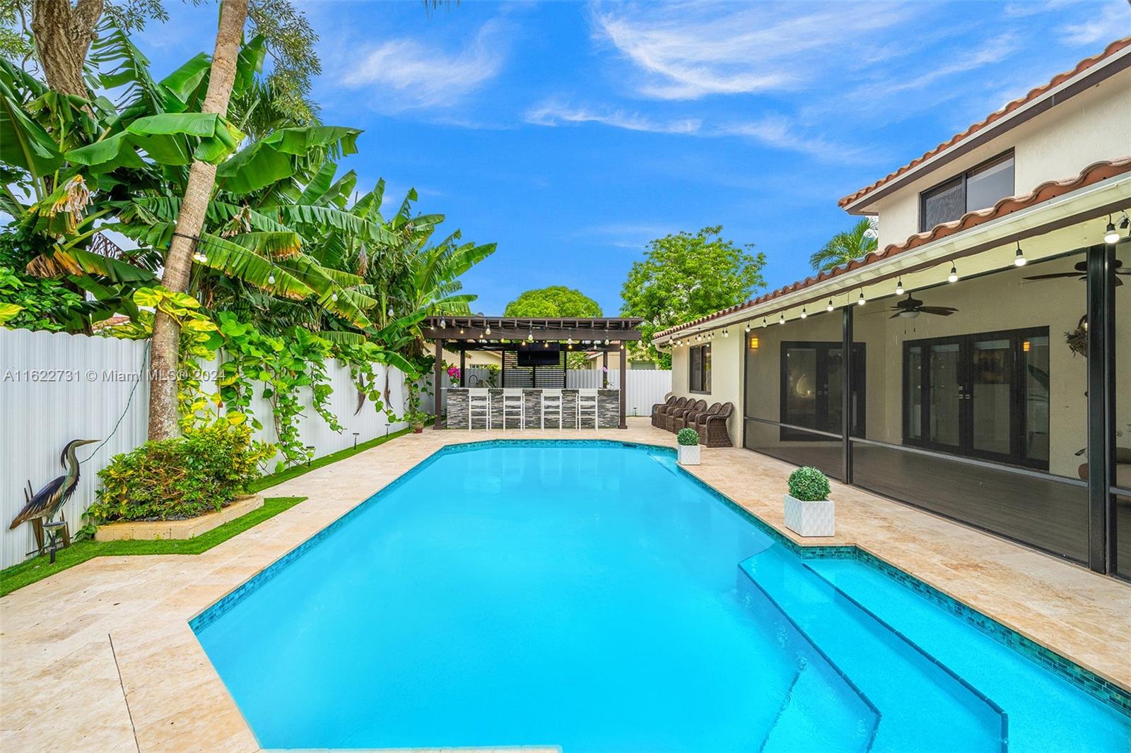 Paradise falls short, this one's a Masterpiece! Fully remodeled with stunning features including a jaw dropping new bar/grill area overlooking the wraparound travertine pool deck which offers ample side space for Parking Your Boat! The home comes with all impact windows & french doors & large Porcelain Tile on the 1st floor and a 2nd massive master bedroom on the 2nd floor. Upon entering you'll be greeted by the brilliance of modern architecture with a stunning glass railing & soaring ceilings. The kitchen has exquisite black quartz with Italian finish cabinets & Samsung high-end appliances. The oversized master bedroom comes with an upscale freestanding tub with jets & separate lavish shower. Near Airports, Fine Dining, Entertainment & A+ Schools, this is The One You've Been Waiting For!