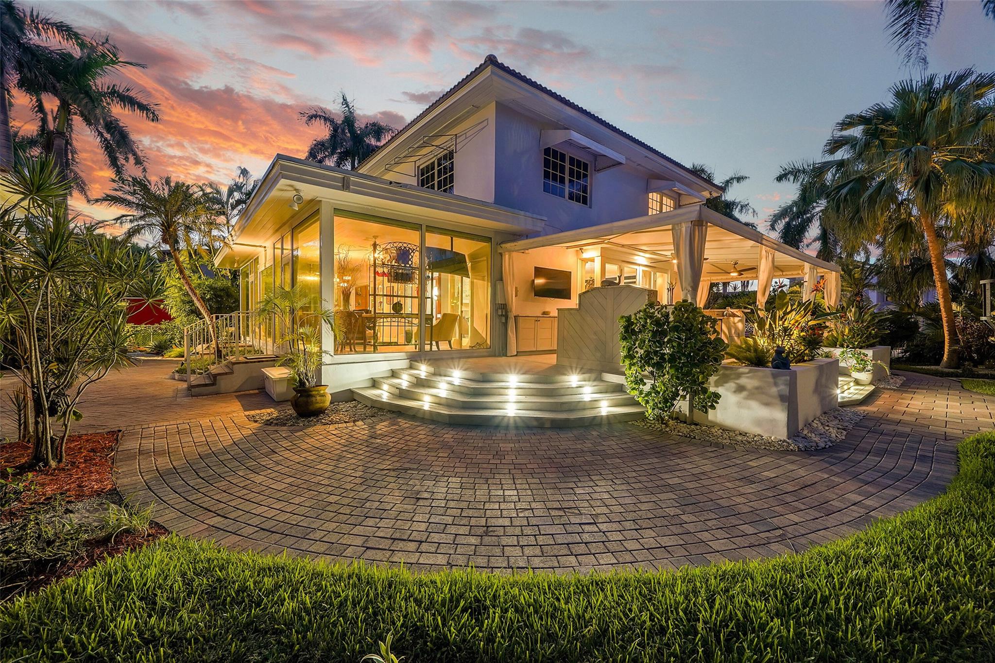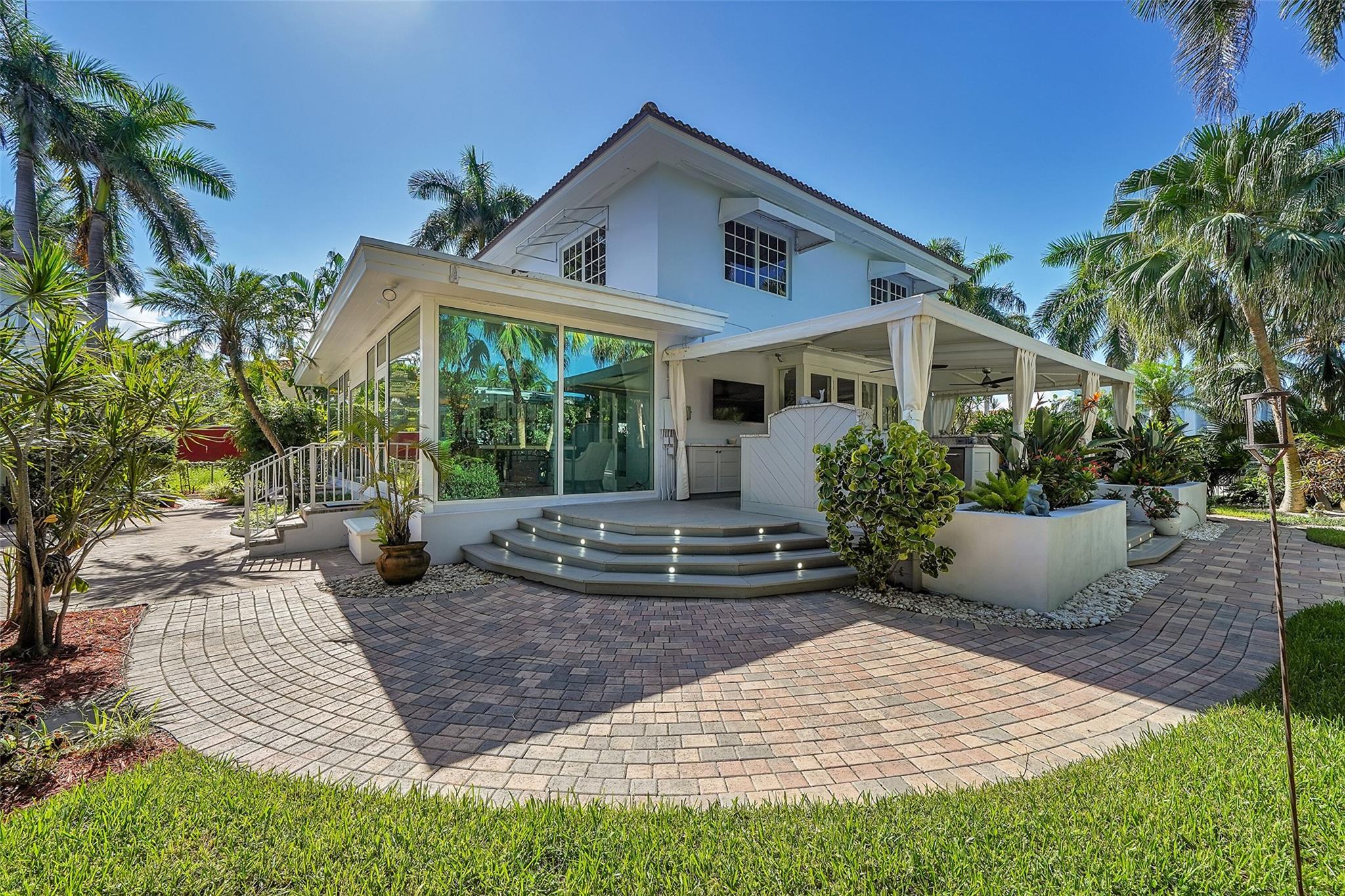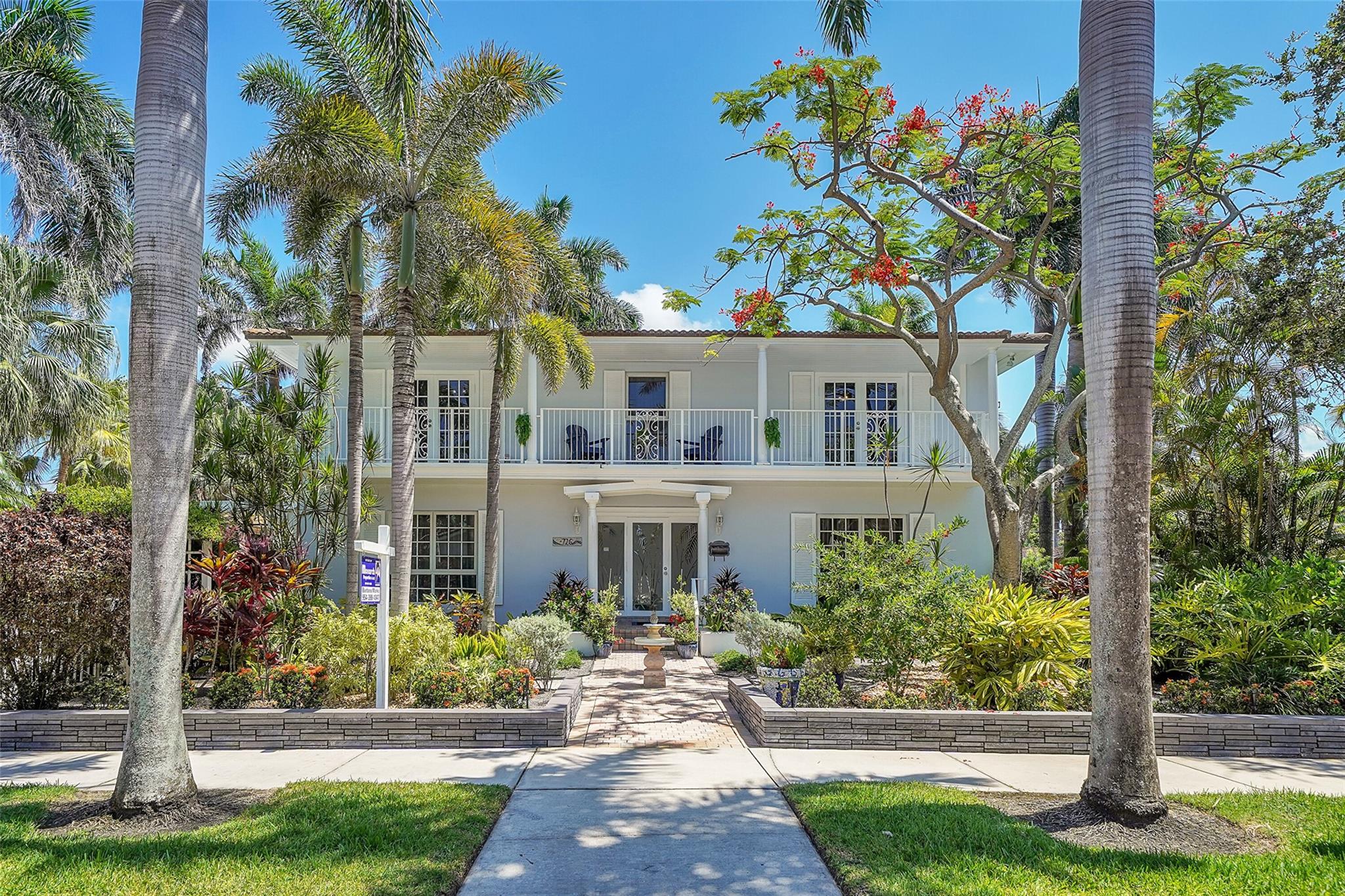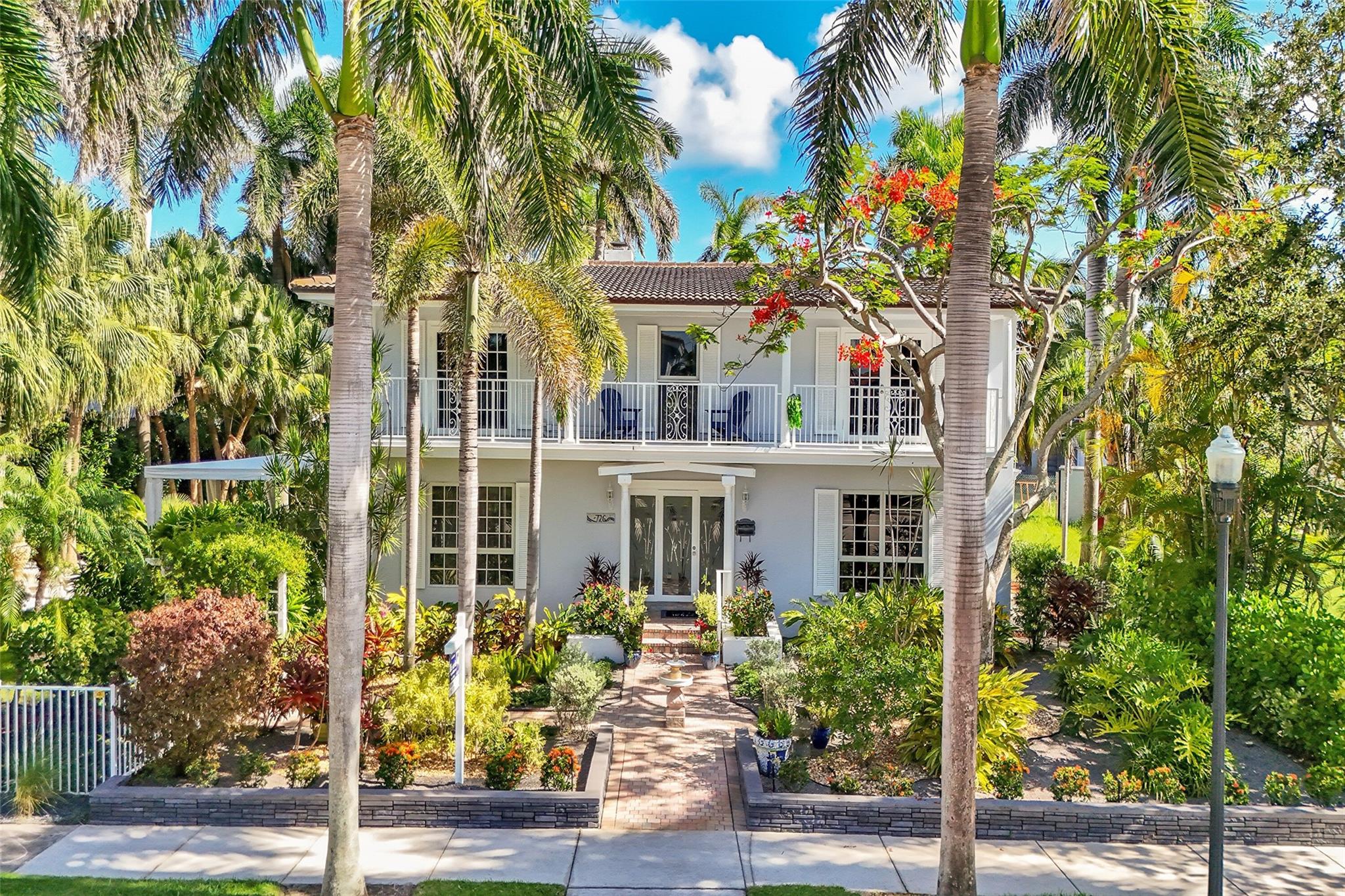 Charming 1946 Key West style home on palm-lined Tyler St, 3 blocks to Hollywood Beach. Lg dbl lot. 6 bed 5 bath, 5,550 SF w/ decks & balcony. Lovingly renovated, top-of-line materials. Lg bright open rms, Chef’s eat-in kit w/ custom cabinets, quartzite ctrs, French gas range, Sub zero refrig & built-in freezer & refrig drawers, huge pantry. Lg living rm w/ gas fireplace, 30’ dining rm w/ floor to ceiling impact glass & view of lush tropical landscaping & fountain. Covered deck w/ outdoor kit & bar w/ granite ctrs & 2 refrigs. 1st floor bedrm or office, 2nd floor w/ original wood flooring & 4 bedrms, one used as a walk in closet for primary bedroom w/ his & her baths. The carriage house apt has new deck & stainless appl. Air conditioned 2 ½ car garage w/ epoxy floor has plenty of storage.