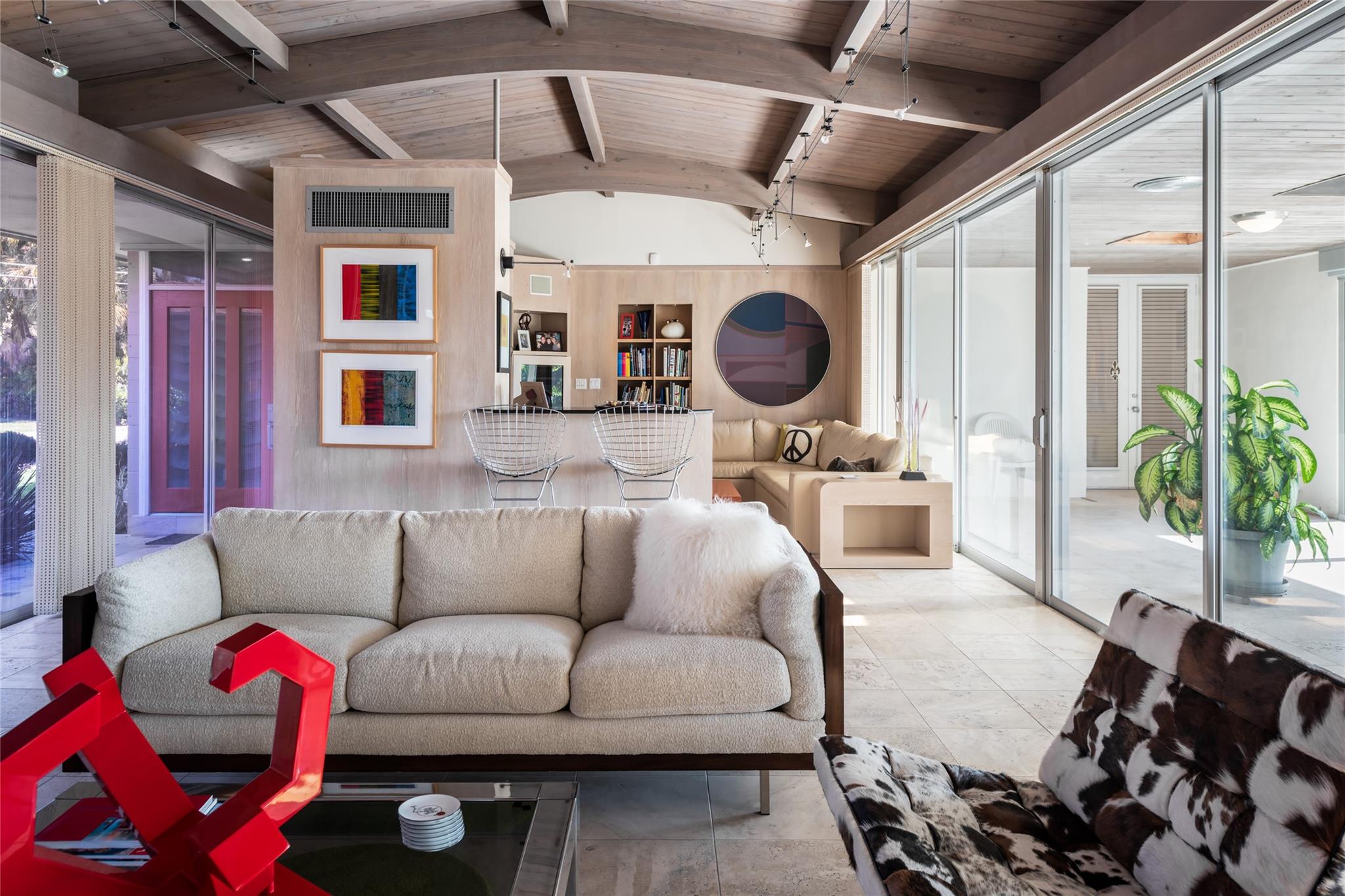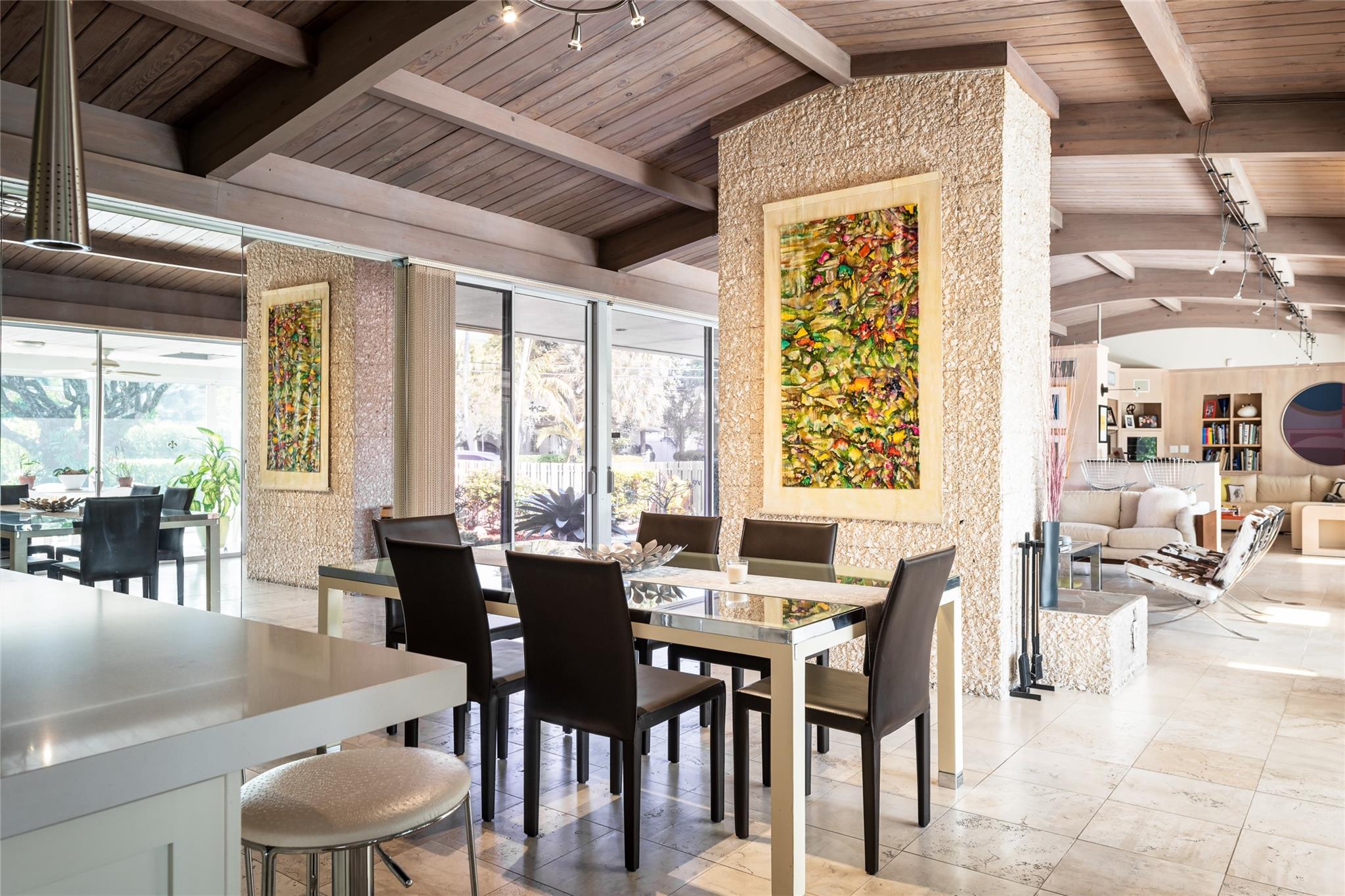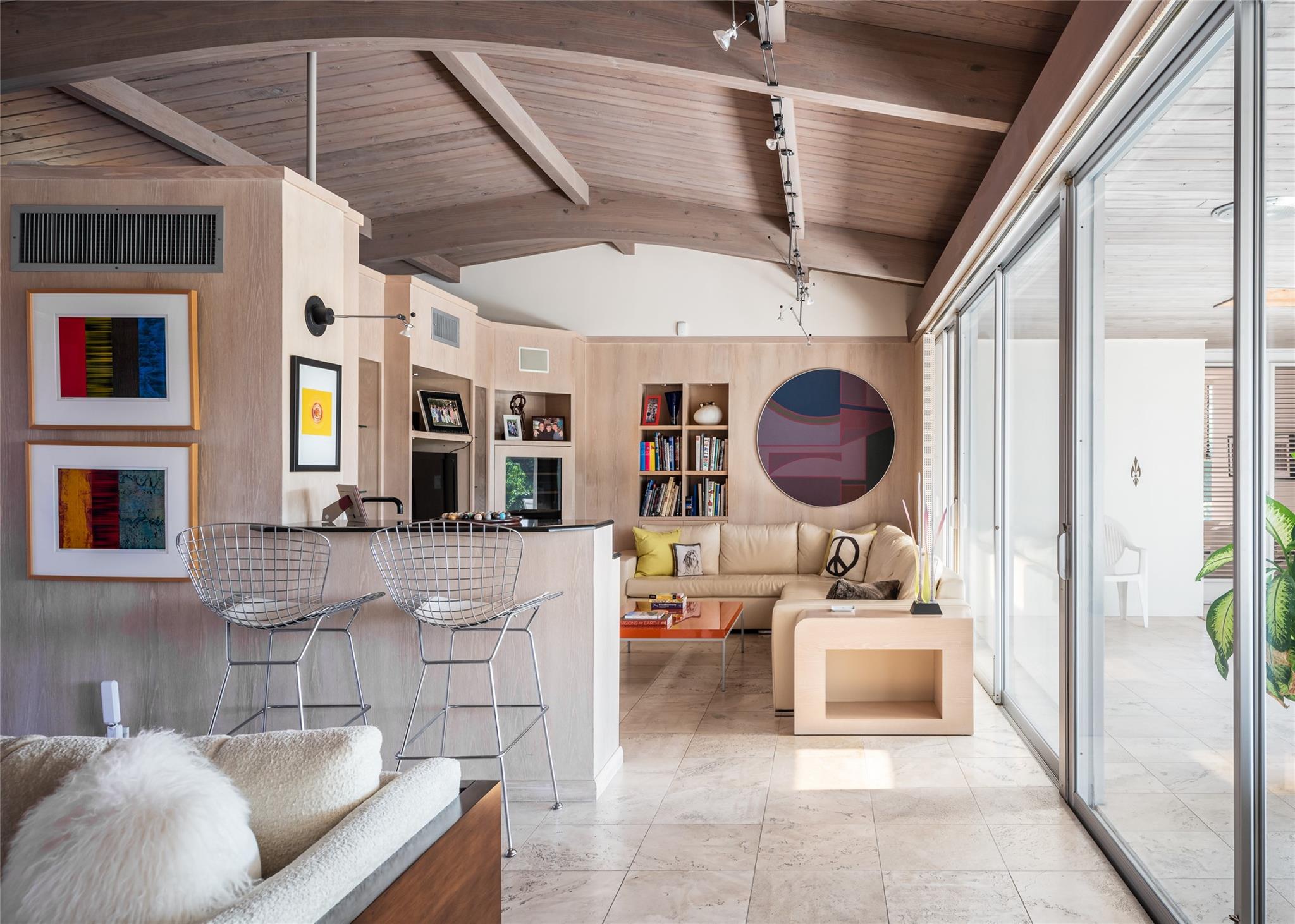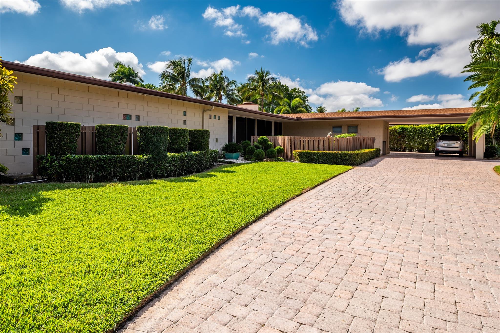 MID-CENTURY MODERN MASTERPIECE! BUILT ON 3 LOTS, APPROXIMATING 12 ACRE. 4 BEDROOMS, 3 FULL BATHS. OPEN FLOOR PLAN WITH LARGE DESIGNER EAT IN KITCHEN, SUB-ZERO AND WOLF APPLIANCES QUARTZ COUNTER TOPS. SATURNIA AND WOOD FLOORS THROUGHOUT. PRIMARY BEDROOM SUITE WITH HUGE WALK IN CLOSET, SEPARATE BATHTUB AND SHOWER. LIVING ROOM WITH FLOOR TO CEILING ONYX COVERED WOOD BURNING FIREPLACE. FAMILY ROOM WITH WET BAR AND REFRIGERATOR. HIGH VAULTED WOODEN CATHEDRAL CEILINGS. LARGE LAUNDRY ROOM WITH PLENTY OF STORAGE. 600 SF SCREENED IN COVERED PORCH WITH MARBLE FLOORS. 2000 SF BRICK PAVED DECK WITH ENTERTAINMENT AREA, WET BAR, T.V. LARGE POOL WITH FORMAL AND TROPICAL LANDSCAPING THROUGHOUT. LARGE 2-CAR CARPORT STORAGE. WALKING DISTANCE TO BEACH SHELL BAY COUNTRY CLUB.