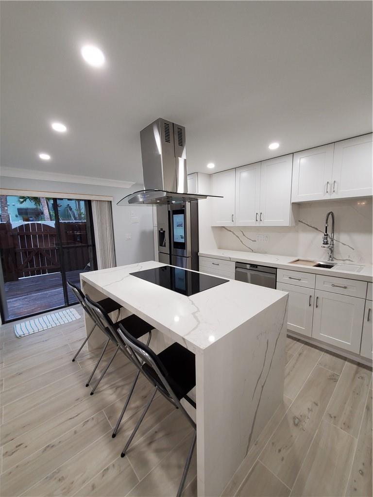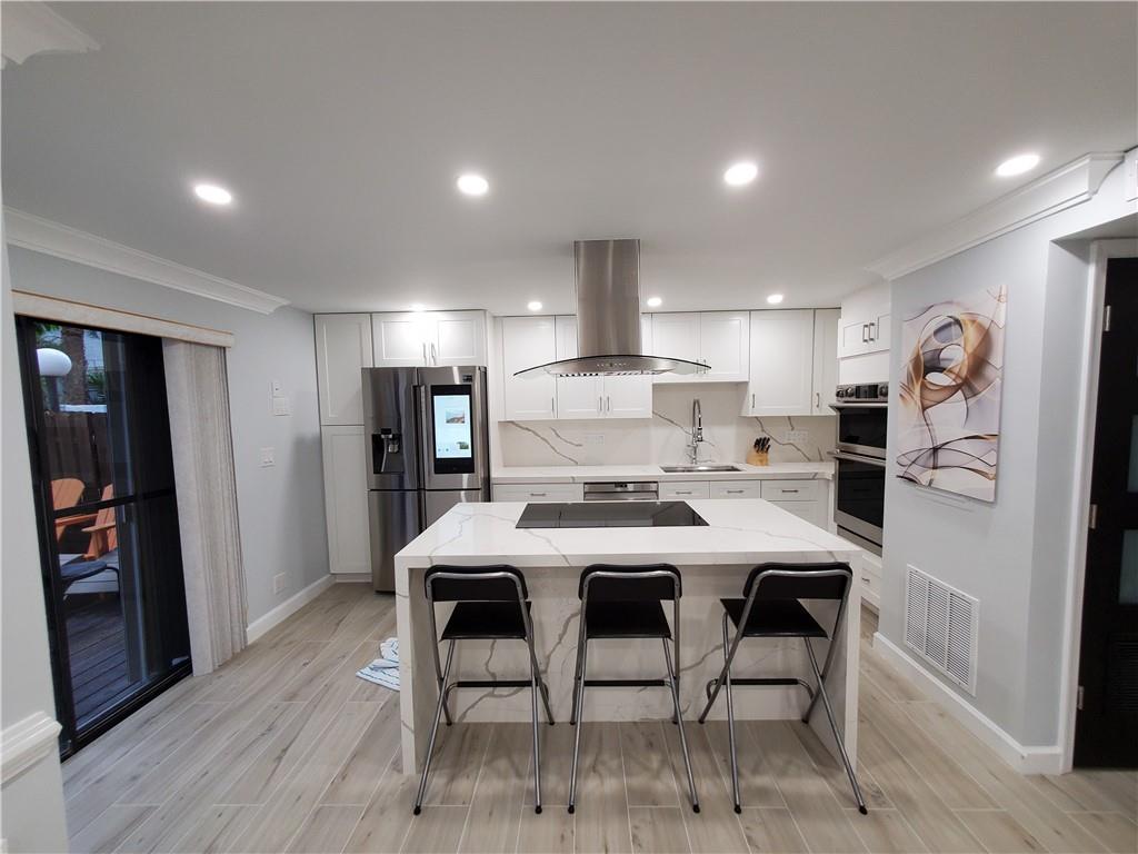 TROPICAL DREAM. RECENTLY TOTALY REMODELED Oasis is just footsteps from The Hollywood Boardwalk and Beach. Oceanside location. Minutes from Jimmy Buffet's Margaritaville. Contemporary and Charming, 4 Bedroom there are 2 large closets in the master bedroom. One of them is a walk-in closet. , 3 Full Bath. It has ocean views from all 3 second floor bedrooms and both the front and back large balconies . Feels and looks like a Brand New Home with all new finishes, cabinetry, floors and fixtures. New Salt Water Pool. Just a hop, skip and a jump to the Beautiful Atlantic Ocean. Unique property and location. Tropical Paradise with this Uniquely Totaly remodeled TownHome NO REQUIREMENT FOR RESERVE STUDY. New sound proof impact windows, new AC + mini system. A complete new roof was installed in 2021