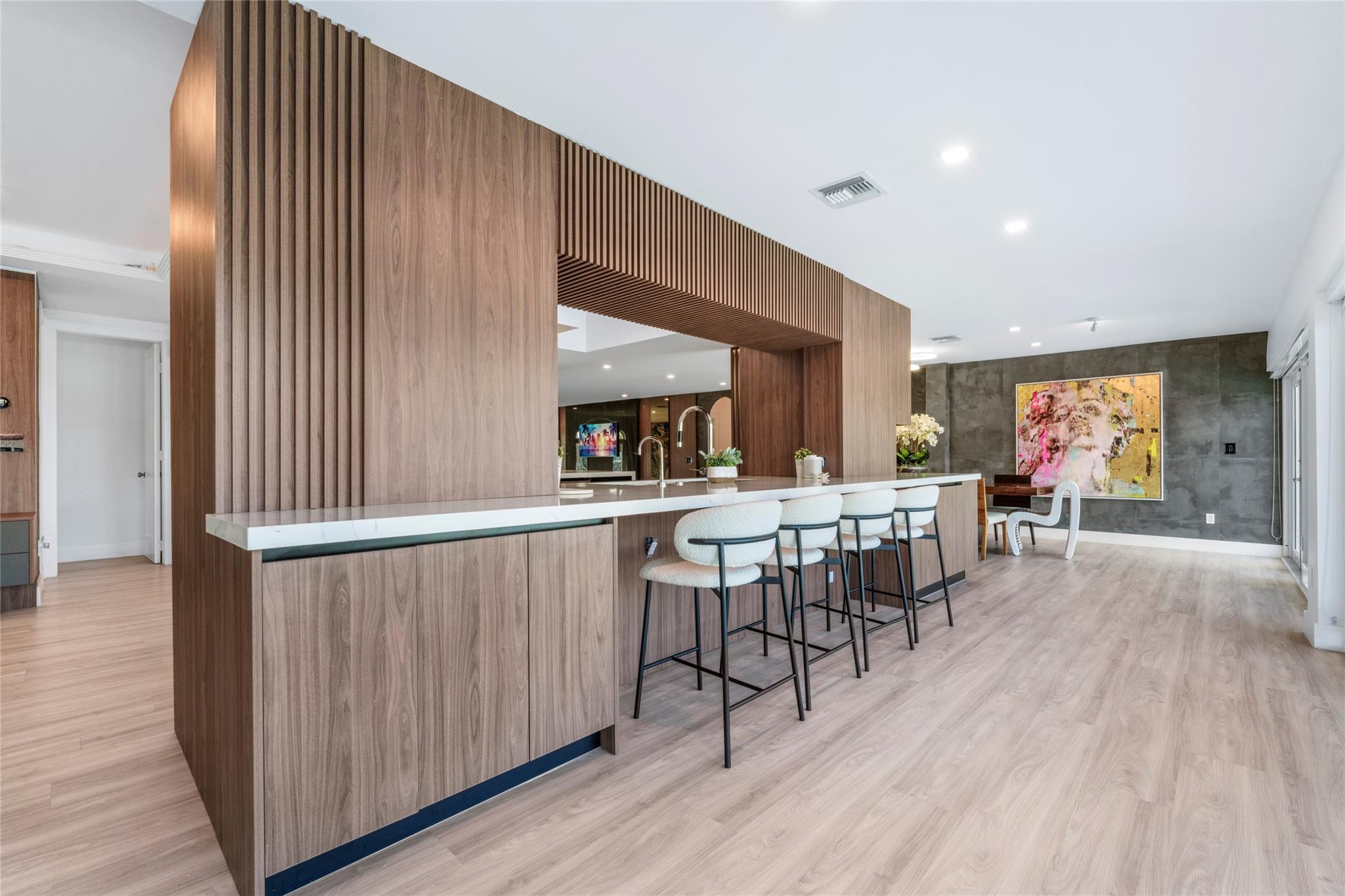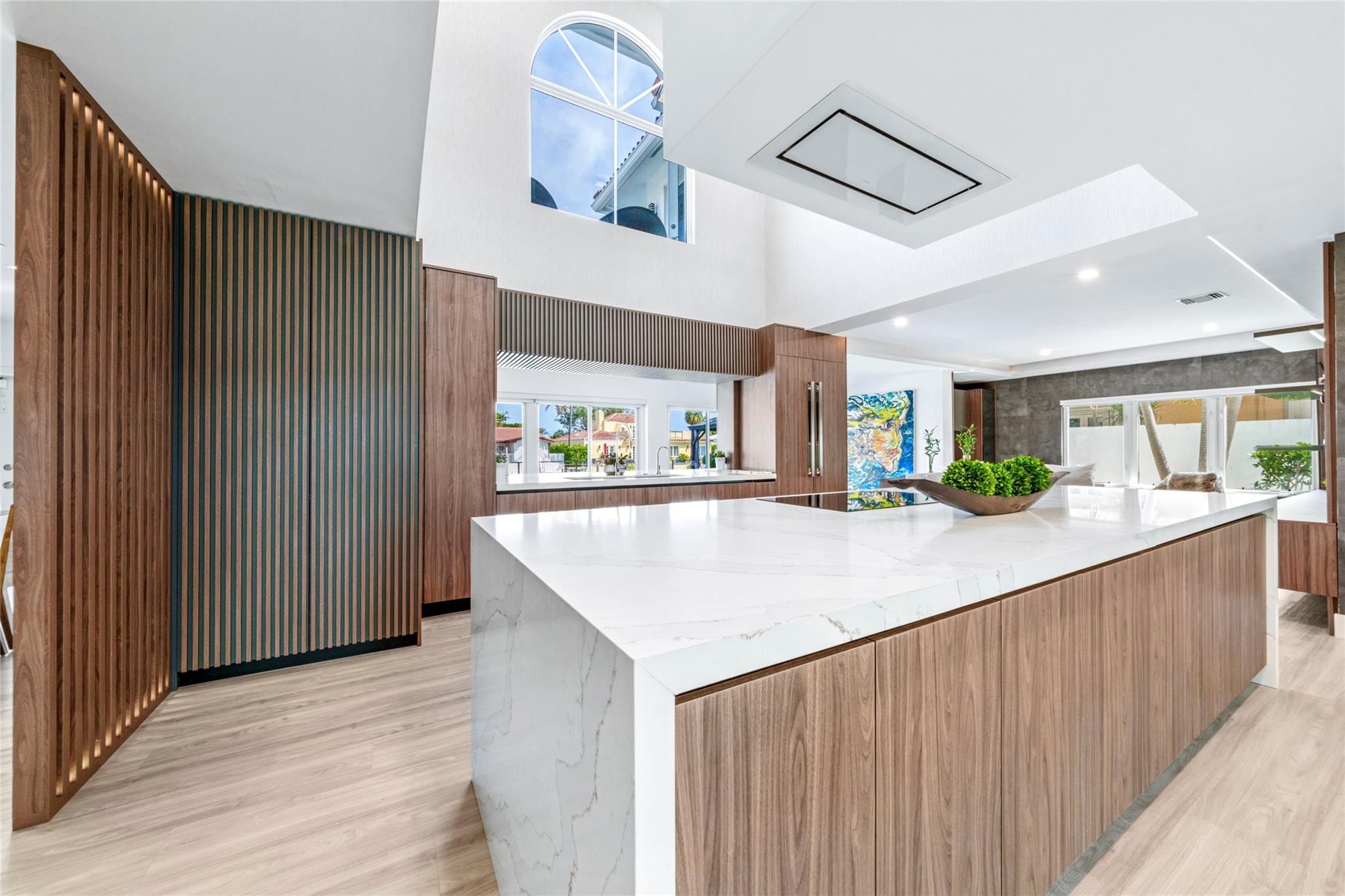 Live your Florida dream in this waterfront home in Ft. Lauderdale’s exclusive Castle Harbor Isle! The 4 bed, 3.5 bath home features a fully interior with over 4,000 sq ft of contemporary living space. Brand new back yard, redesigned with luxury and relaxation in mind includes a newly equipped saltwater pool, a stylish pergola perfect for outdoor lounging, and elegant leather-finished Italian stone. The 80-foot dock, also fully renovated, is reinforced, freshly painted, sealed, and adorned with a charming ivy facade. With ocean access and no fixed bridges, this backyard is a boater’s paradise. Excellent location! Just minutes from Hillsboro Inlet, beaches, dining, shopping, and the airport, making it the perfect blend of luxury and convenience.