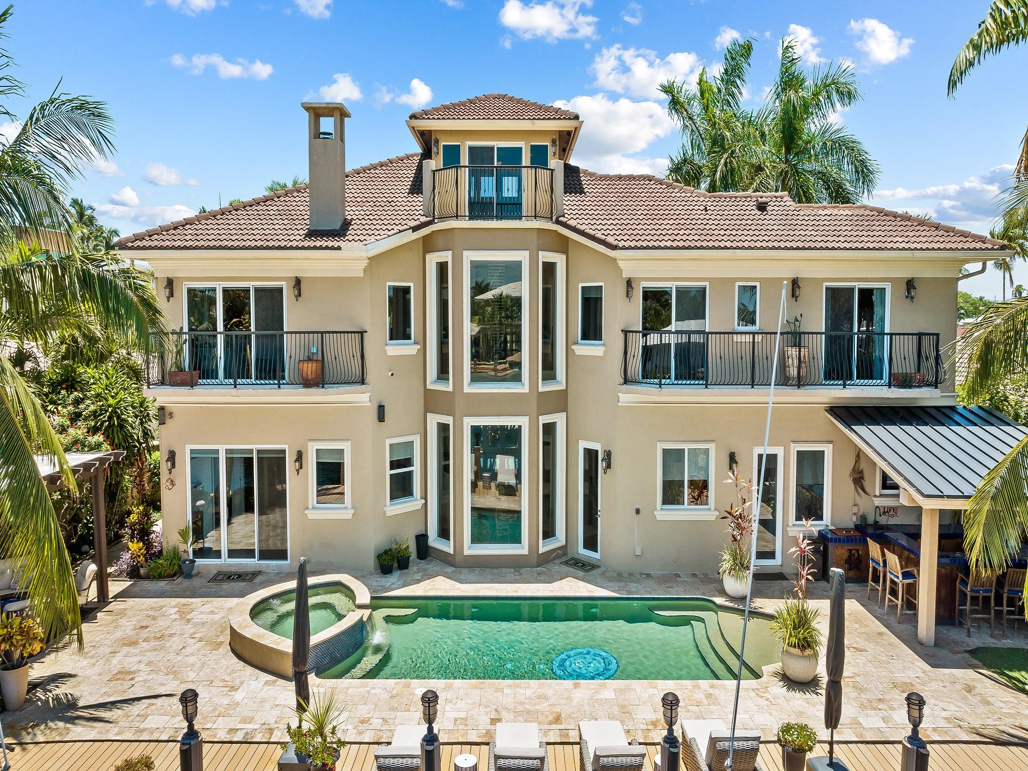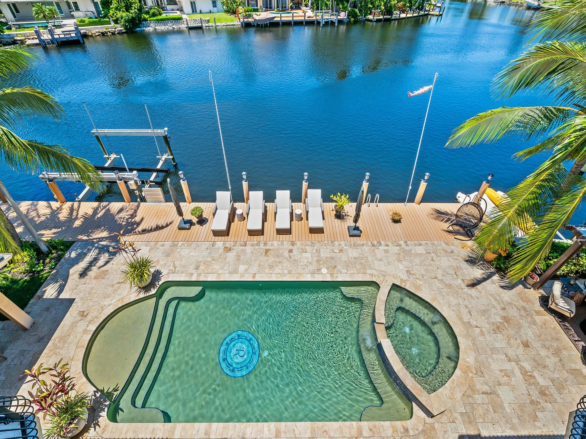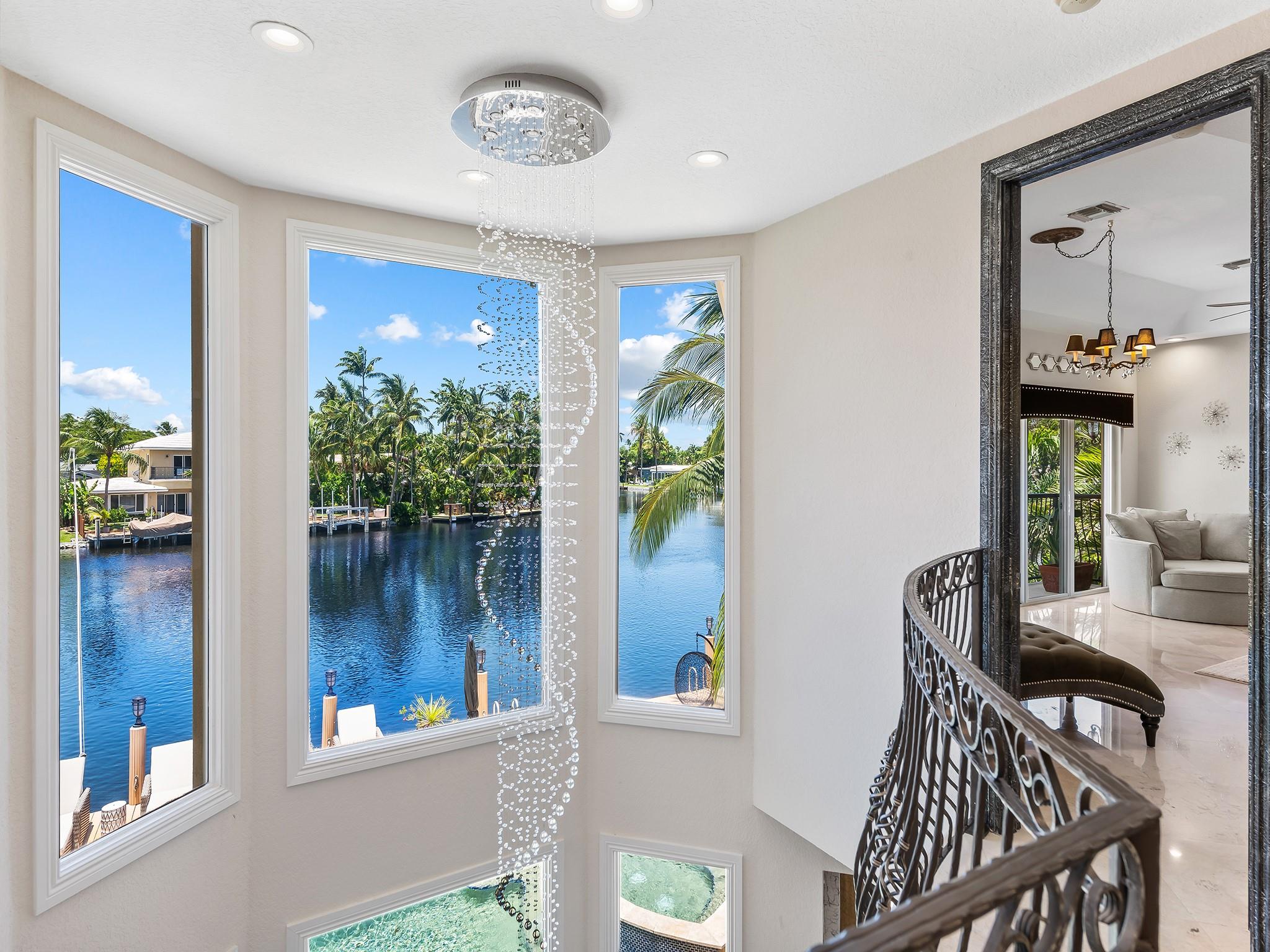 Welcome to your custom built three story home located on a private cul-de-sac in the esteemed Coral Ridge neighborhood. Multidimensional wide water views highlight this exclusive location and lend to true indoor/outdoor South Florida living. The sunset views, the quiet waters, the sun-soaked pool and plenty of shady seating will never disappoint, 112 of waterfront plus a 25K boat lift! 2 bonus rooms were added to this already 4 bedroom house by the current owner. One on the main level, and a unique 3rd level space that can be used for additional bedrooms, office, den or play room.