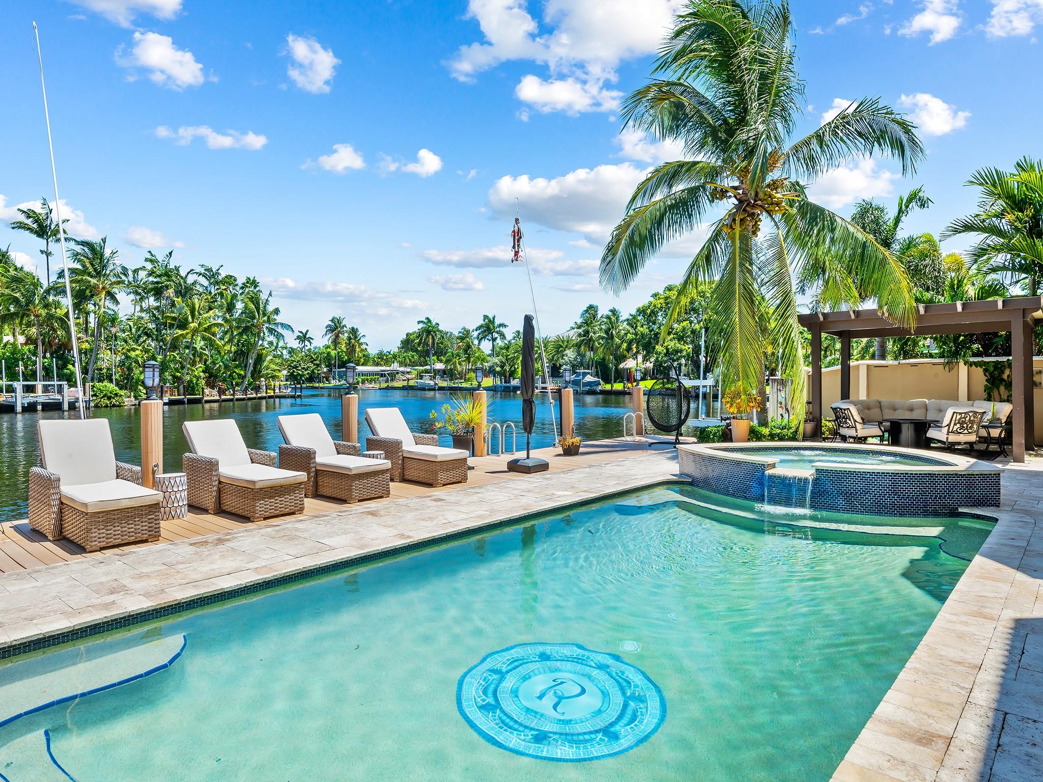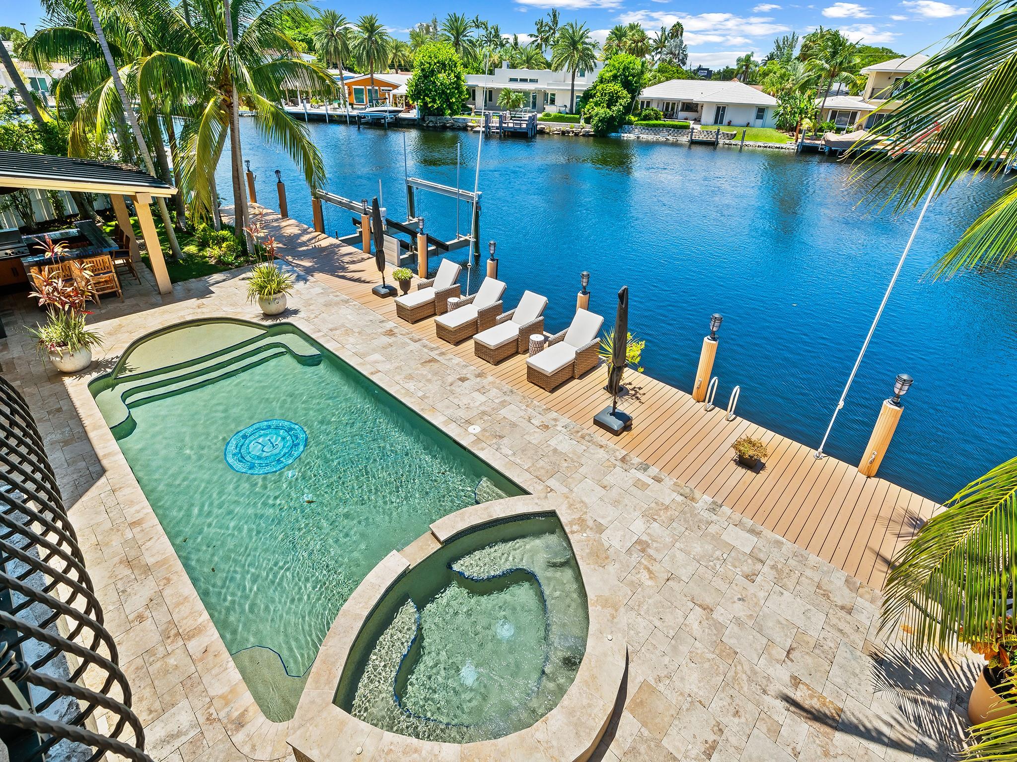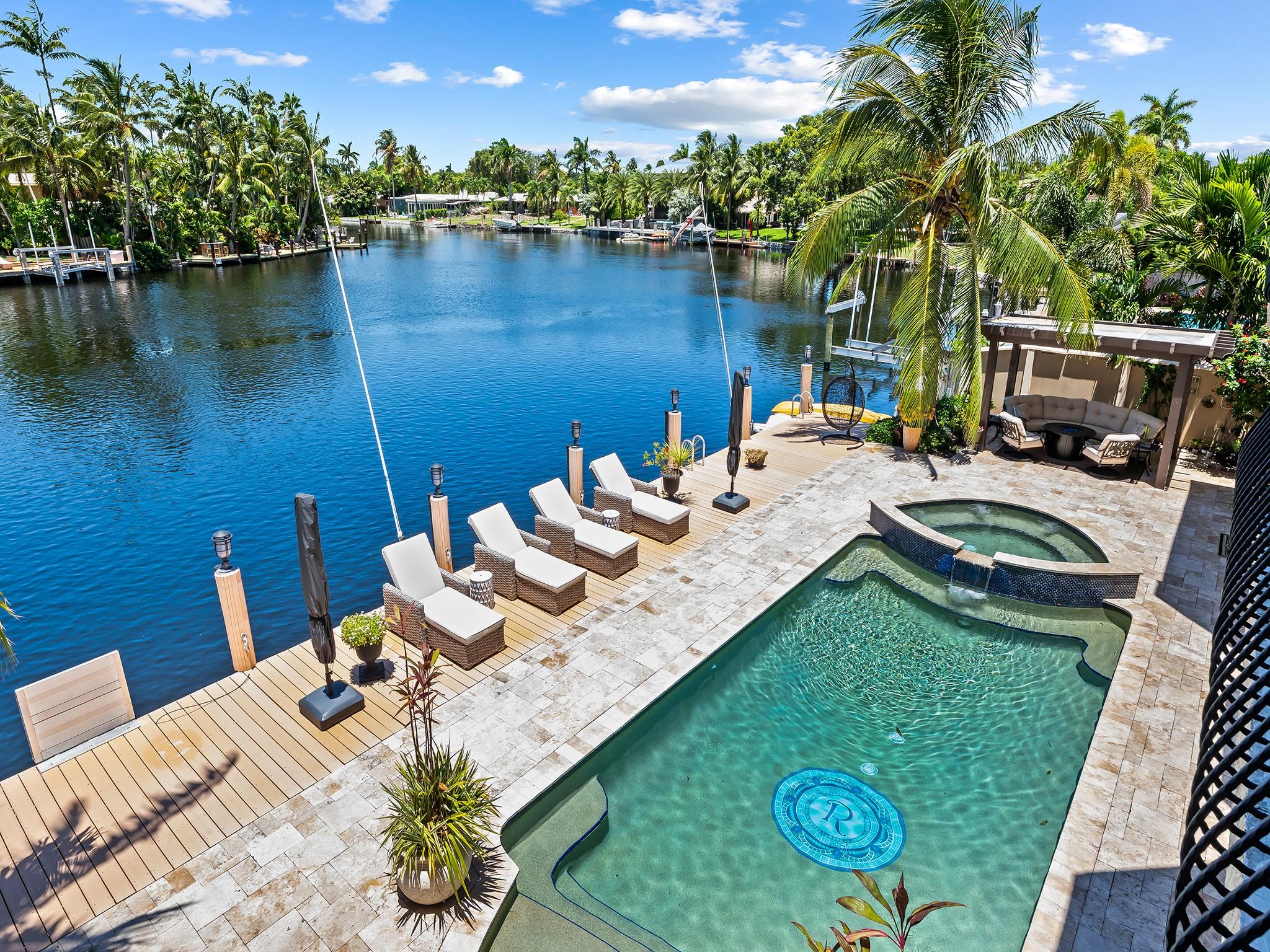 Welcome to your custom built three story home located on a private cul-de-sac in the esteemed Coral Ridge neighborhood. Multidimensional wide water views highlight this exclusive location and lend to true indoor/outdoor South Florida living. The sunset views, the quiet waters, the sun-soaked pool and plenty of shady seating will never disappoint, 112 of waterfront plus a 25K boat lift! 2 bonus rooms were added to this already 4 bedroom house by the current owner. One on the main level, and a unique 3rd level space that can be used for additional bedrooms, office, den or play room.