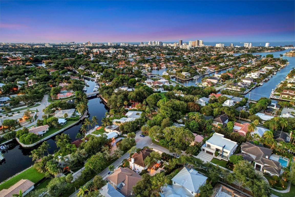 Timeless Modern Mediterranean inspired residence with one of Rio Vista's most prestigious & desirable addresses! Extremely well built on top of an elevated ridge providing a rare 9ft+/- flood elevation allowing insurance savings & less risk of flooding/standing water. Perfectly designed for SoFlo luxury living with impact glass & generator, open concept living & 2 potential home offices, incredible Chef's kitchen, ample storage, large center island & top-quality appliances including wine storage. The flexible floorplan features a superior Primary Suite with spa bath & 2 walk-in closets. Professional & lush landscaping on this large corner lot surrounds the residence creating a sense of privacy Side access garaging permits additional car parking. Minutes from marina & Lauderdale Yacht Club