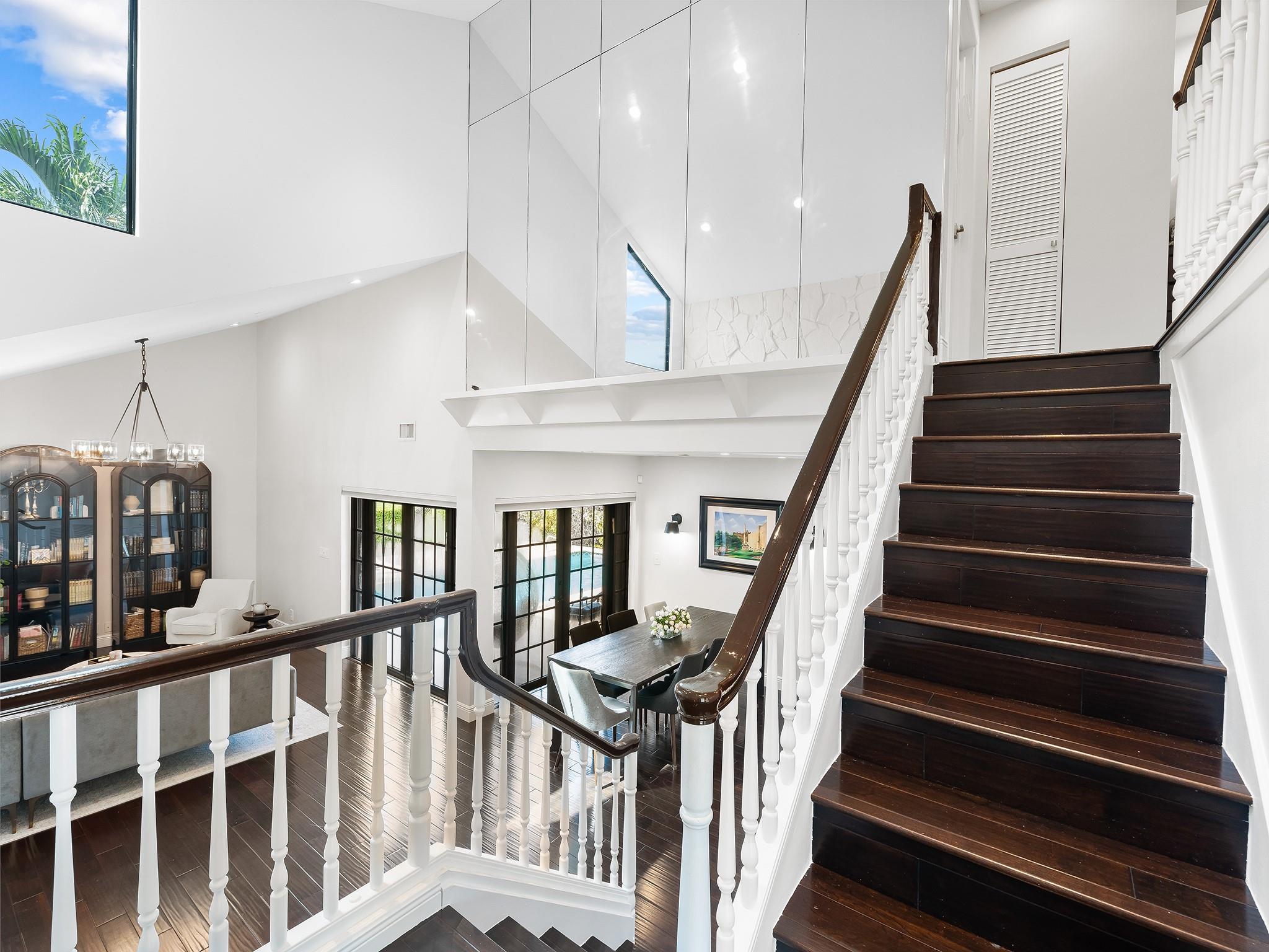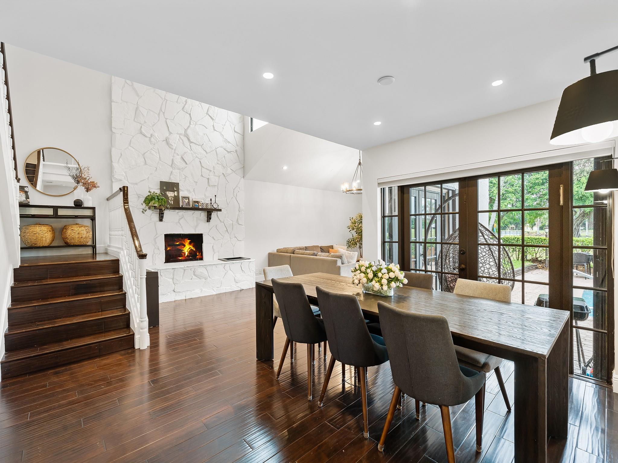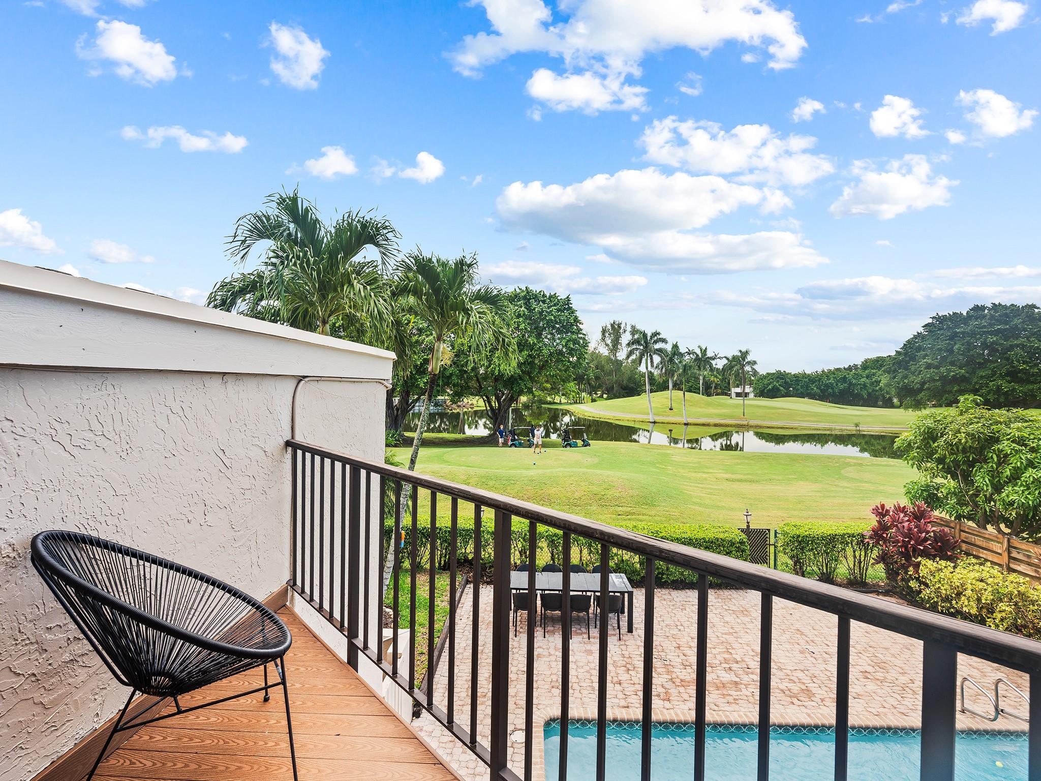 Highly desired modern pool home on the Golf course, 2-story, beautifully renovated & offers indoor-outdoor living. Bright & spacious with Dramatic volume ceilings & flagstone fireplace. The open floor plan allows for the kitchen to extend to the family room that leads to the outdoor area and formal dining room - ideal for entertaining! On the second floor, 3 Beds & 2.5 Baths & oversized loft. Spacious Main Bedroom with an ensuite Bathroom looks at the panoramic golf course and has a private balcony. High-end finishes and appliances, 2 car garage, and dedicated laundry area. Prime Location! Walking distance to Stores, Restaurants, and different Houses of Worship. HOA INCLUDES; EXTERIOR INSURANCE INCLUDING WIND COVERAGE, SECURITY GATES, CABLE/INTERNET, LANDSCAPING & EXTERIOR HOUSE PAINTING.
