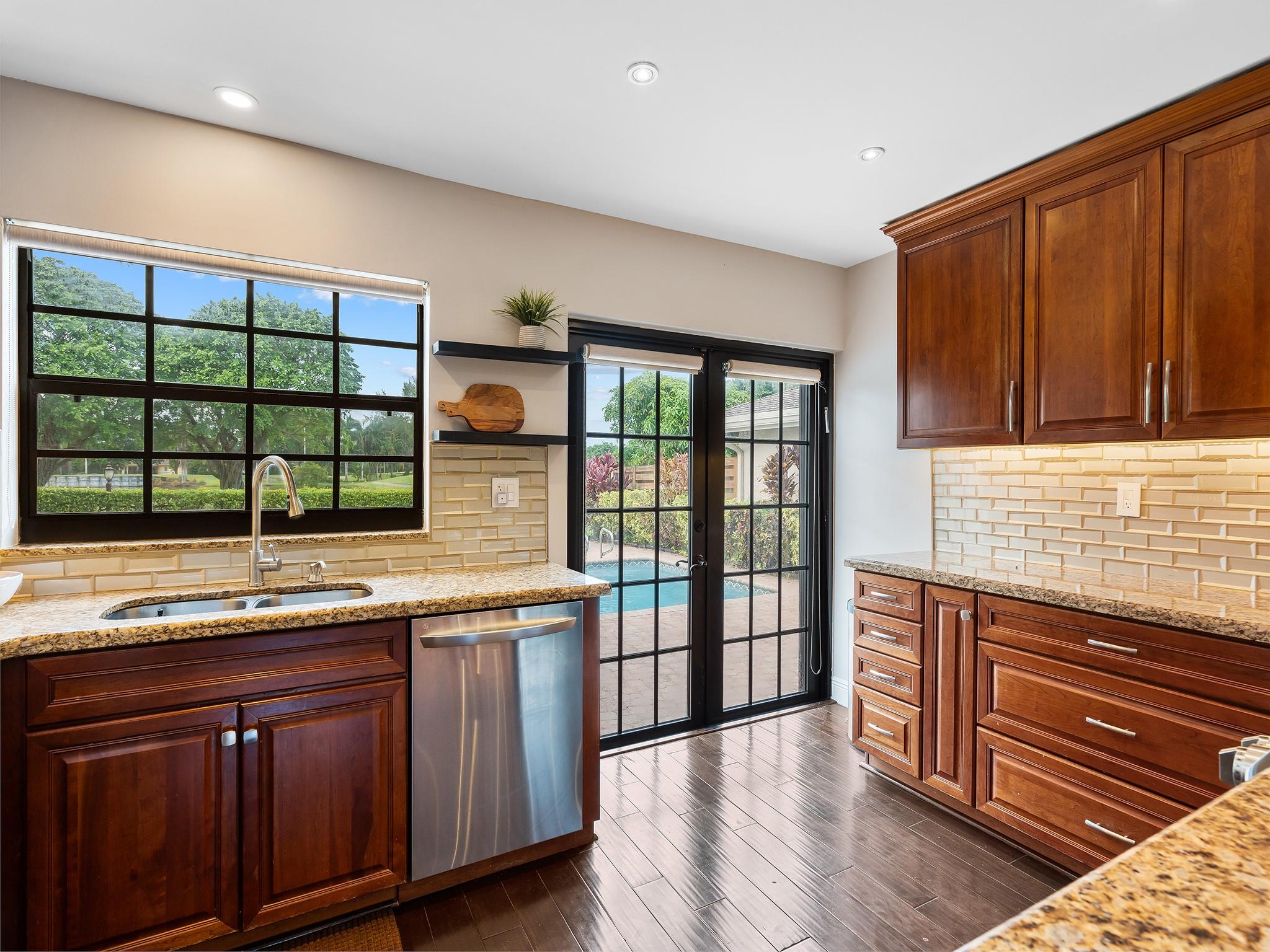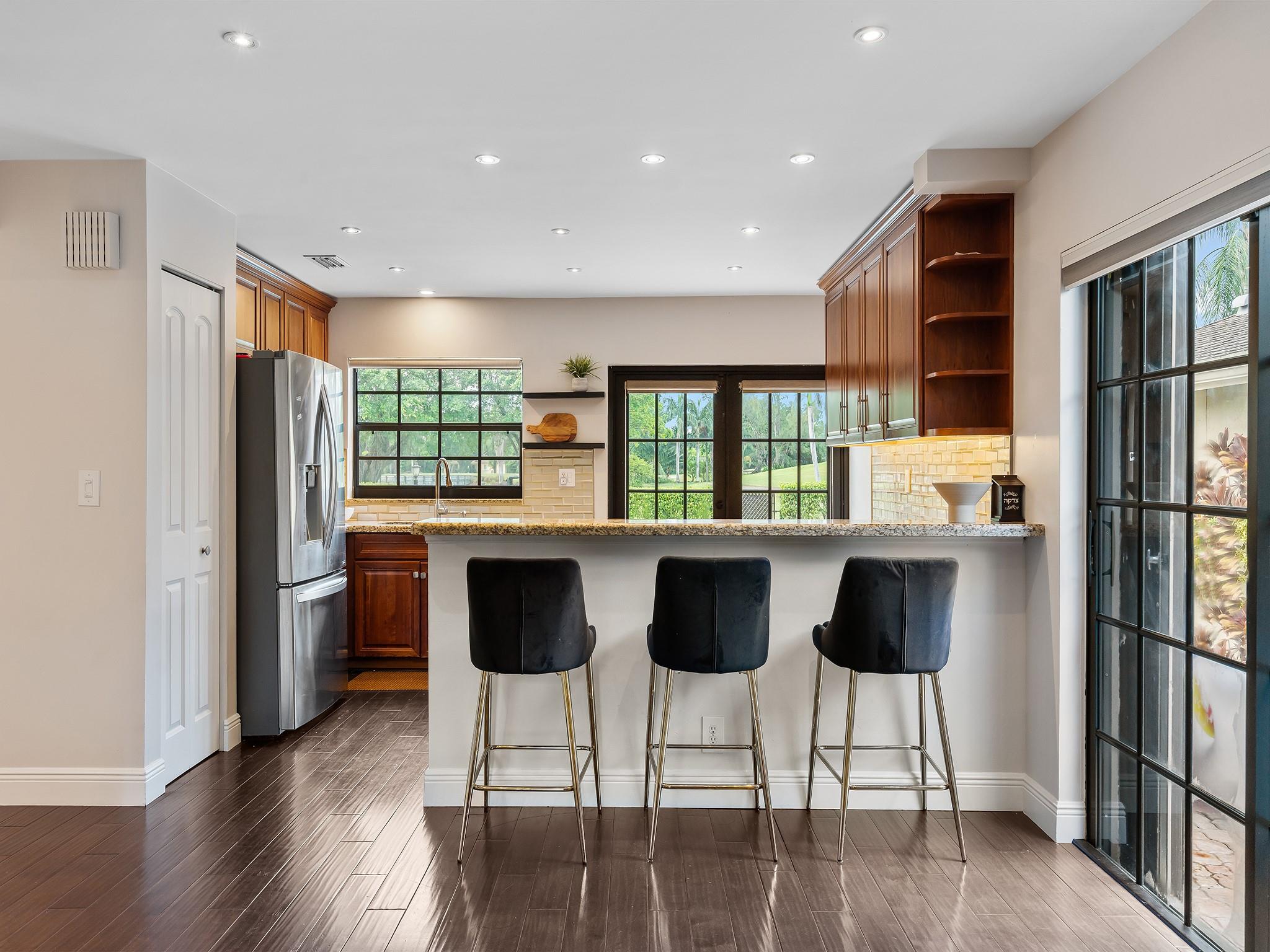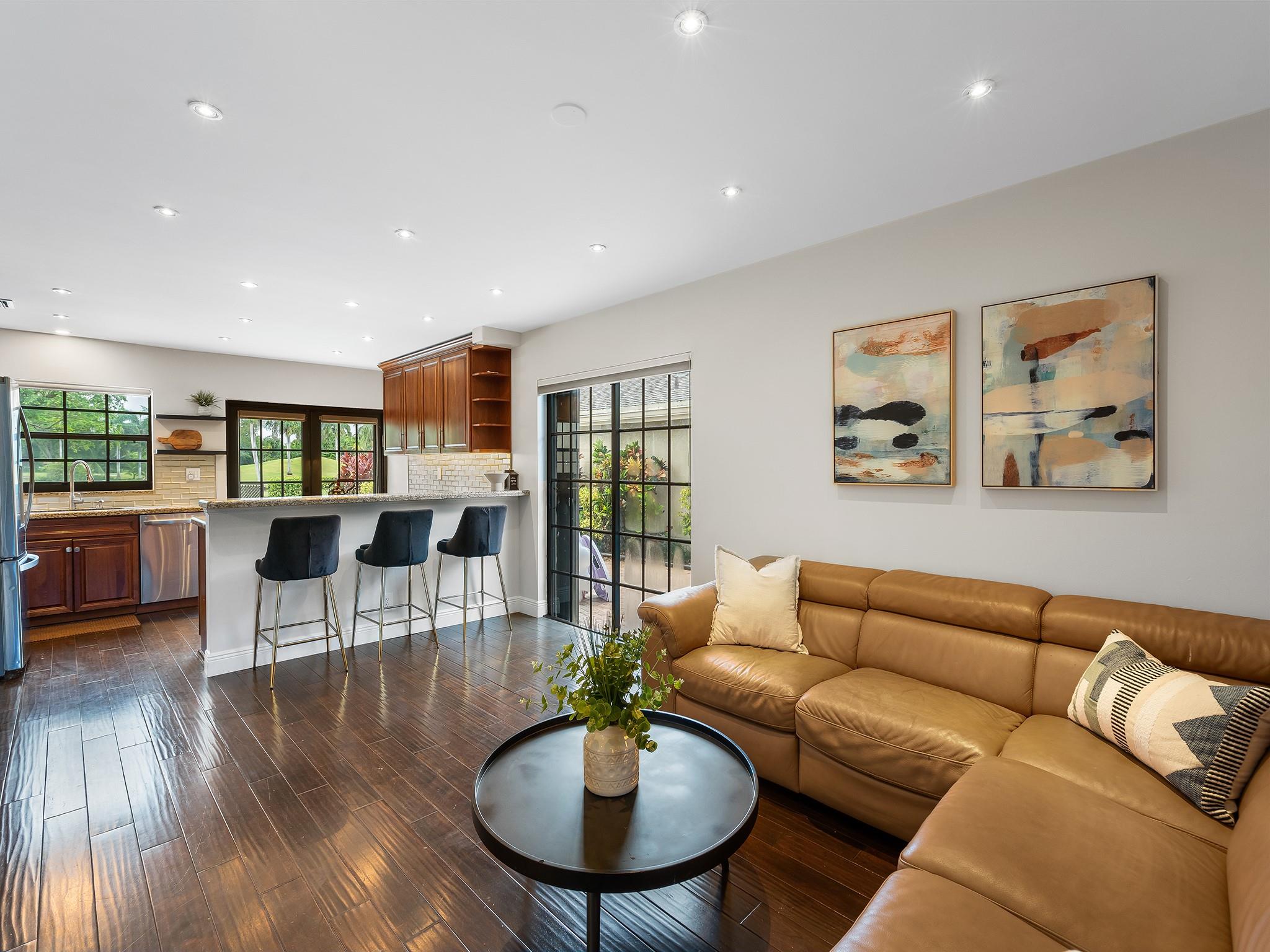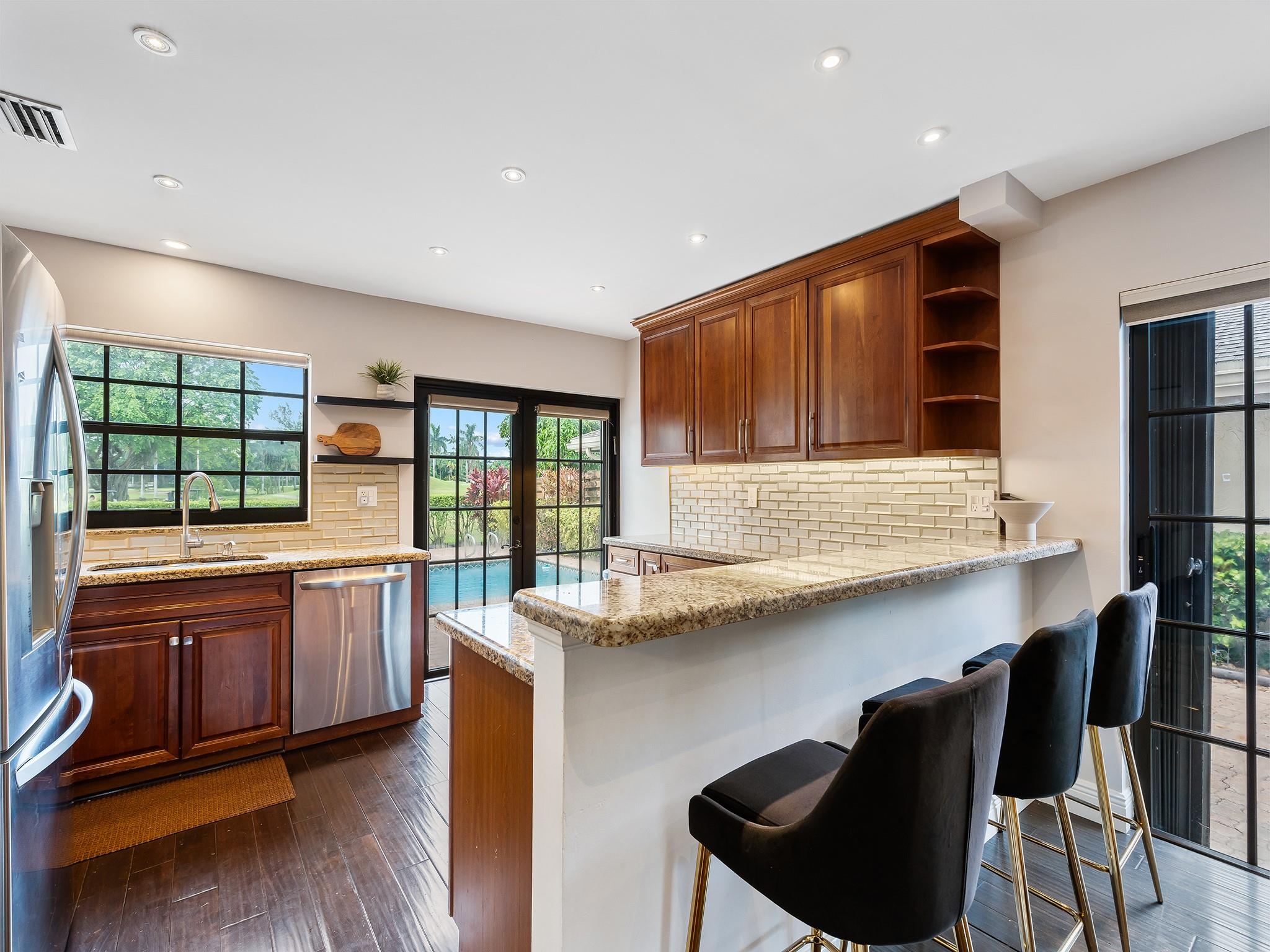 Highly desired modern pool home on the Golf course, 2-story, beautifully renovated & offers indoor-outdoor living. Bright & spacious with Dramatic volume ceilings & flagstone fireplace. The open floor plan allows for the kitchen to extend to the family room that leads to the outdoor area and formal dining room - ideal for entertaining! On the second floor, 3 Beds & 2.5 Baths & oversized loft. Spacious Main Bedroom with an ensuite Bathroom looks at the panoramic golf course and has a private balcony. High-end finishes and appliances, 2 car garage, and dedicated laundry area. Prime Location! Walking distance to Stores, Restaurants, and different Houses of Worship. HOA INCLUDES; EXTERIOR INSURANCE INCLUDING WIND COVERAGE, SECURITY GATES, CABLE/INTERNET, LANDSCAPING & EXTERIOR HOUSE PAINTING.