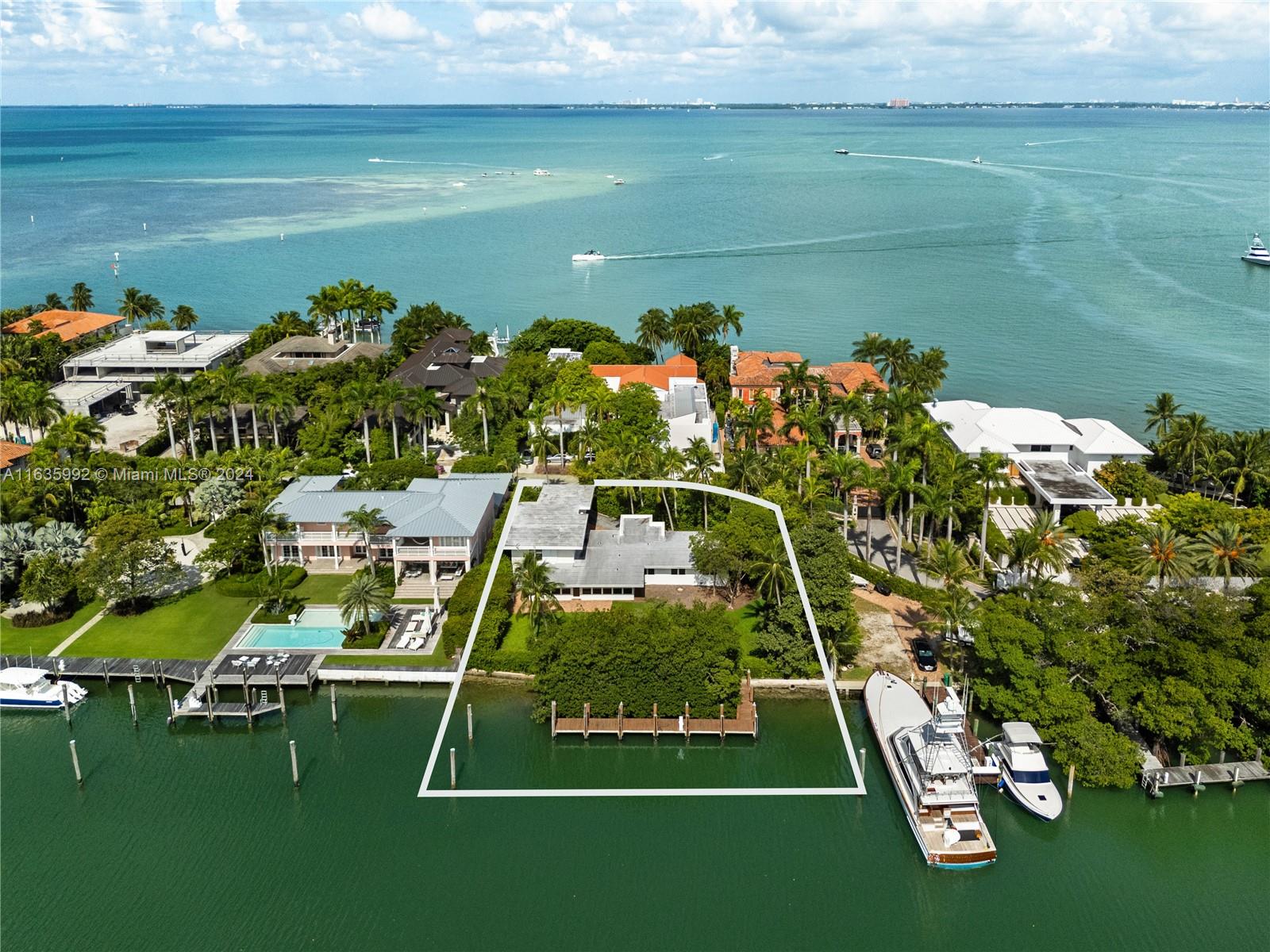 Discover the prestige of Harbor Point, the most coveted address on Key Biscayne. Lined with stunning bayfront estates, Harbor Point is the only private road on the island. Not only is it exclusive, 4 Harbor Point is a Boater's Dream with 125 FT of water frontage, a safe harbor and deep-water access to accommodate a large yacht. The property boasts views of a private alcove in Hurricane Harbor, a serene refuge for manatees and dolphins. Situated on an expansive 21,250 SF lot, you can build your dream home or remodel the existing spacious home, featuring seven bedrooms and endless potential!