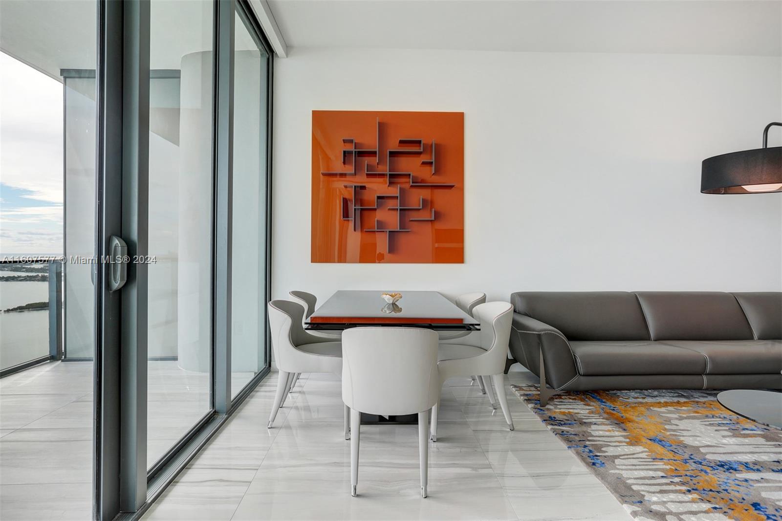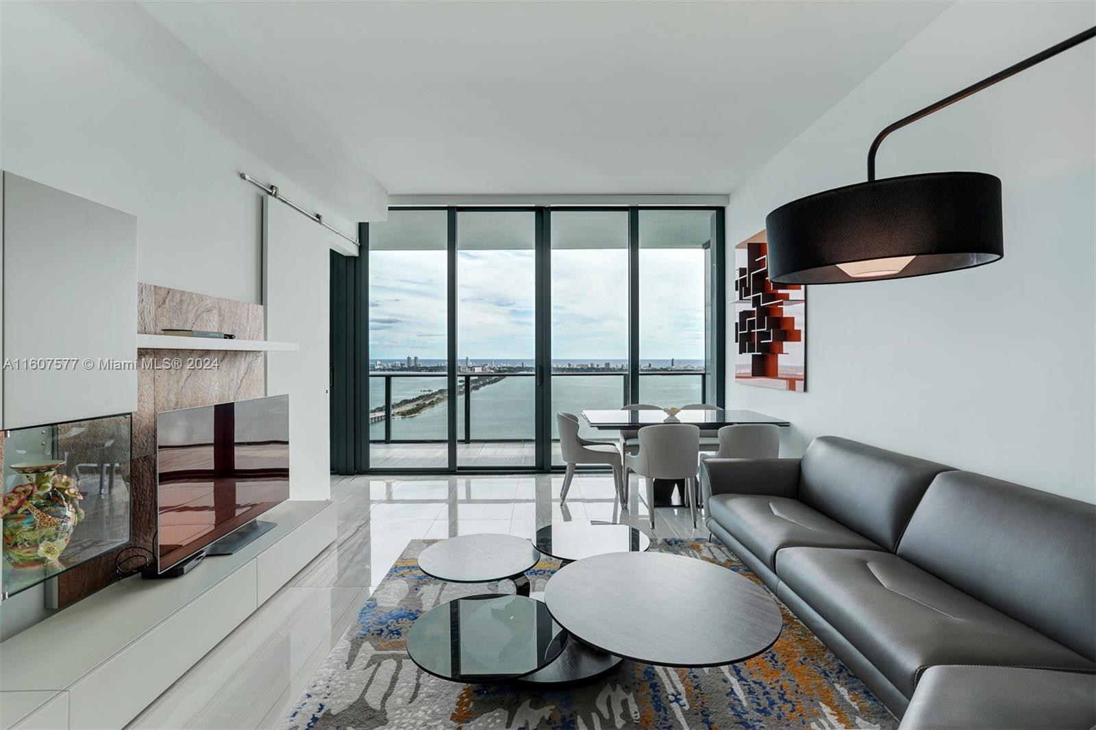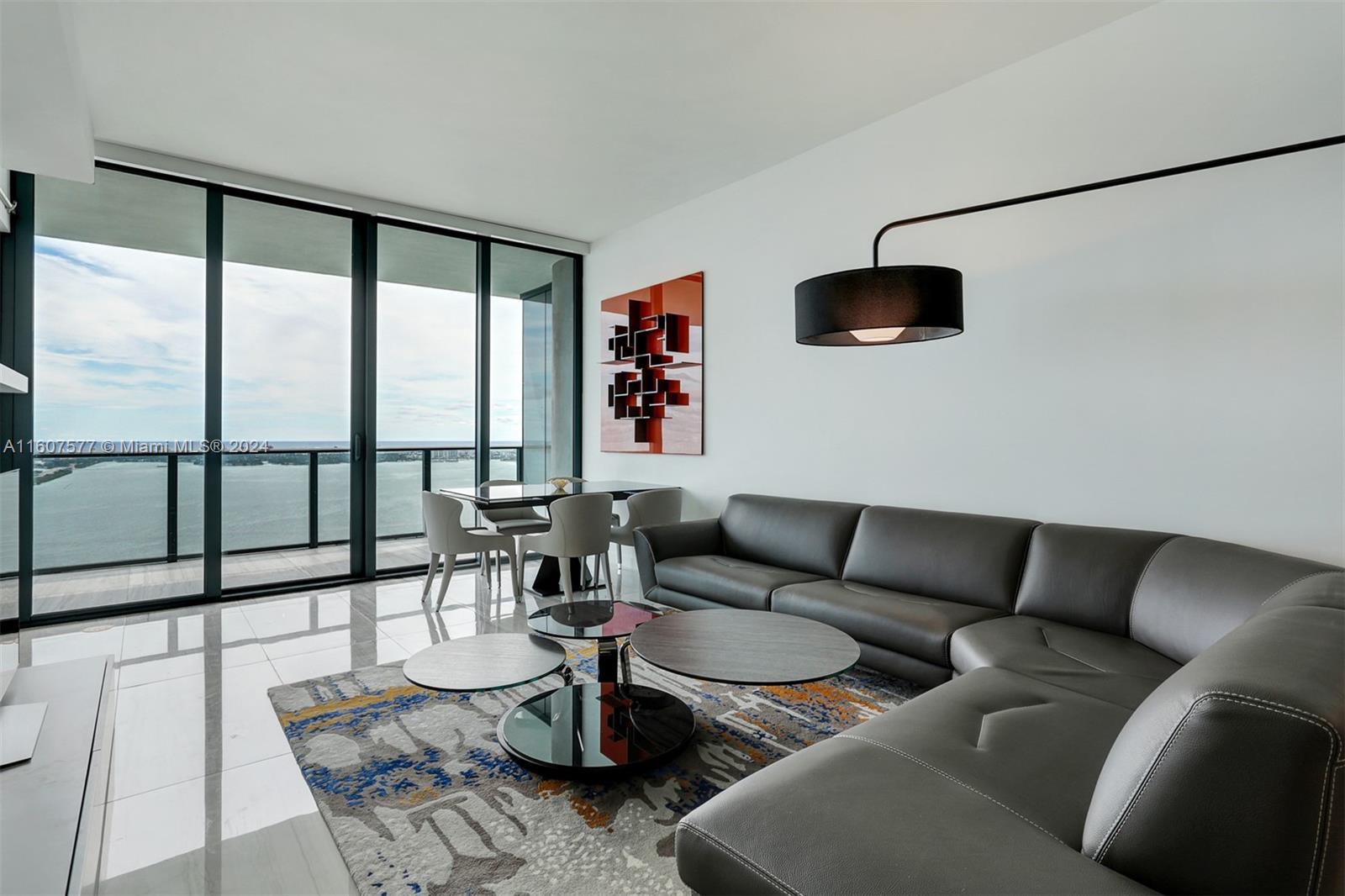 Custom finished and furnished residence with porcelain flooring, custom closets, window treatments. Sophisticated 1 Bedroom 1.5 bath + Office-Den unit in ONE Paraiso by Piero Lissoni. Luxurious finishes in kitchen and bathrooms, floor to ceiling glass panels to enjoy endless views to the Bay and the Ocean. Centrally located within Paraiso District in Edgewater. Extensive list of amenities: ground level pool, 2 pools on the 9th floor, 2 tennis courts, Bayview spa, Sauna, Steam room, spinning room, fitness center, massage rooms, screening room, party room, billiard room, wine room and more. One Paraiso offers a private enclave of luxury contemporary residences where breathtaking views over Biscayne Bay define a style of living that embraces both elegance and natural beauty. Easy to show.