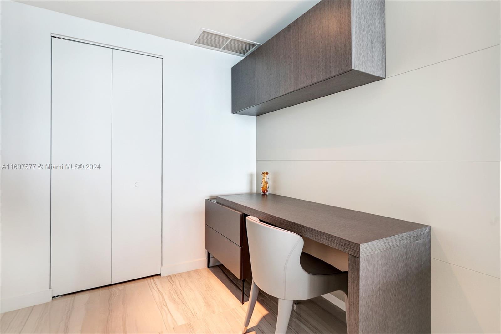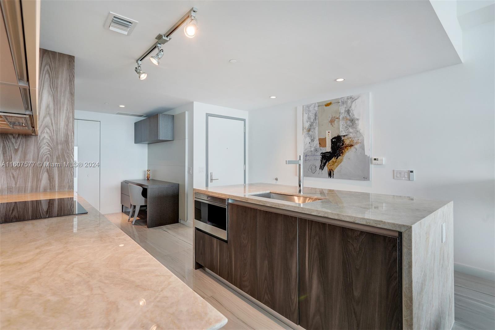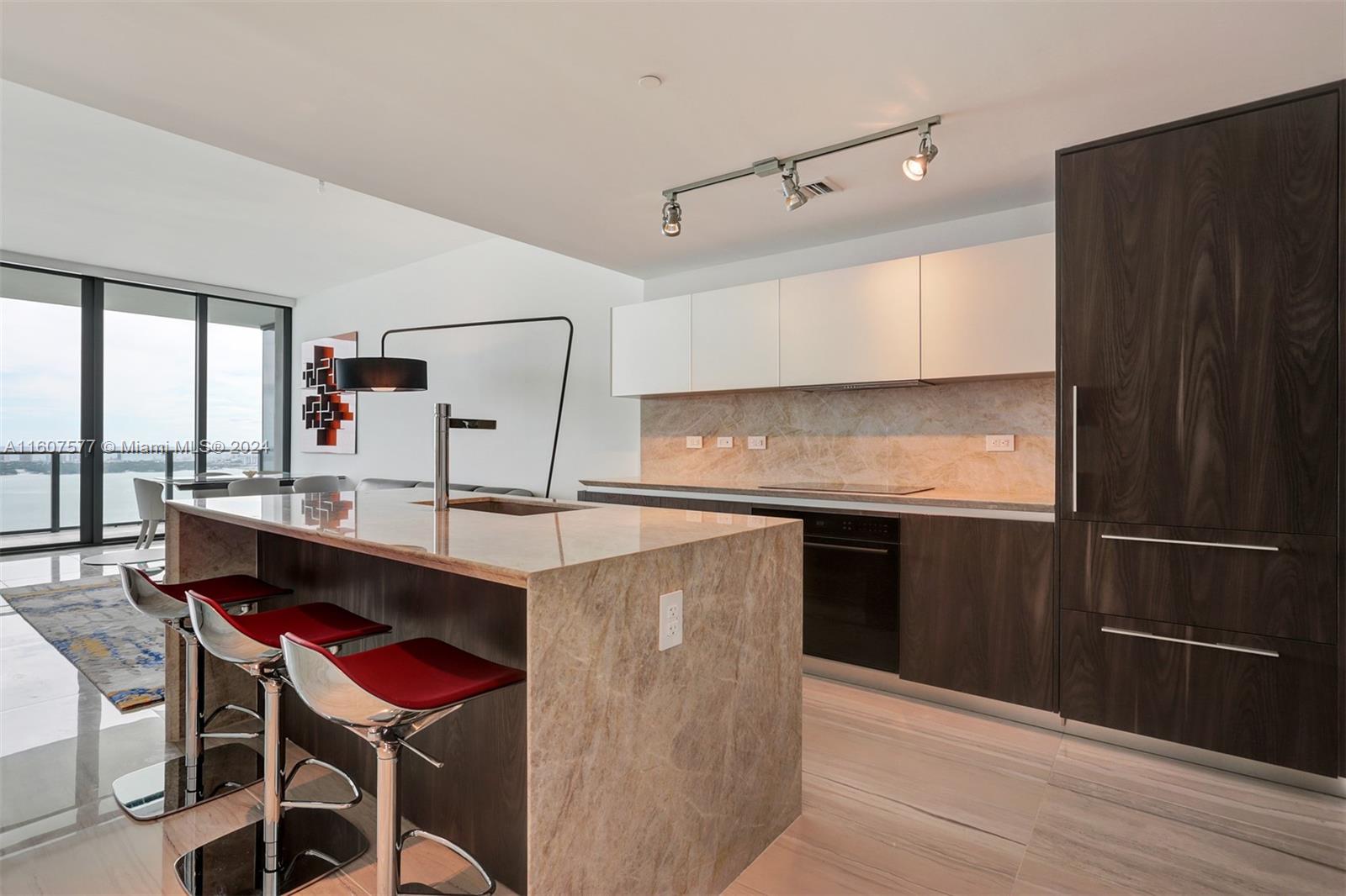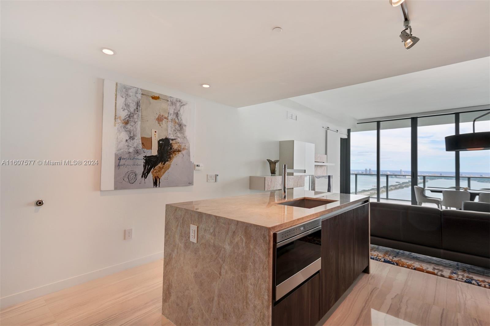 Custom finished and furnished residence with porcelain flooring, custom closets, window treatments. Sophisticated 1 Bedroom 1.5 bath + Office-Den unit in ONE Paraiso by Piero Lissoni. Luxurious finishes in kitchen and bathrooms, floor to ceiling glass panels to enjoy endless views to the Bay and the Ocean. Centrally located within Paraiso District in Edgewater. Extensive list of amenities: ground level pool, 2 pools on the 9th floor, 2 tennis courts, Bayview spa, Sauna, Steam room, spinning room, fitness center, massage rooms, screening room, party room, billiard room, wine room and more. One Paraiso offers a private enclave of luxury contemporary residences where breathtaking views over Biscayne Bay define a style of living that embraces both elegance and natural beauty. Easy to show.