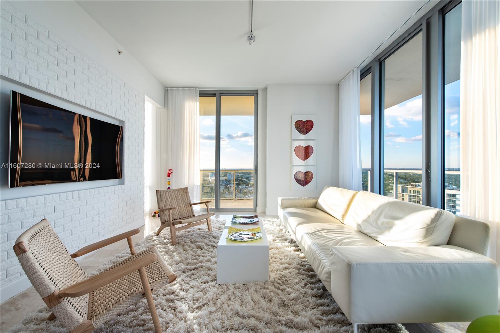 Experience breathtaking sunsets & bay views from this fully renovated 2 Bed + Den residence at 2Midtown. This stunning home features marble flooring throughout, a custom kitchen w/ island, Miele appliances & quartz countertops, & elegant brick accent walls. With 10-foot ceilings & an oversized terrace w/ glass railings, this residence epitomizes luxury living. The primary suite is designed for comfort, offering built-in storage, a walk-in closet, & an en-suite bath. 2Midtown provides a full suite of amenities & services, including a fitness center, pool, steam room, sauna, doorman, & concierge. Step downstairs to experience Miami's most complete city lifestyle, w/ the walkable & connected trifecta of neighborhoods from Wynwood to the Design District.