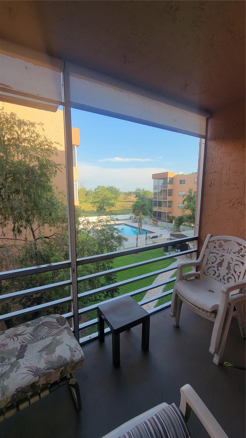 Spacious Charming 1 bedroom 1 bath 725 ft Condo with Updated Kitchen and Bath large bedroom wth walk in closet. The Screened patio balcony has scenic views of the community pool and garden. New Bathroom has well appointed tiles grab bars into Shower and ADA compliant toilet . Very close to all shopping malls, University Dr and is located a just few miles from beach. . Low HOA . Able to lease after 24 months. Water and common areamaintenance paid for by association dues. One Parking Space Included , plenty of guest space available for visitors.This Gem wont last See Showing Time for showing instructions.
