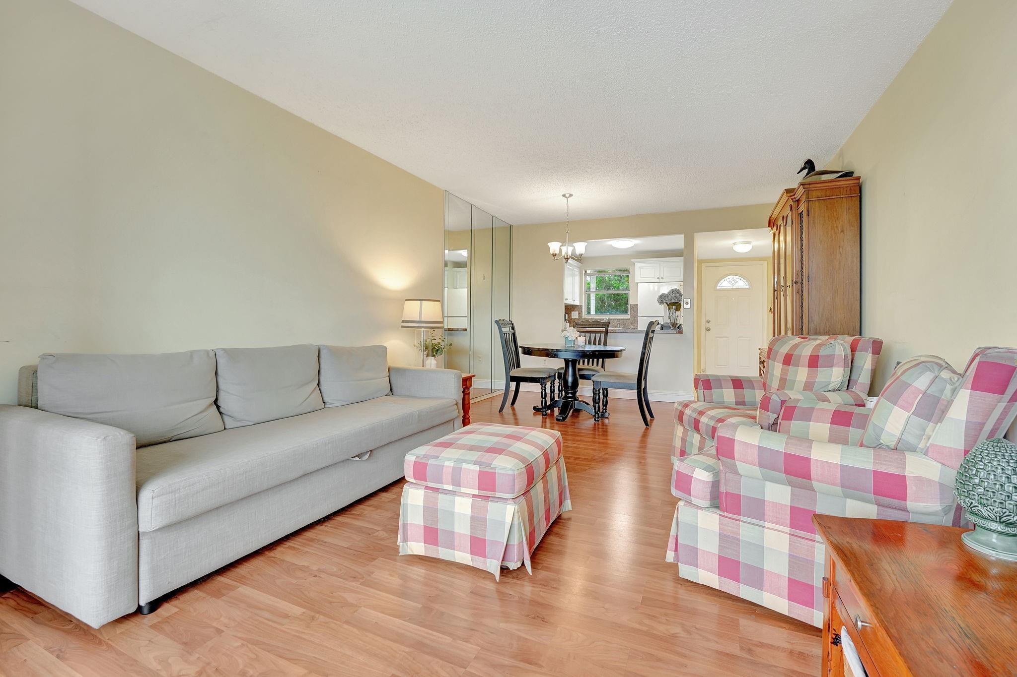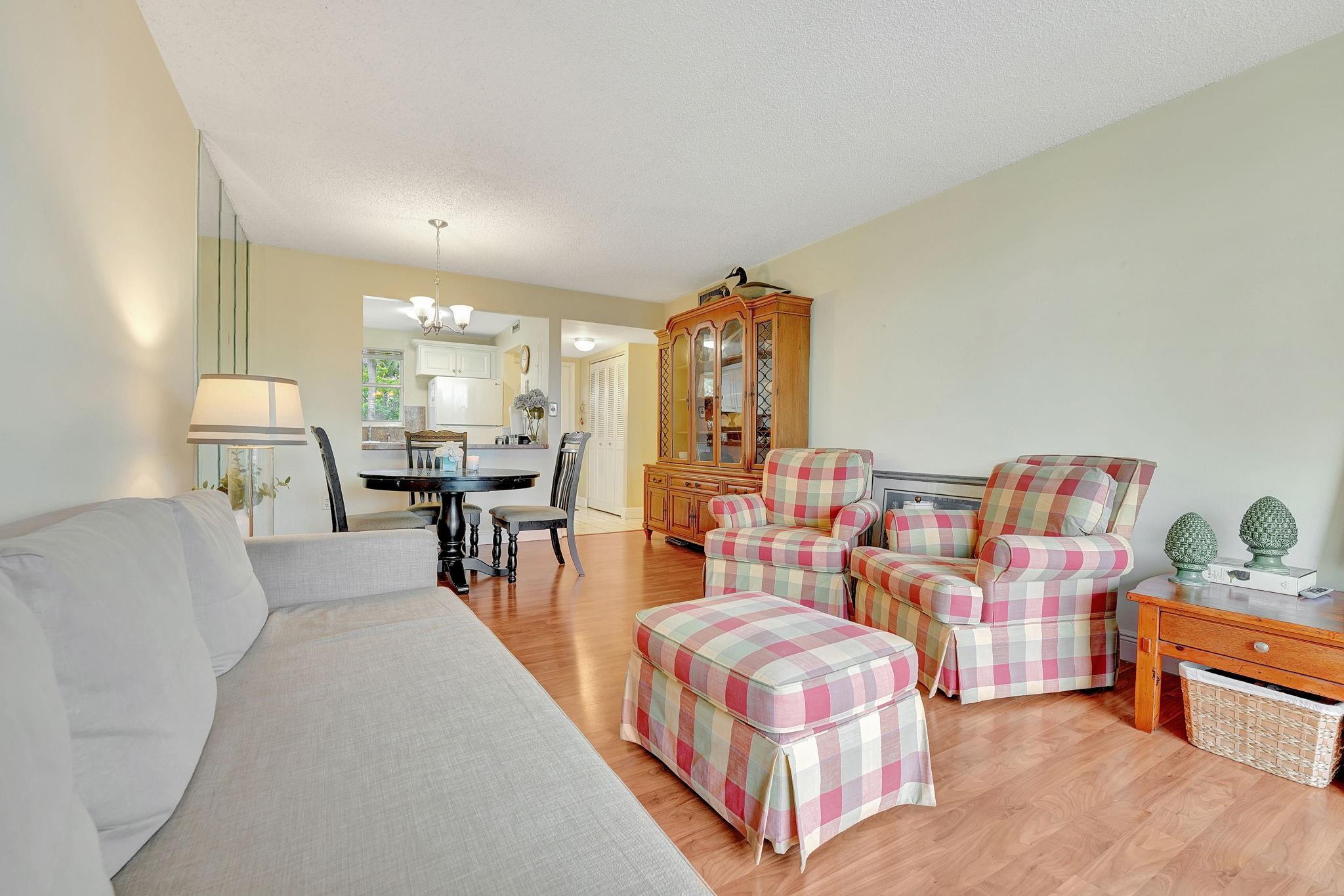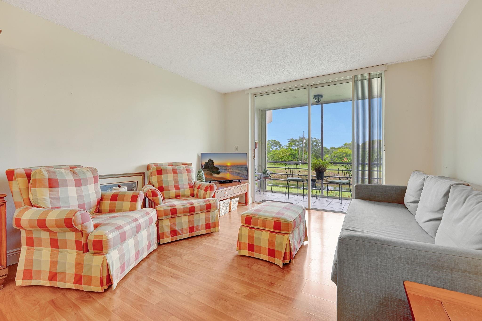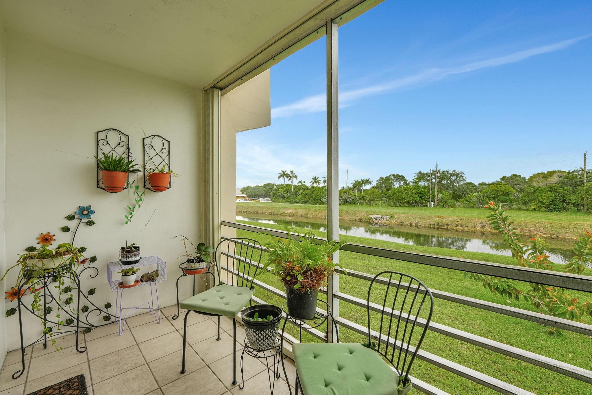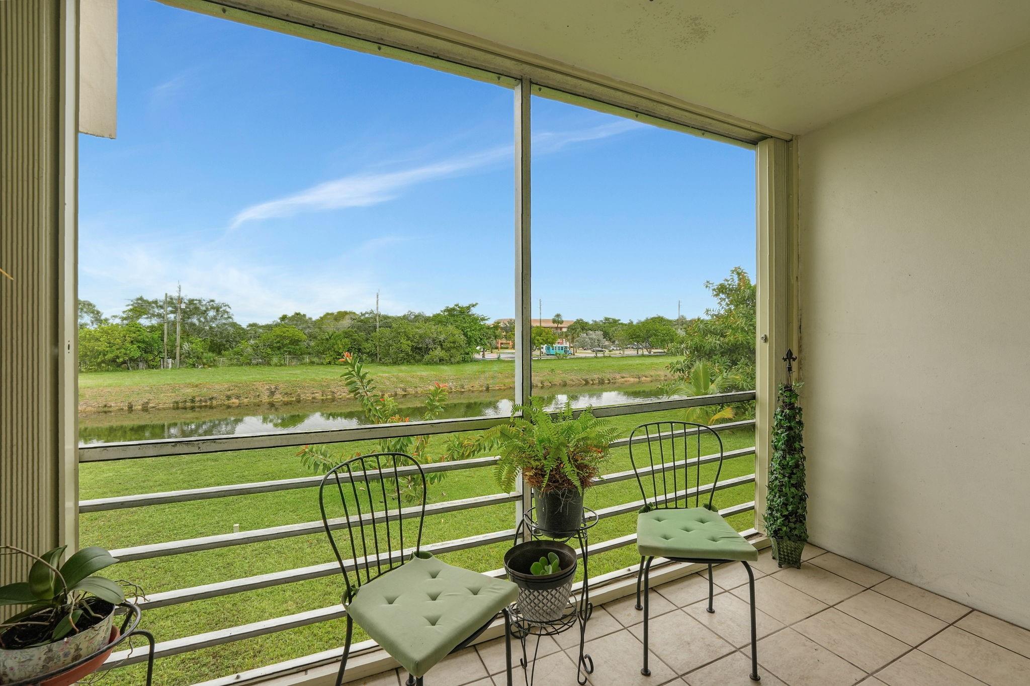 Welcome to this charming 1 bedroom, 1 bath condo, situated in the highly sought-after 55+ community of Sunrise Lakes. This inviting home features open-concept living and dining areas extending to a screened balcony with serene water views, offering a tranquil retreat. The spacious bedroom boasts calming water views and a walk-in closet. Easy stroll to the resort-style amenities that include multiple pools, clubhouse, fitness center, tennis and pickleball courts. Conveniently located near shopping, restaurants, beaches, parks, and major highways, this vibrant community provides everything you need. With a reserved parking space, a private storage unit and healthy HOA management, this is truly a place to call home. Dont miss your chance to own this lovely condo in an exceptional location!