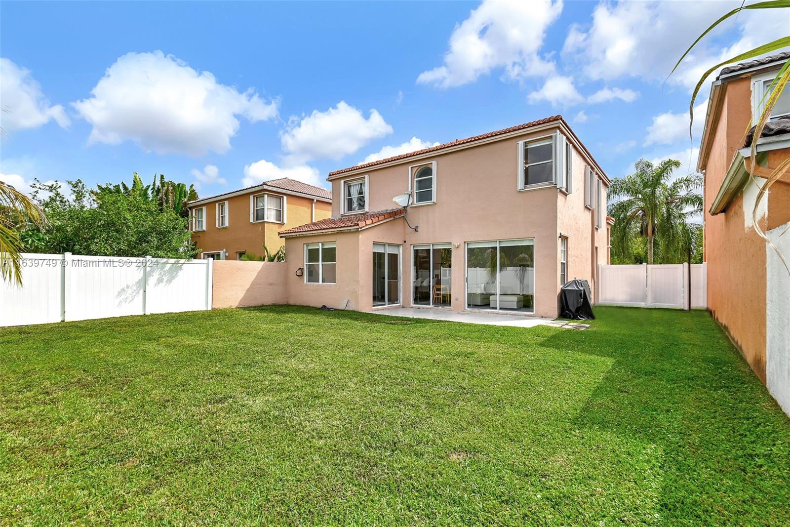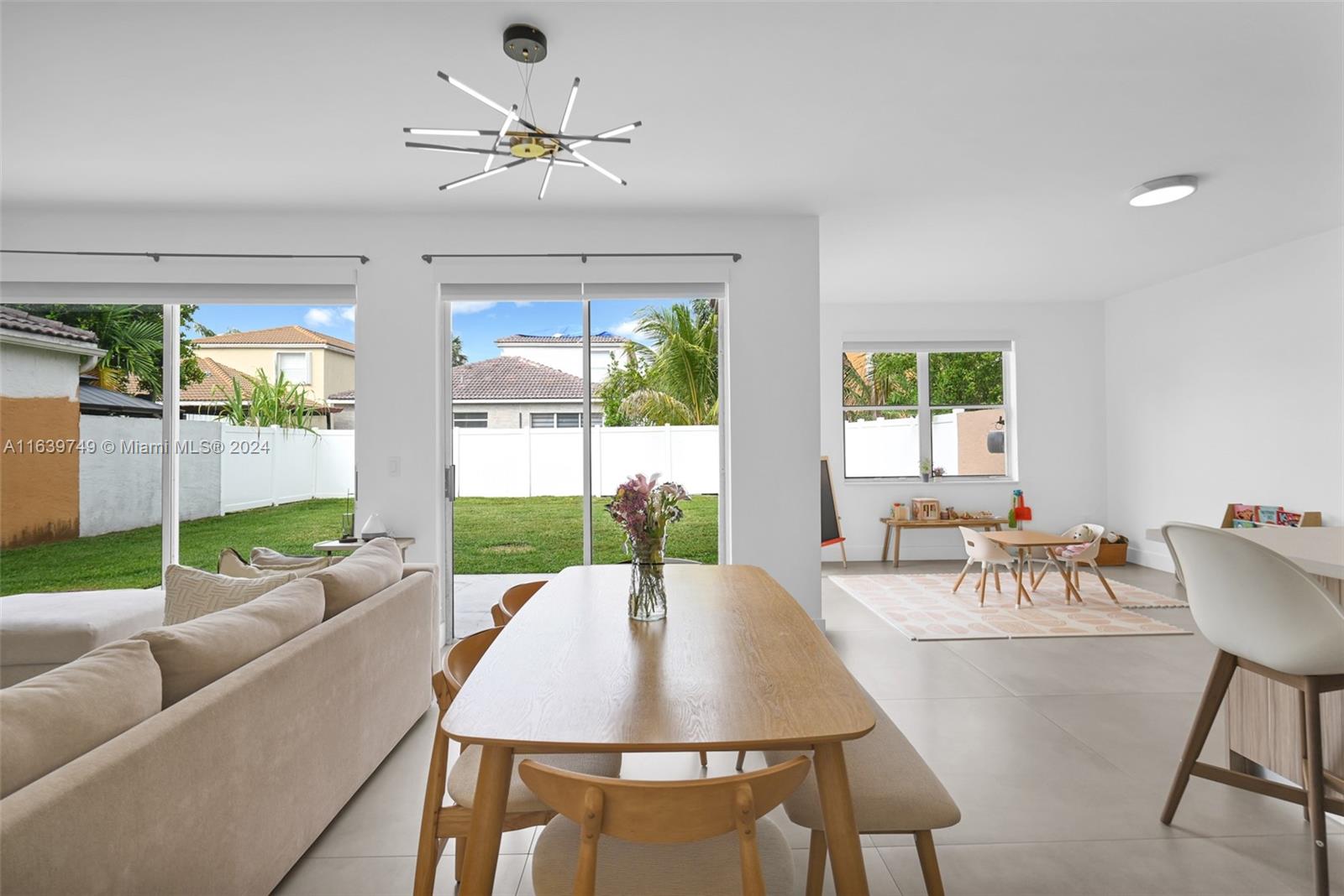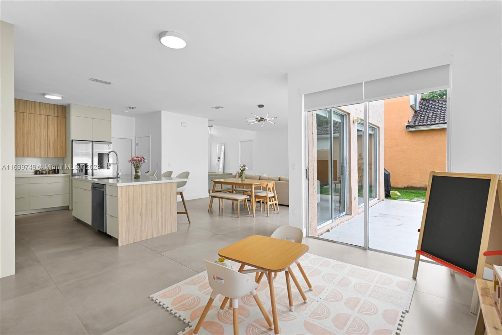 Remodeled single-family home boasting exquisite 42x42 tile flooring throughout the first floor, creating a seamless flow from the moment you step inside. The open concept kitchen and living room area offer a modern and inviting space for both daily living and entertaining. Every detail has been meticulously crafted, including the three remodeled bathrooms, designed with a sleek contemporary style that exudes luxury. Step outside to the backyard, perfectly sized for developing a pool, summer kitchen, and more, enhanced by a brand-new fence providing both privacy and security. LOW HOA $180 MONTHLY