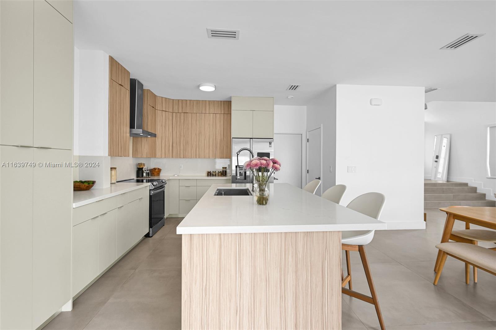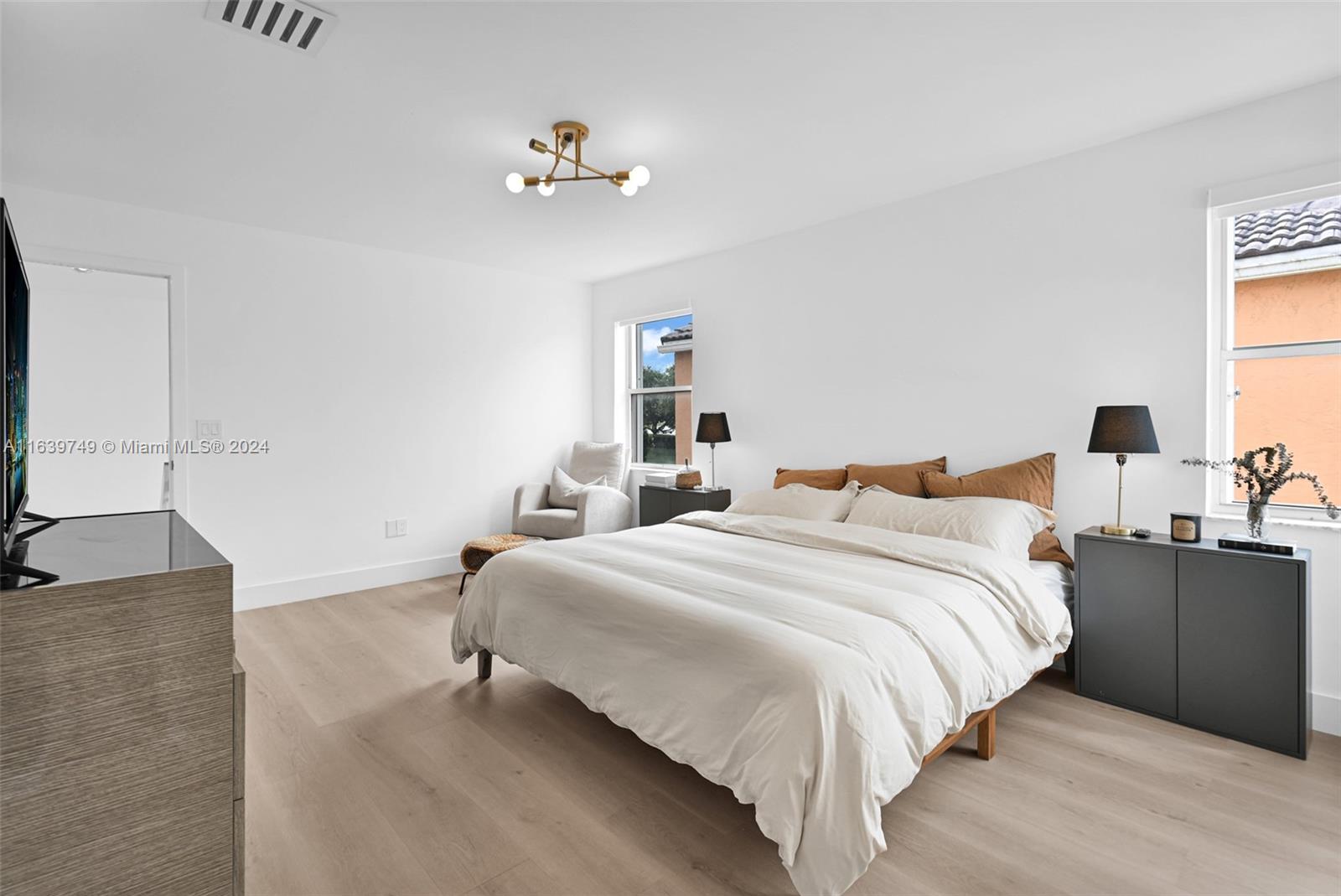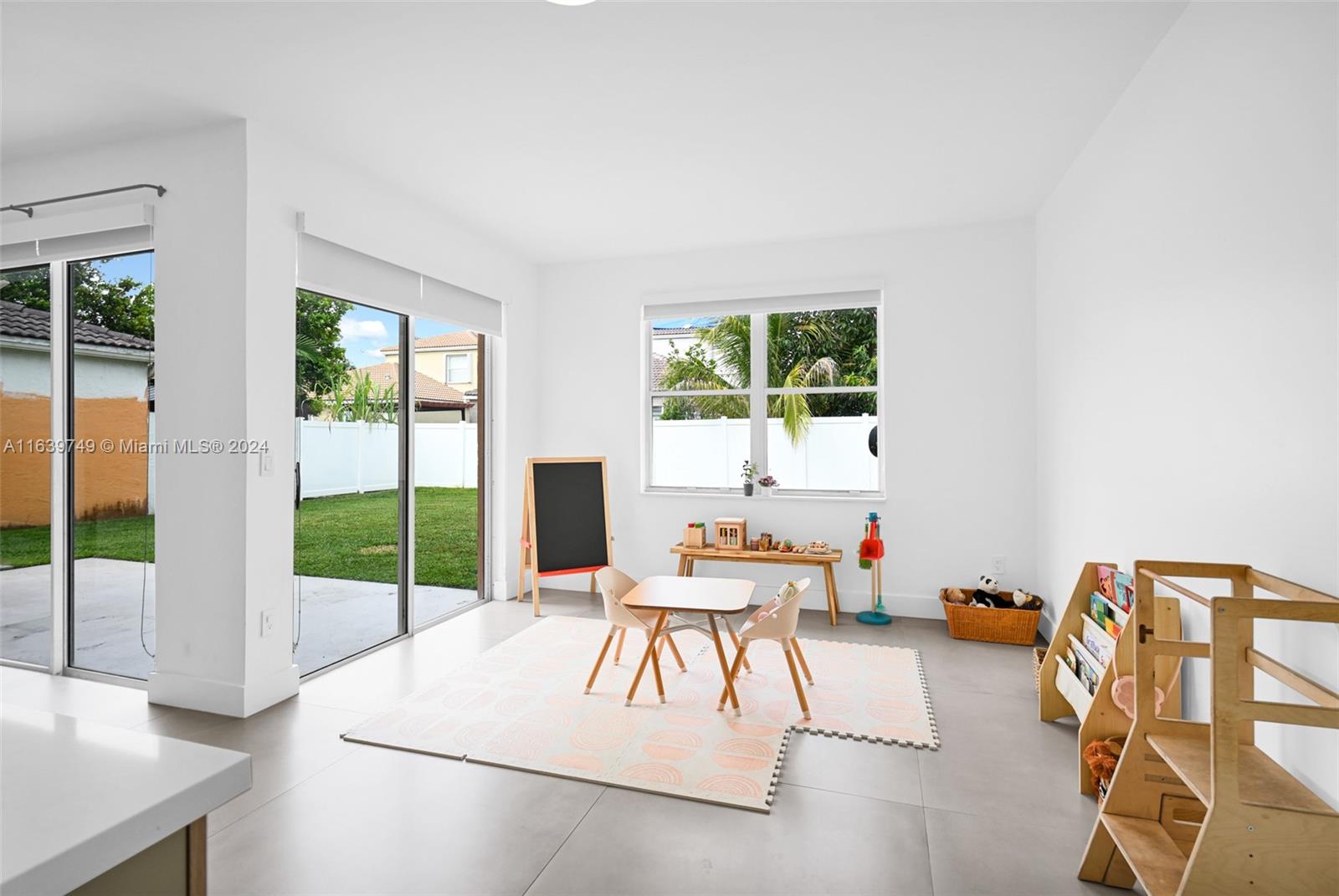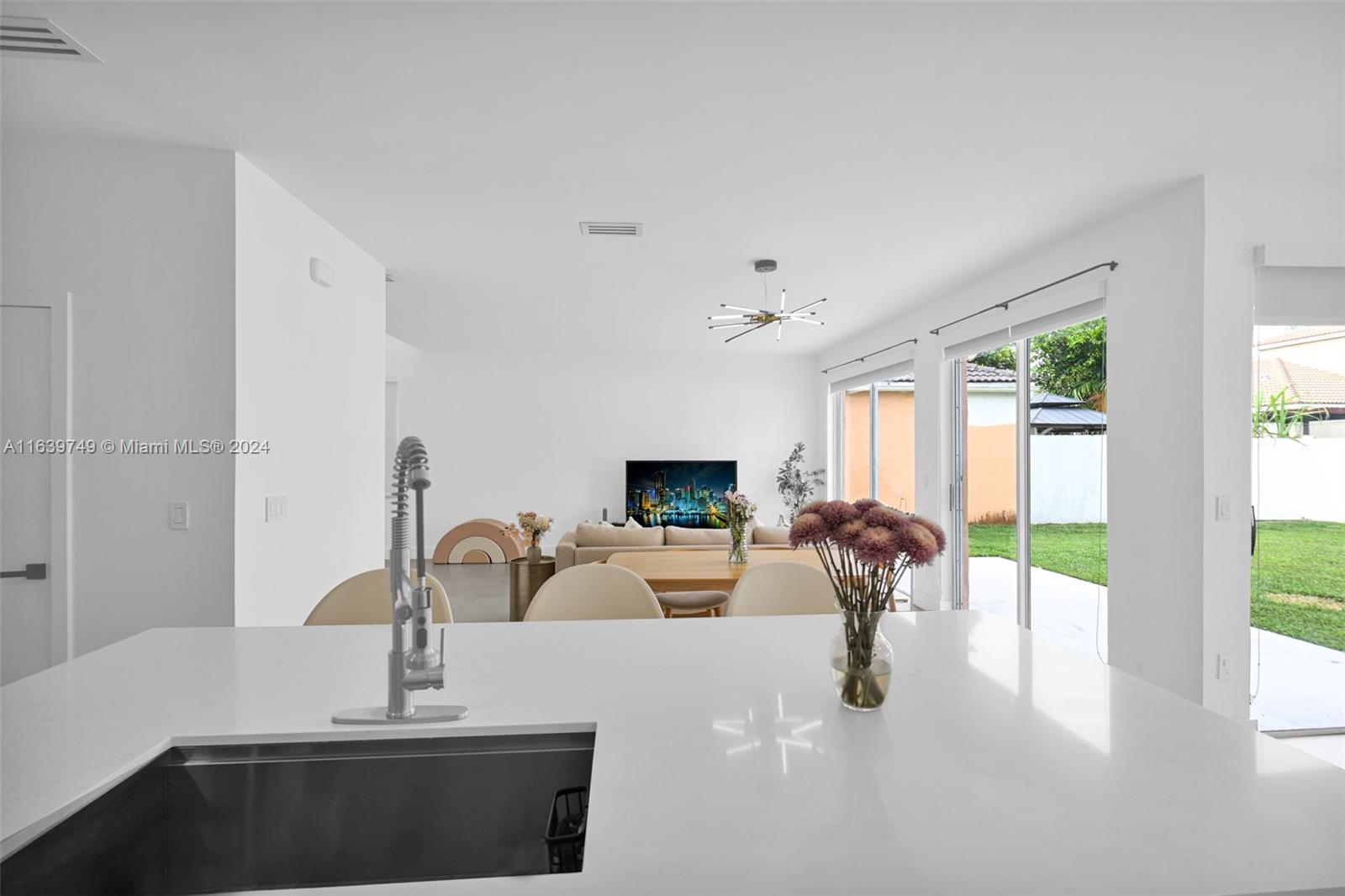 Remodeled single-family home boasting exquisite 42x42 tile flooring throughout the first floor, creating a seamless flow from the moment you step inside. The open concept kitchen and living room area offer a modern and inviting space for both daily living and entertaining. Every detail has been meticulously crafted, including the three remodeled bathrooms, designed with a sleek contemporary style that exudes luxury. Step outside to the backyard, perfectly sized for developing a pool, summer kitchen, and more, enhanced by a brand-new fence providing both privacy and security. LOW HOA $180 MONTHLY