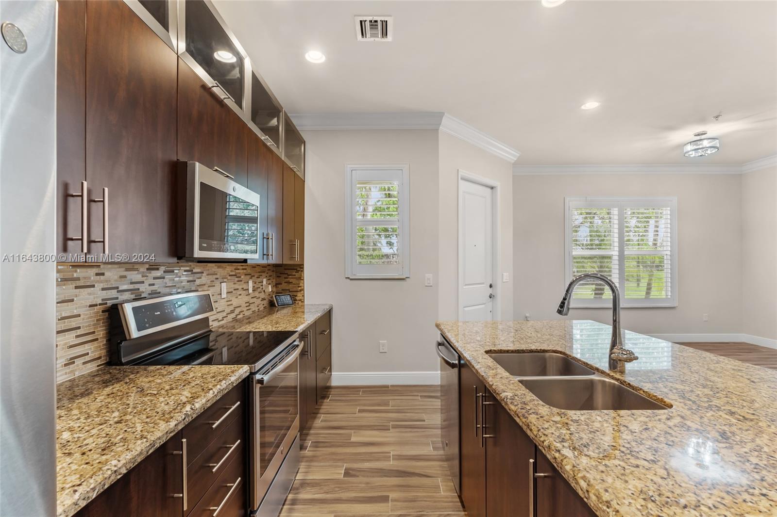 WOW! This stunning townhouse is a must-see to truly appreciate! Fully upgraded with exquisite tile floors, a chef's dream kitchen, a spacious 2-car garage, custom-built closets, wood stairwell, wired internet to all TVs and a premium built-in sound system. Freshly painted and boasting high 10 foot ceilings that flood the space with natural light, this home is designed to impress. Impact windows add to the peace of mind displaying the garden view, and the master suite is an absolute dream, offering a luxurious retreat that you won't want to leave. Vacant and easy to show!
