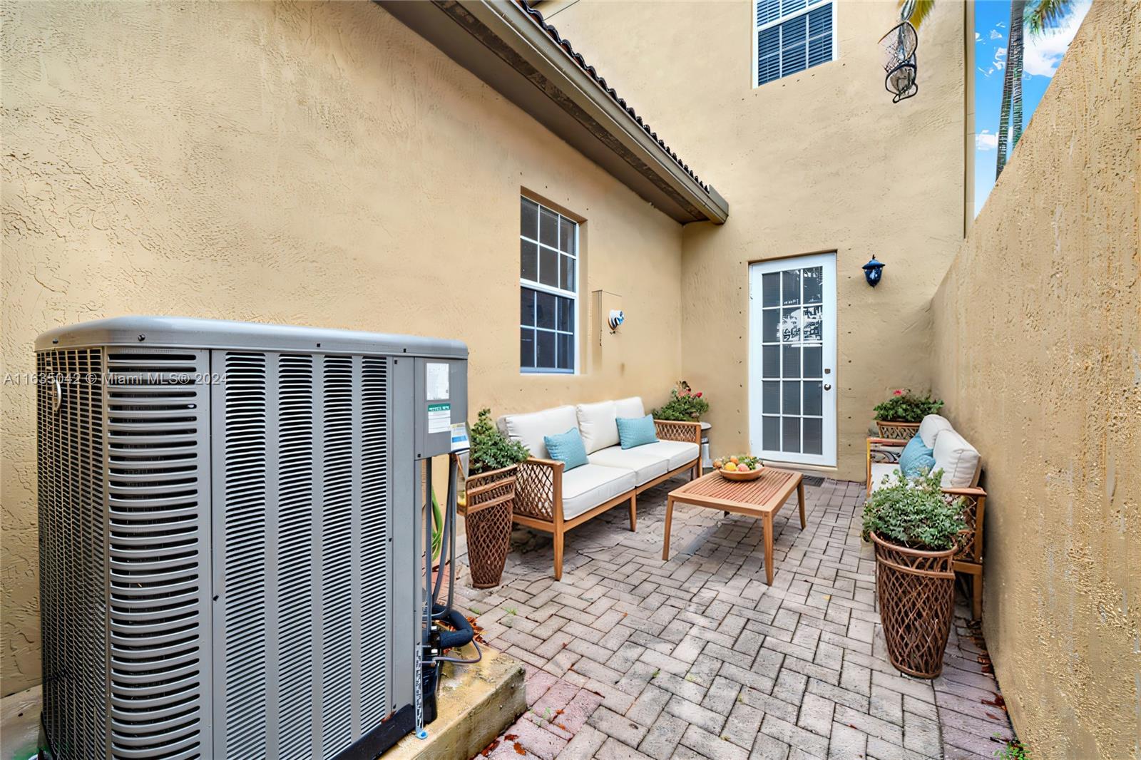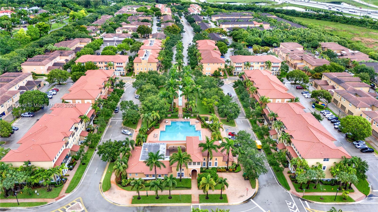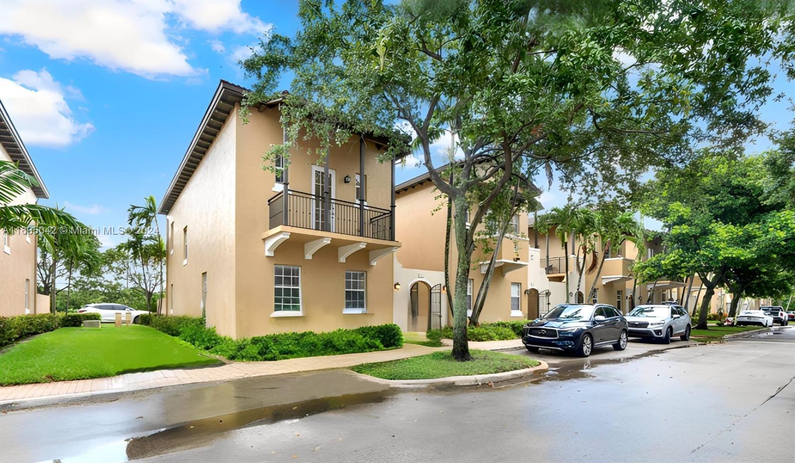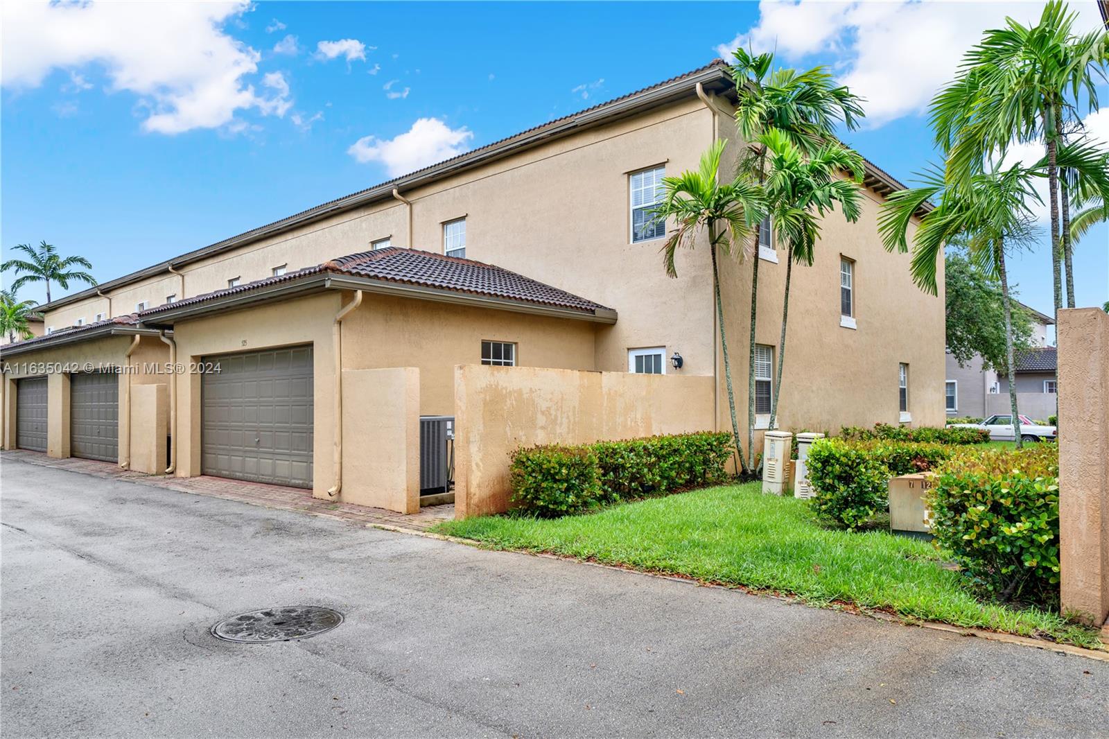 Welcome to an exquisite corner lot 3 bedroom/2.5 bath townhome with 2 car garage, private patio in front and patio space in back of unit. Impressive high ceilings. Owners suite has a beautiful balcony space. Additional Loft/Office space upstairs. Gated community with 24 hour manned security. 2 children parks and a resort style community pool with full equipped gym/exercise room. Some photos are virtually staged.