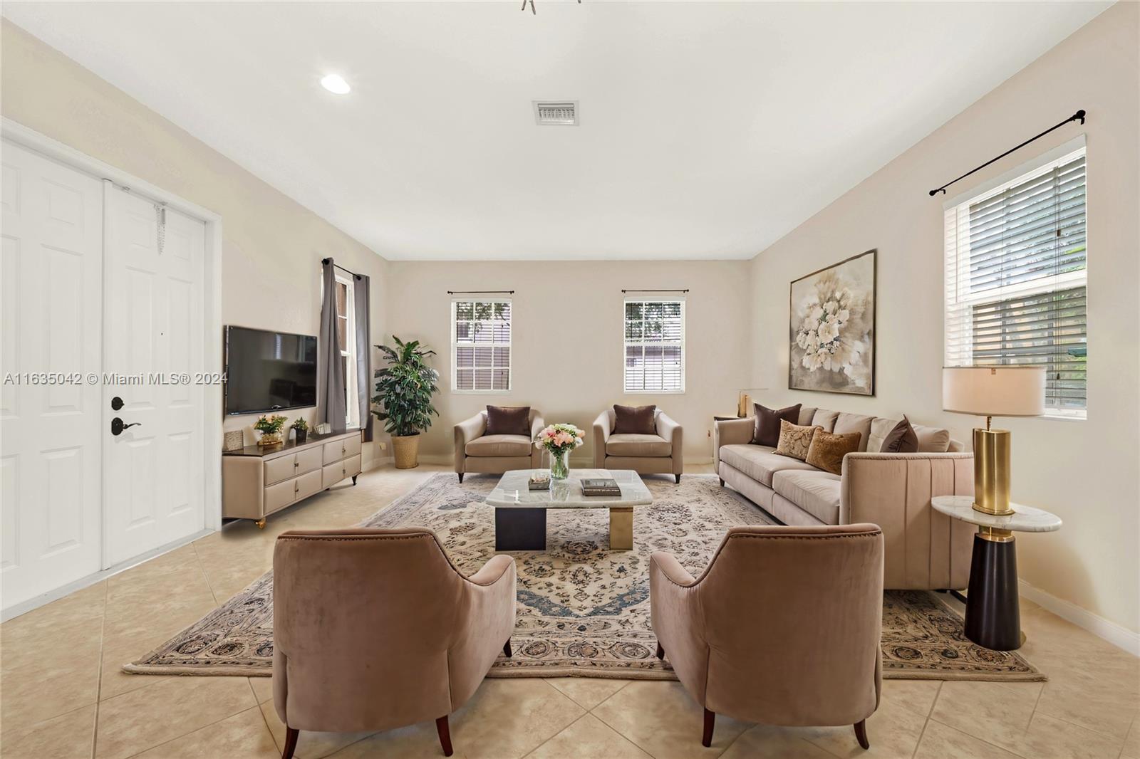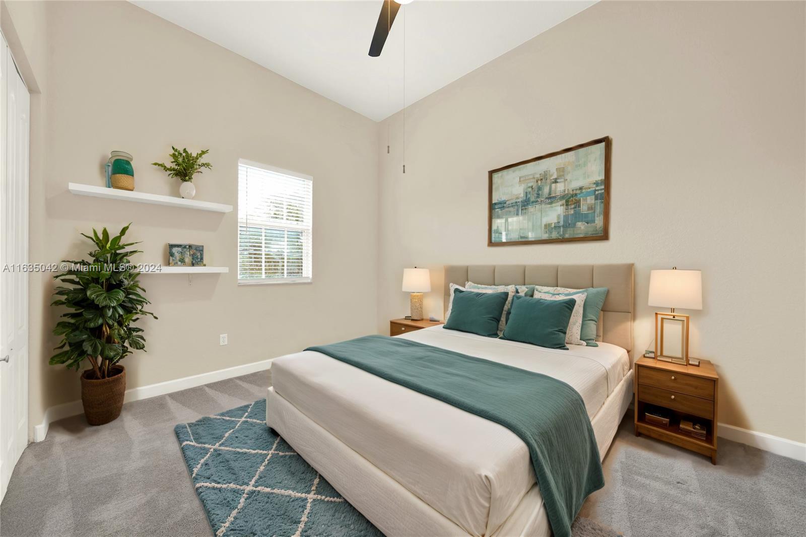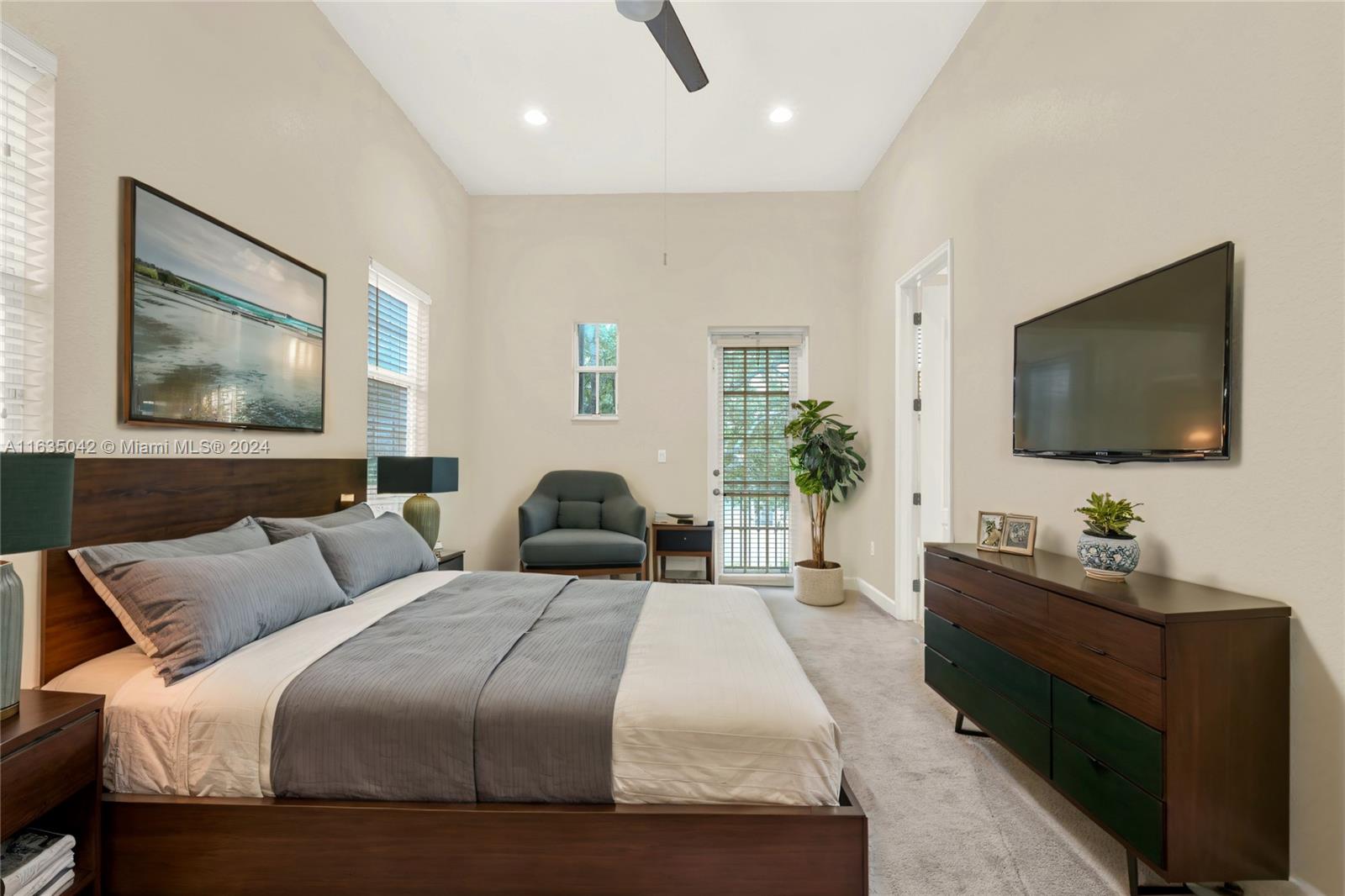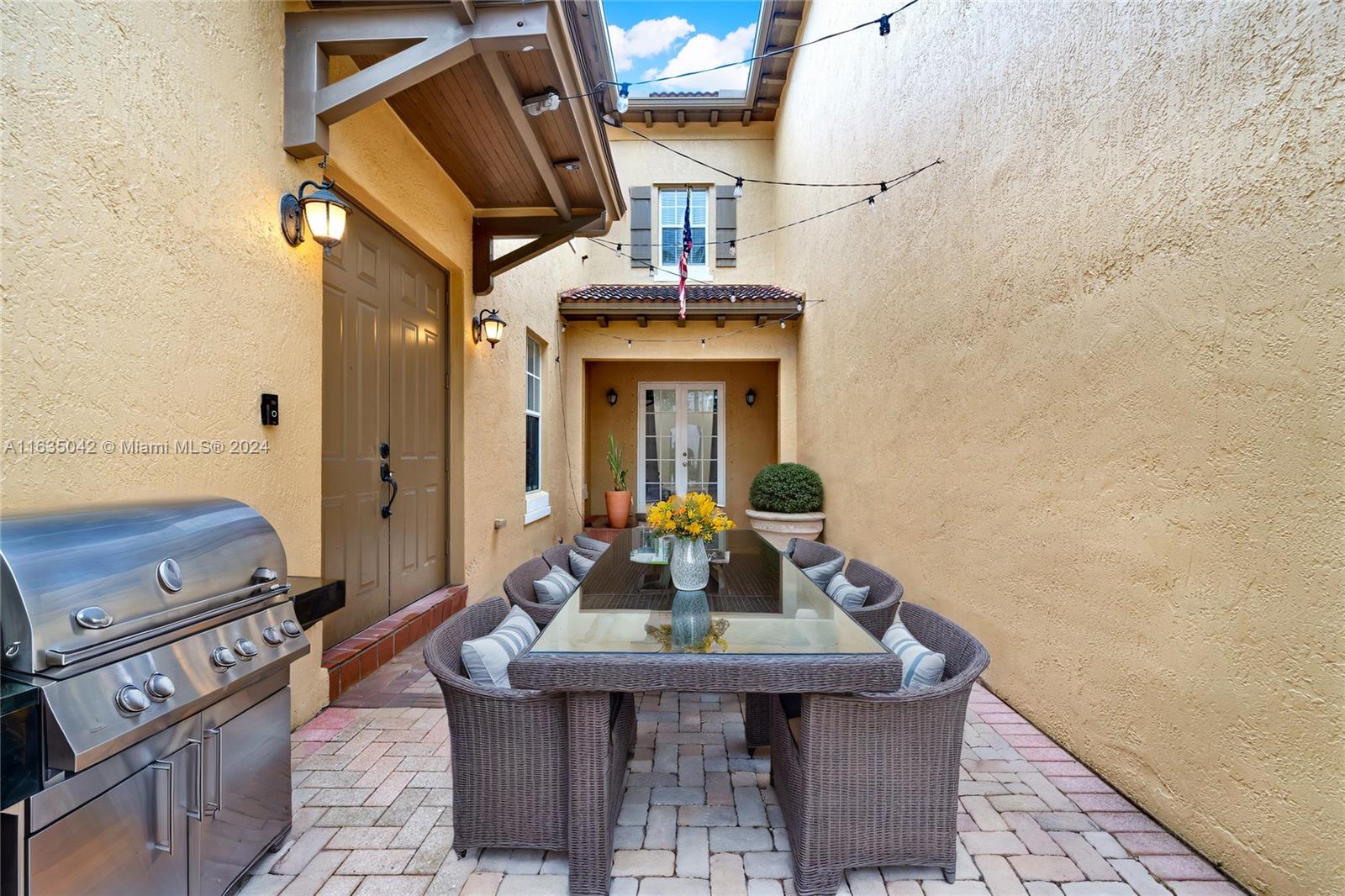 Welcome to an exquisite corner lot 3 bedroom/2.5 bath townhome with 2 car garage, private patio in front and patio space in back of unit. Impressive high ceilings. Owners suite has a beautiful balcony space. Additional Loft/Office space upstairs. Gated community with 24 hour manned security. 2 children parks and a resort style community pool with full equipped gym/exercise room. Some photos are virtually staged.
