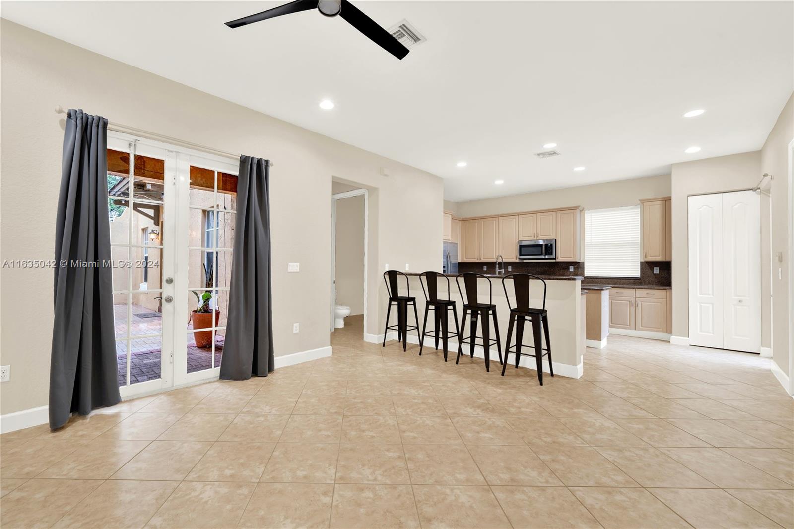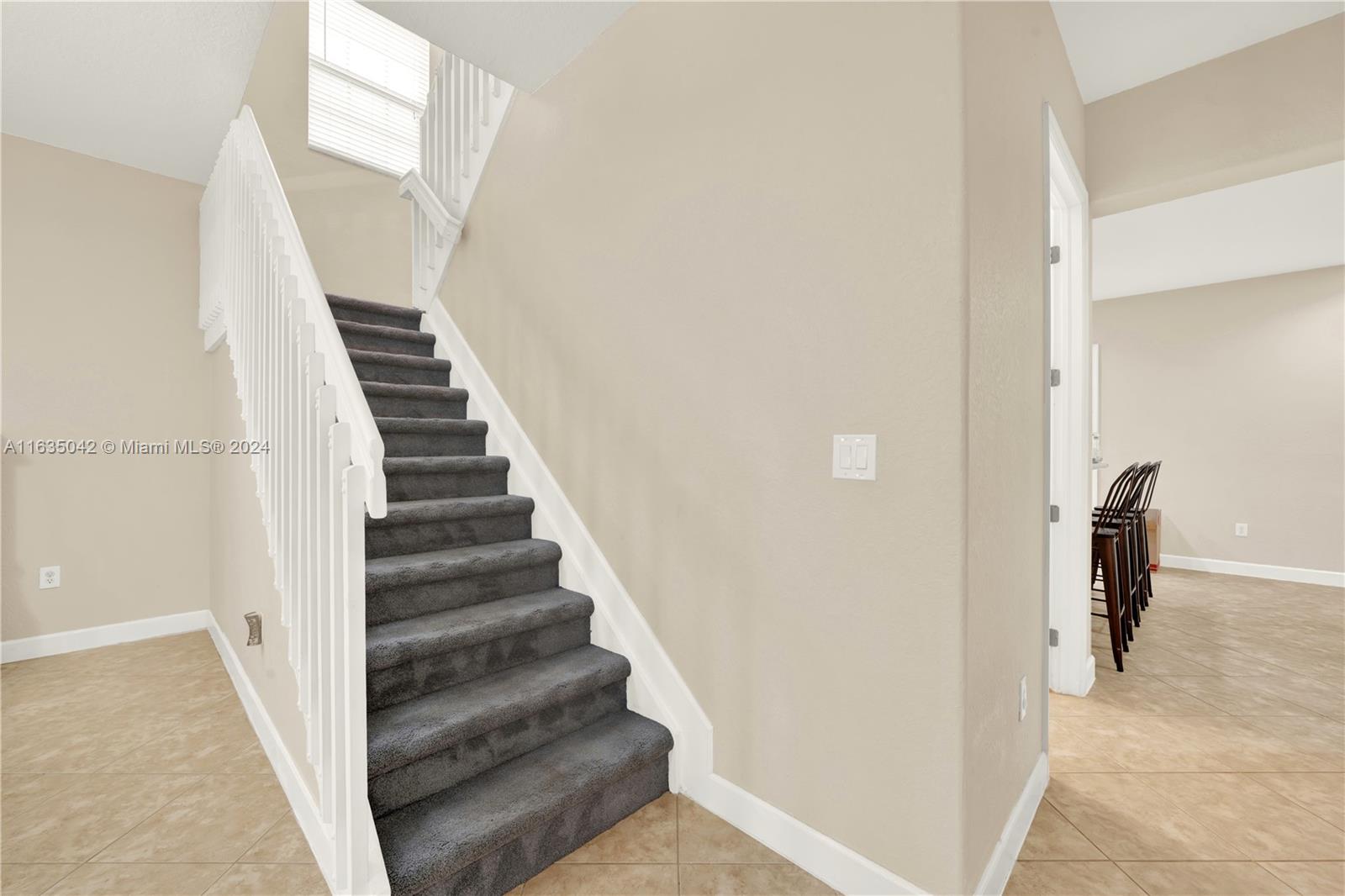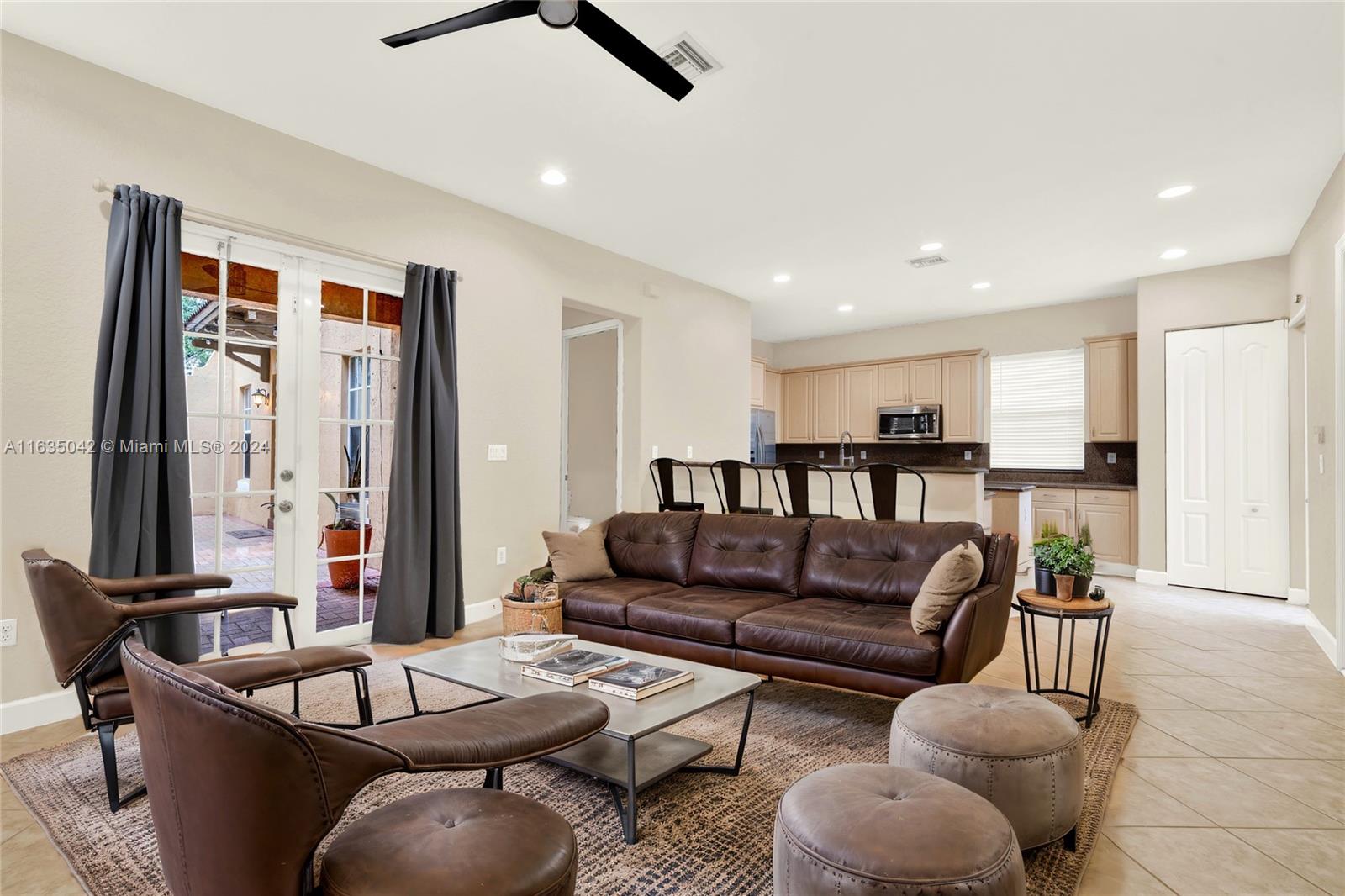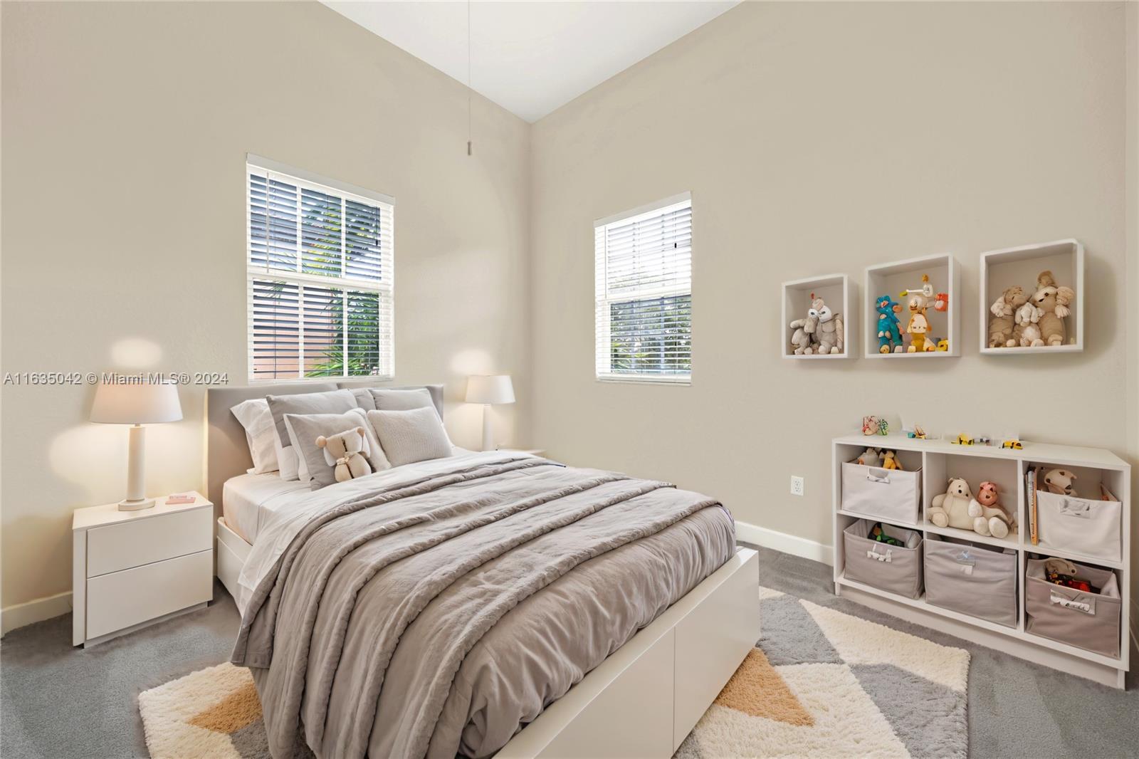 Welcome to an exquisite corner lot 3 bedroom/2.5 bath townhome with 2 car garage, private patio in front and patio space in back of unit. Impressive high ceilings. Owners suite has a beautiful balcony space. Additional Loft/Office space upstairs. Gated community with 24 hour manned security. 2 children parks and a resort style community pool with full equipped gym/exercise room. Some photos are virtually staged.