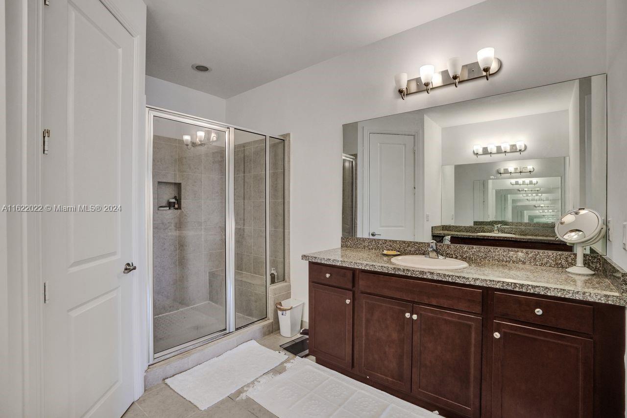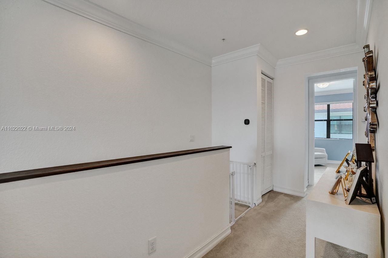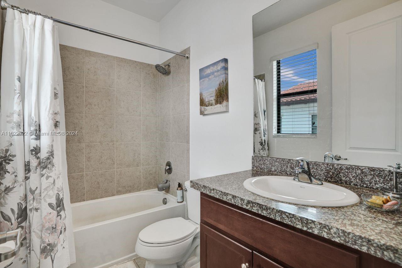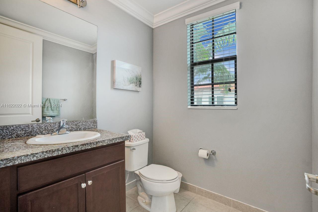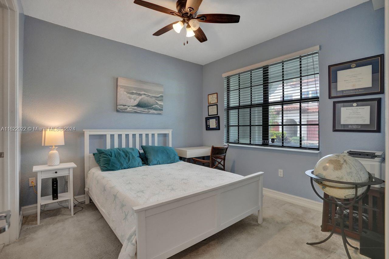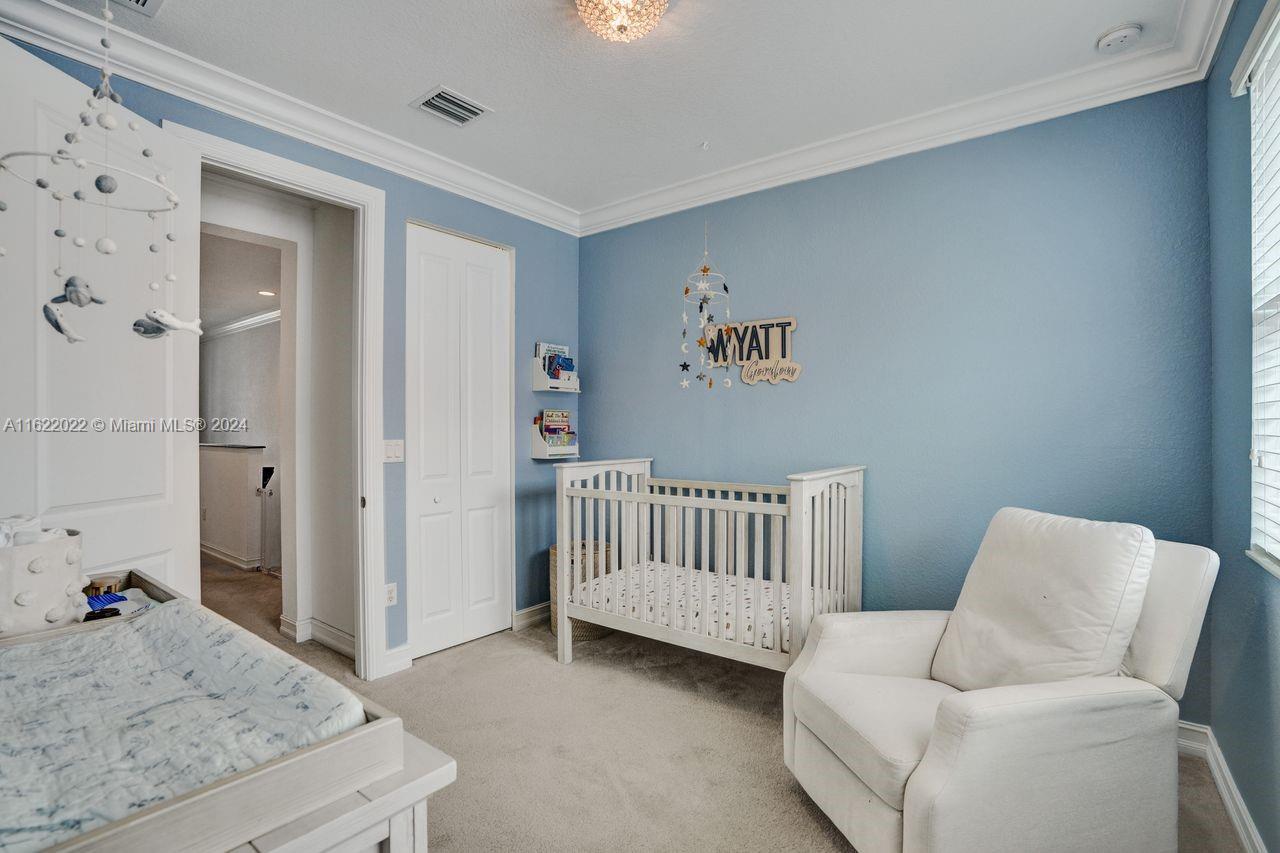 Welcome to this stunning tri-level townhome, in the sought-after community of Raintree. All three bedrooms have their own full bathroom, with a half bathroom in the main living area. The ground level features one bedroom with a walk-in closet. The primary bedroom is on the third level and features a shower, double sink, and a sitting area. The third bedroom has a full bathroom with a tub. Tile and carpet flooring. The kitchen with stainless steel appliances, a cooking island, and a formal dining area. The second and third floor has an outdoor balcony for your own private retreat. Numerous upgrades including custom crown molding throughout the entire home, upgraded staircases and kitchen backsplash. Impact windows. Two-car garage. Amenities include a community pool, clubhouse, and gym.