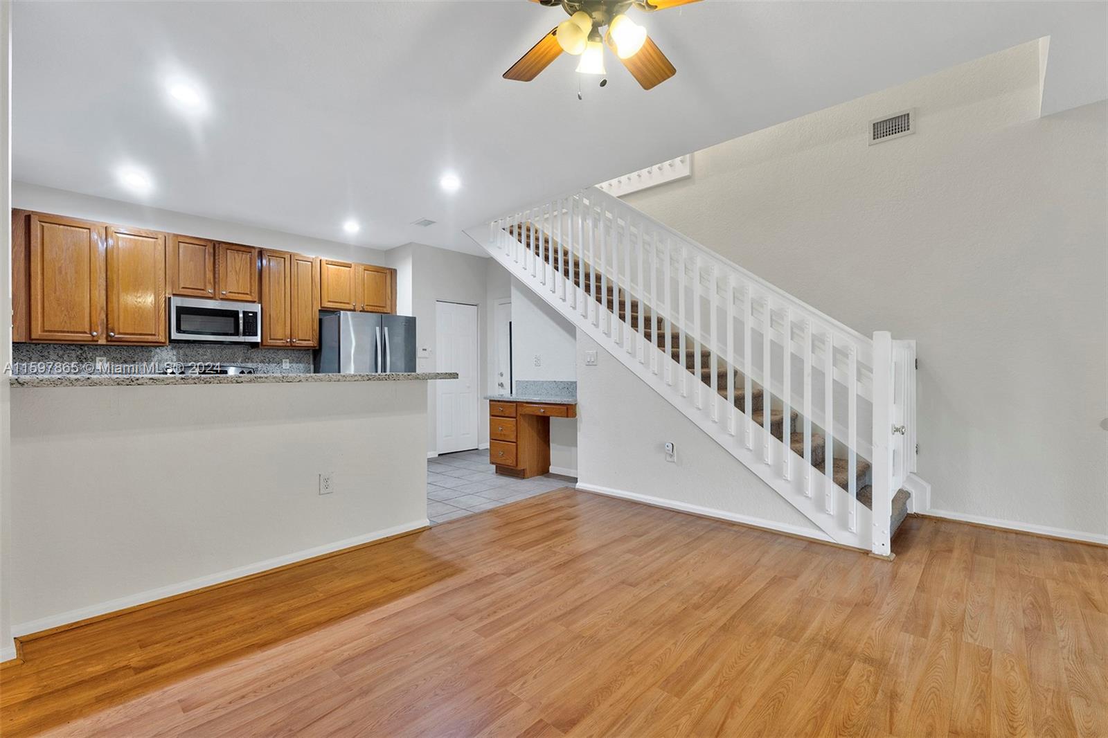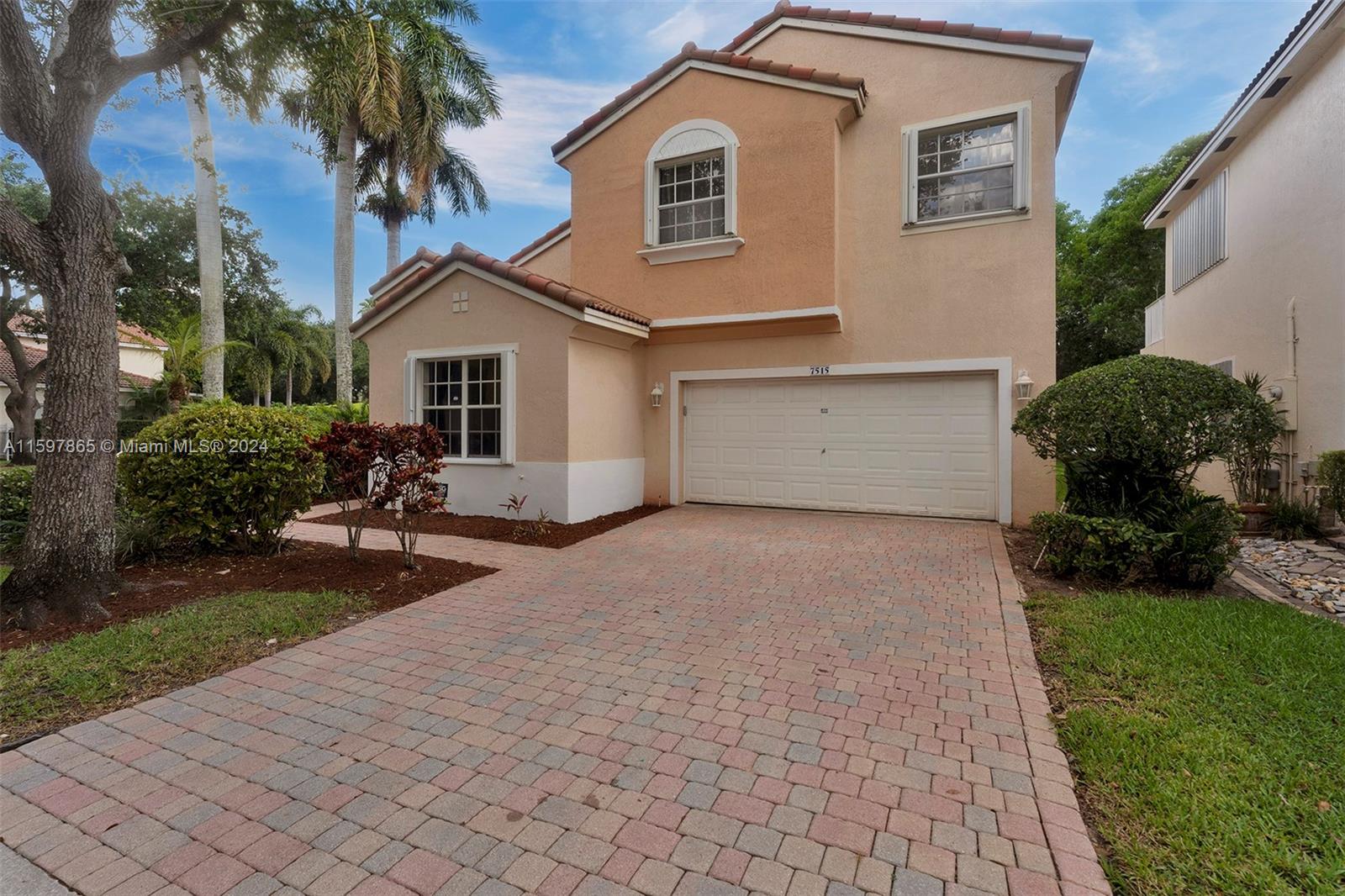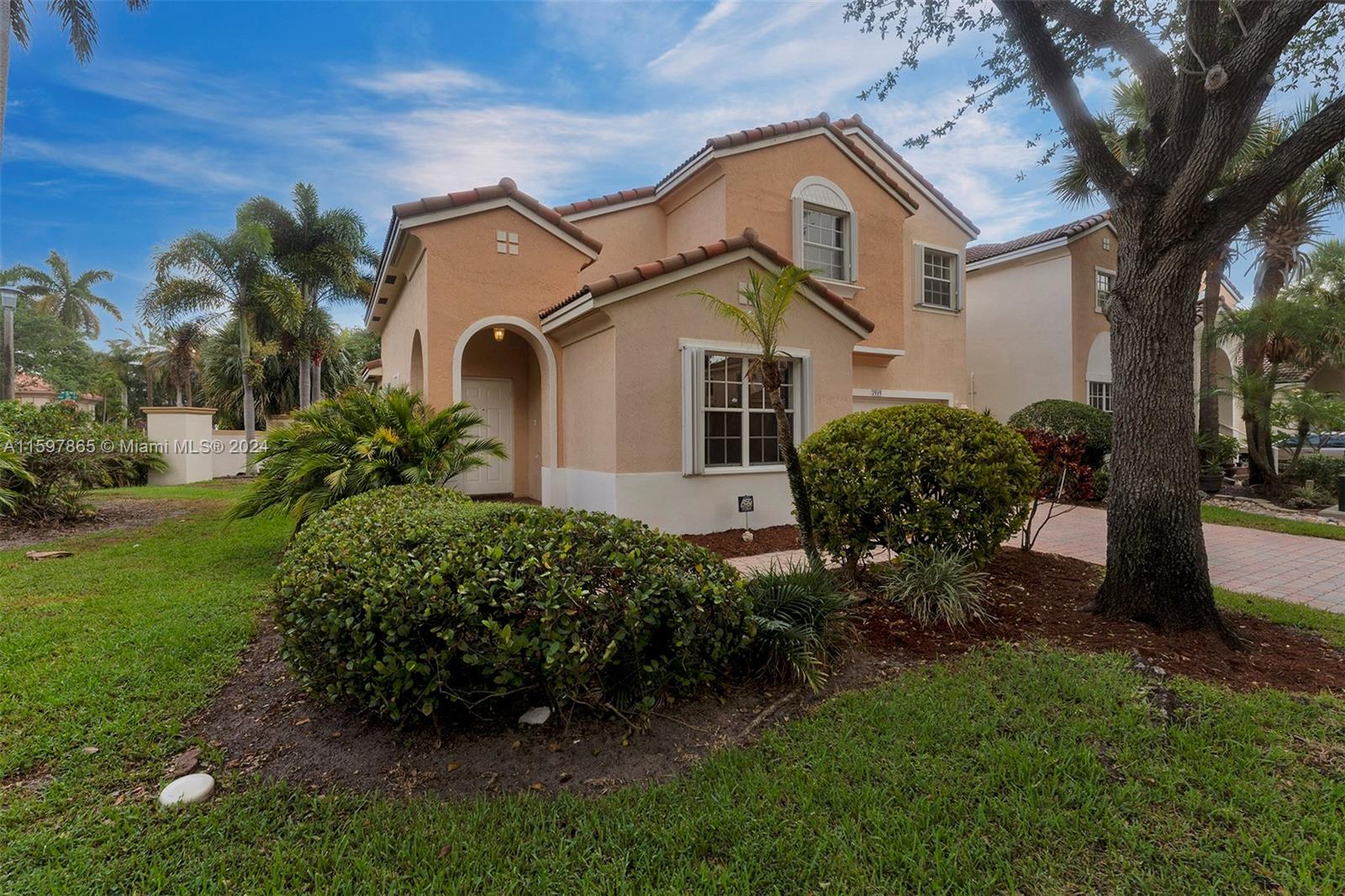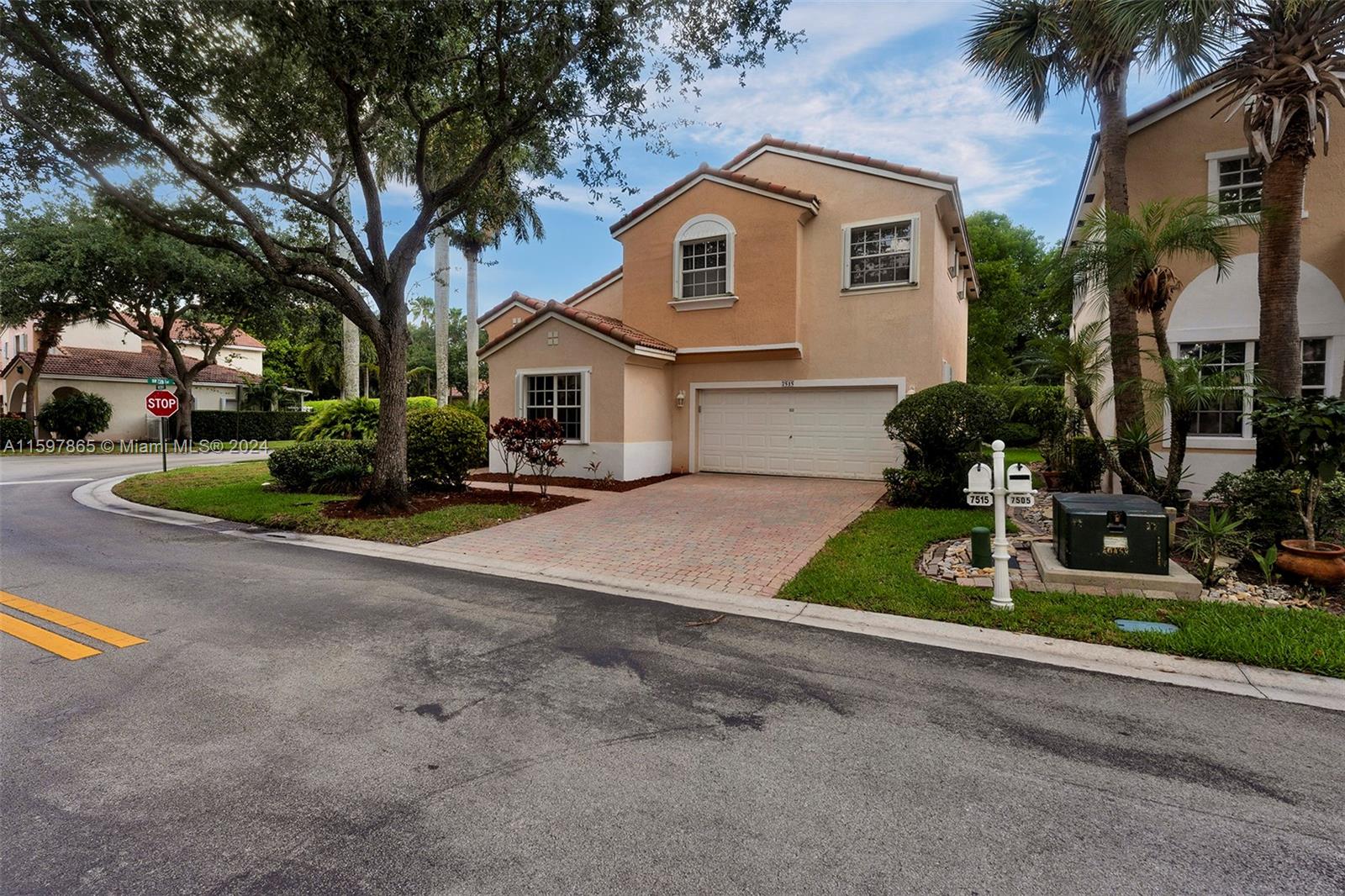 Welcome to Walnut Creek a Gated Community! This beautiful 3BR - 3BA home is located just across from the Clubhouse. Walk and enjoy the community pool w/o the hassle of maintaining a pool. This cozy corner lot home features an upgraded kitchen, wood cabinets, granite countertops, and SS appliances. Two primary suites on the 2nd floor and one suite and full bath on 1st floor, 2 car garage and paved driveway. Accordion Hurricane shutters, laminated/ceramic floors, and carpet on stairs. Beautiful screened paved patio with no neighbors behind you. HOA covers lawn (front/back) + tree/shrub maintenance, sprinkler system, cable with HBO premium channels, internet, ADT Security system, exercise room, tennis courts, children's playground, and much more.