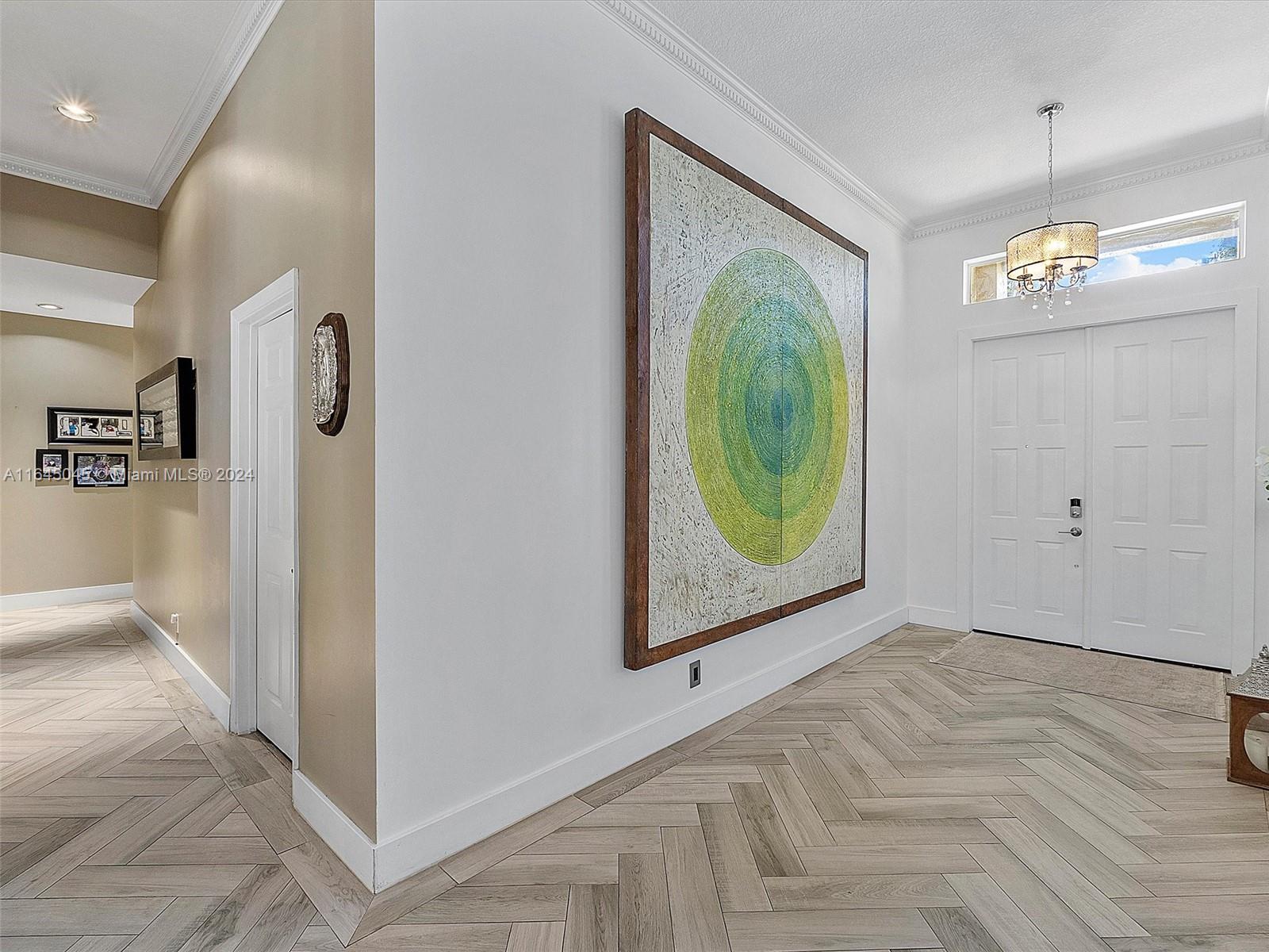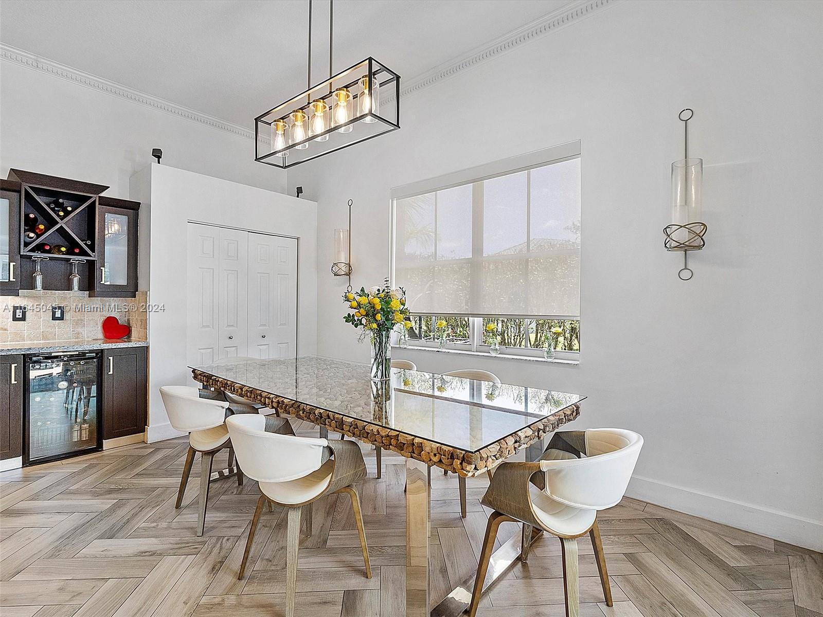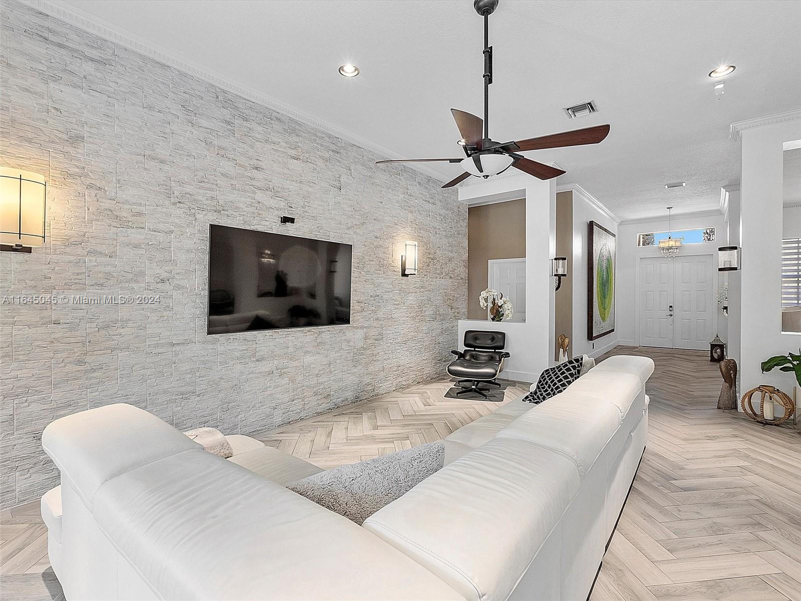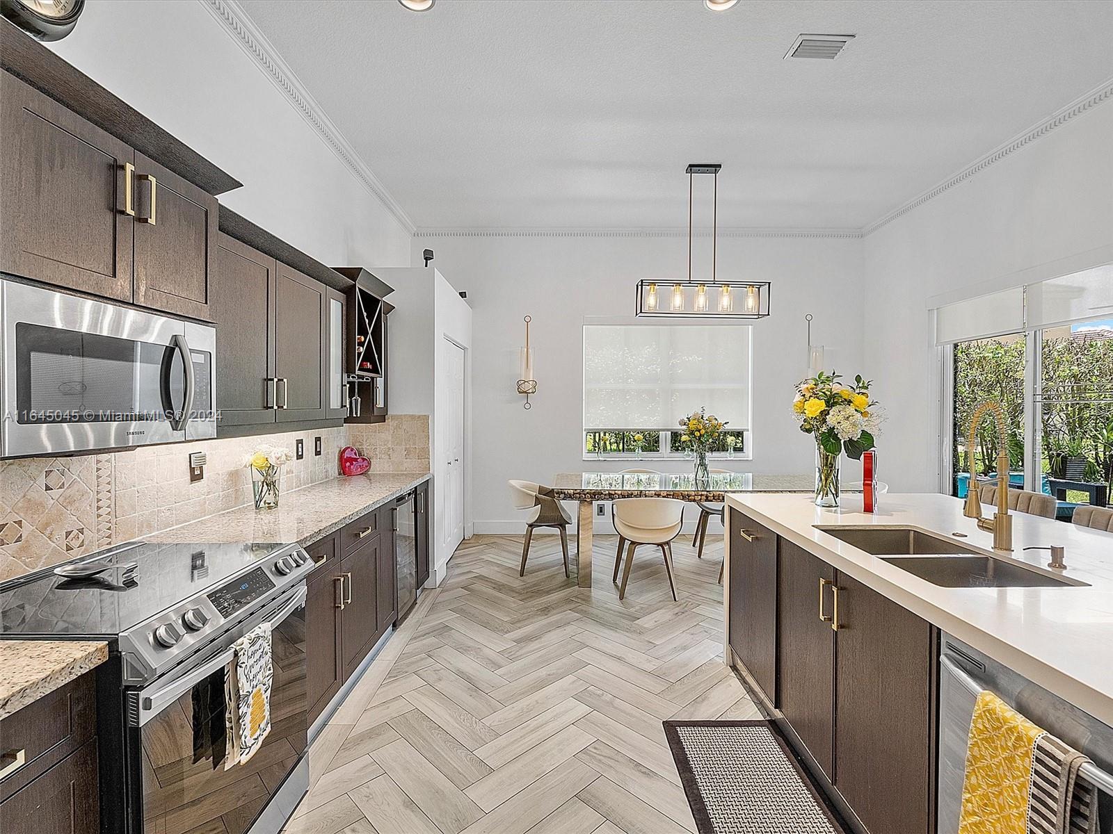 This stunning residence has spacious living areas, including a formal living and dining room and a generously sized family room. The home features one of the largest kitchens in Savanna, complete with a breakfast bar and cozy breakfast nook. Elegant details like crown molding, chair rail accents, and extra-wide baseboards enhance the charm of the bedrooms. The flooring is a stylish blend of neutral tile in the living areas and wood laminate in the bedrooms. Outside, you'll find lush landscaping in both the front and back yards, with ample room for a pool. Plus, the property is conveniently adjacent to a huge park, perfect for outdoor activities. This home is a true gem, combining comfort, style, and a fantastic location!