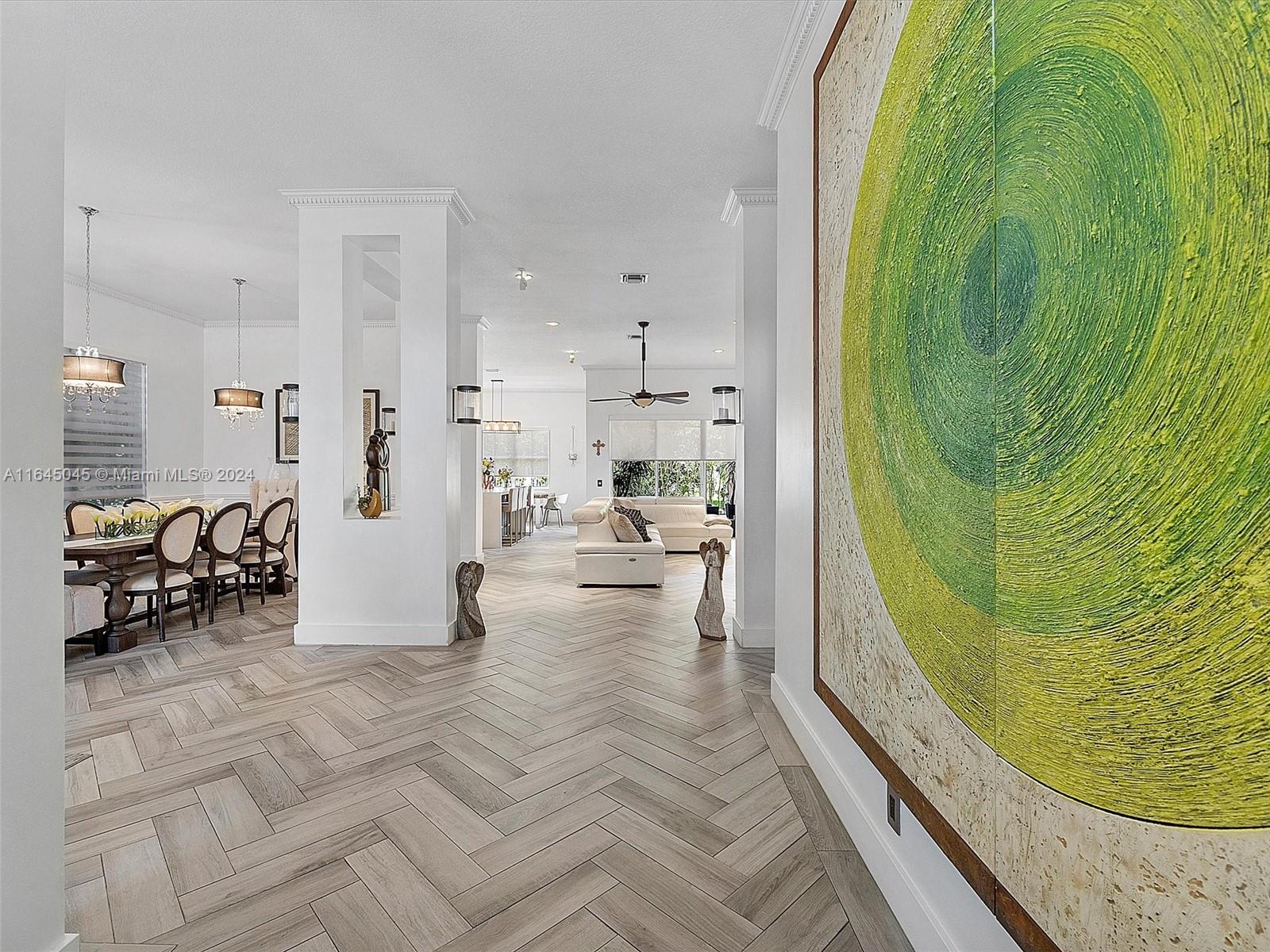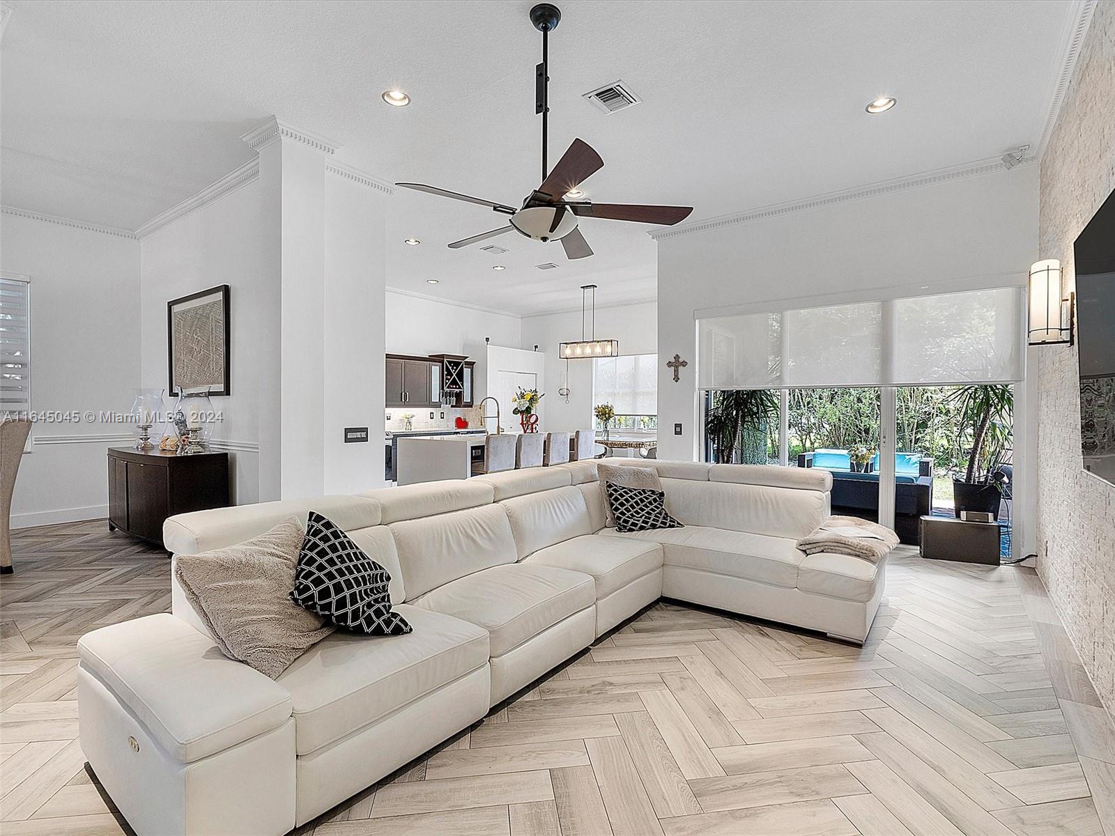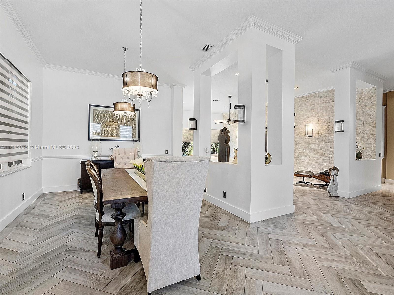 This stunning residence has spacious living areas, including a formal living and dining room and a generously sized family room. The home features one of the largest kitchens in Savanna, complete with a breakfast bar and cozy breakfast nook. Elegant details like crown molding, chair rail accents, and extra-wide baseboards enhance the charm of the bedrooms. The flooring is a stylish blend of neutral tile in the living areas and wood laminate in the bedrooms. Outside, you'll find lush landscaping in both the front and back yards, with ample room for a pool. Plus, the property is conveniently adjacent to a huge park, perfect for outdoor activities. This home is a true gem, combining comfort, style, and a fantastic location!