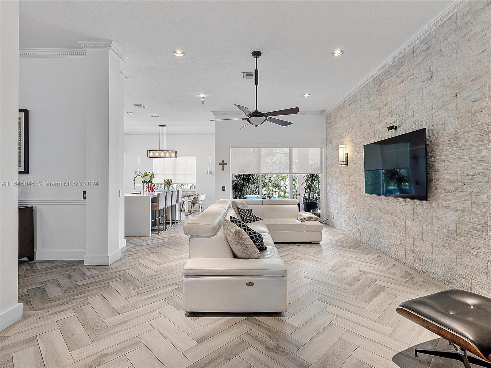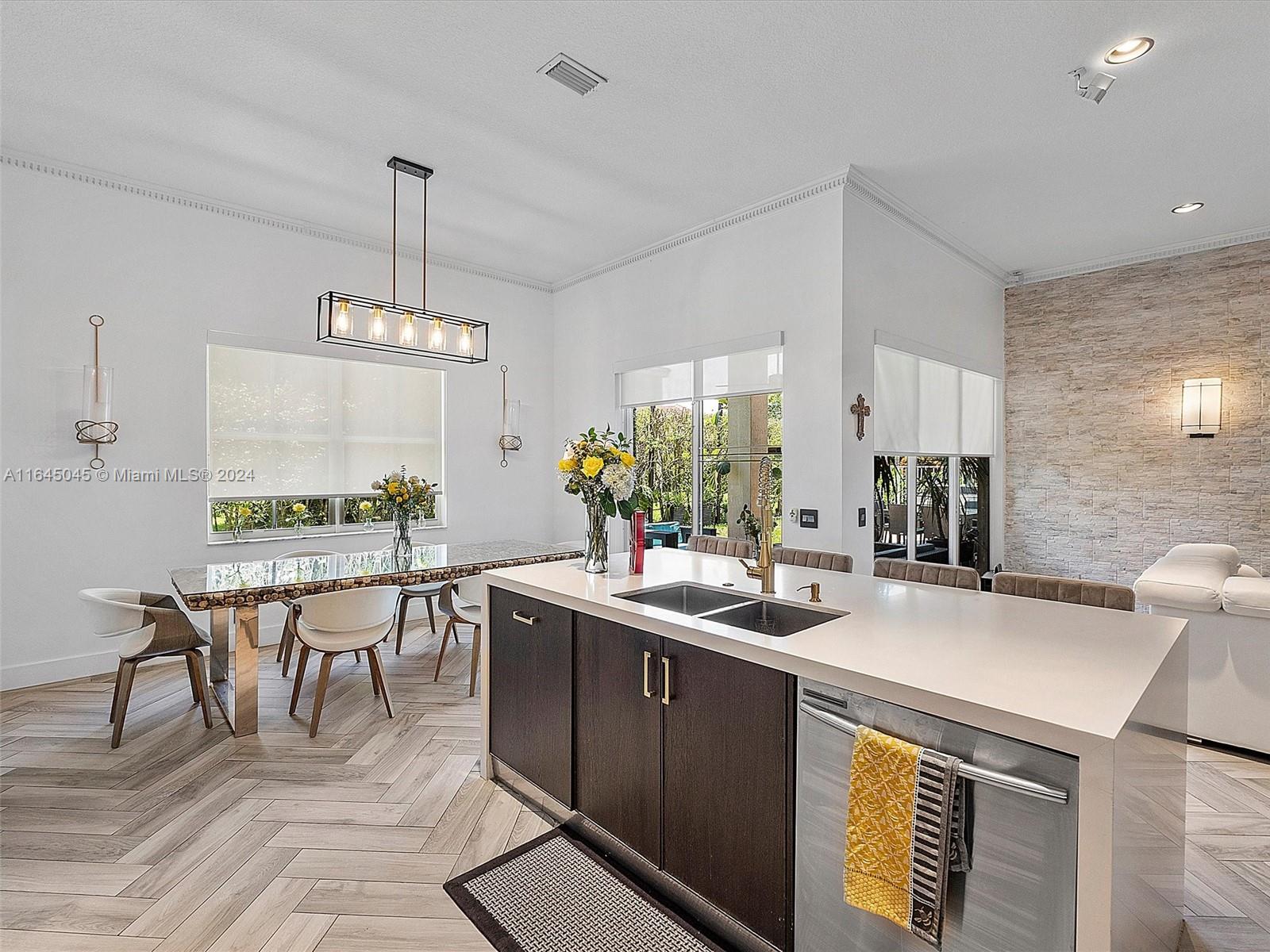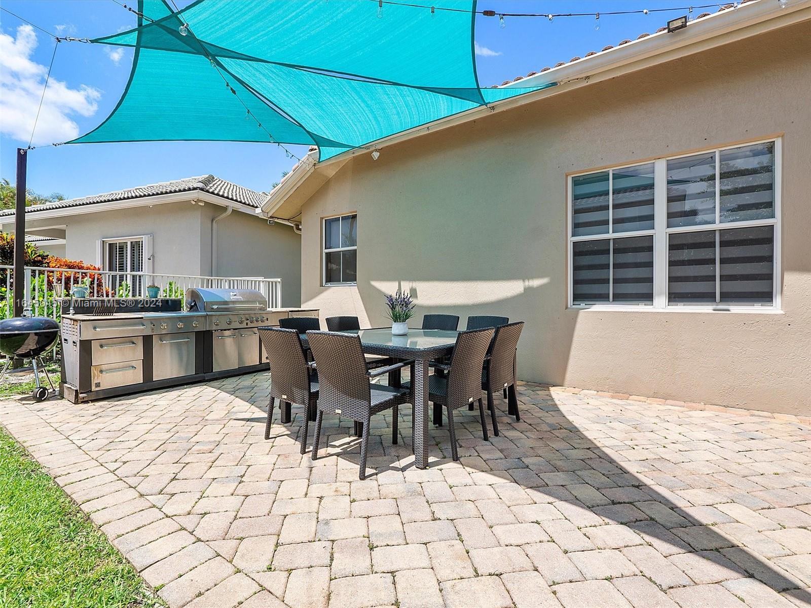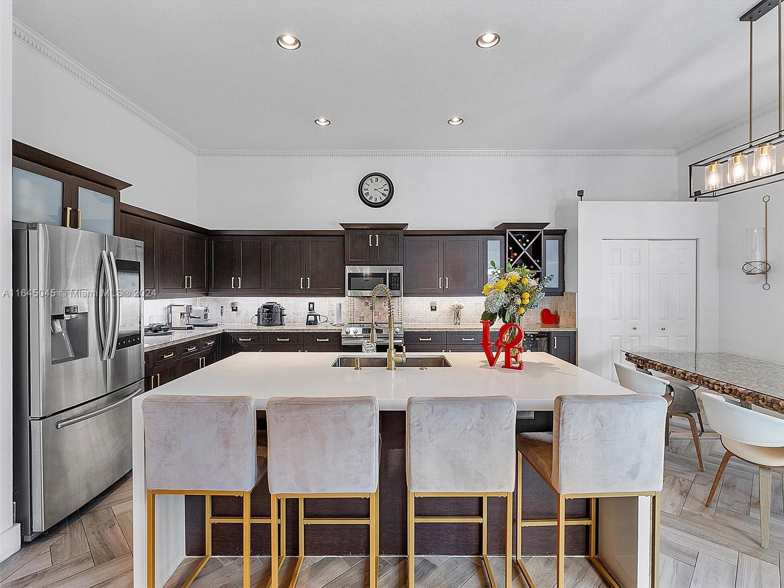 This stunning residence has spacious living areas, including a formal living and dining room and a generously sized family room. The home features one of the largest kitchens in Savanna, complete with a breakfast bar and cozy breakfast nook. Elegant details like crown molding, chair rail accents, and extra-wide baseboards enhance the charm of the bedrooms. The flooring is a stylish blend of neutral tile in the living areas and wood laminate in the bedrooms. Outside, you'll find lush landscaping in both the front and back yards, with ample room for a pool. Plus, the property is conveniently adjacent to a huge park, perfect for outdoor activities. This home is a true gem, combining comfort, style, and a fantastic location!