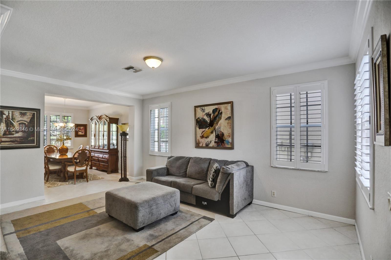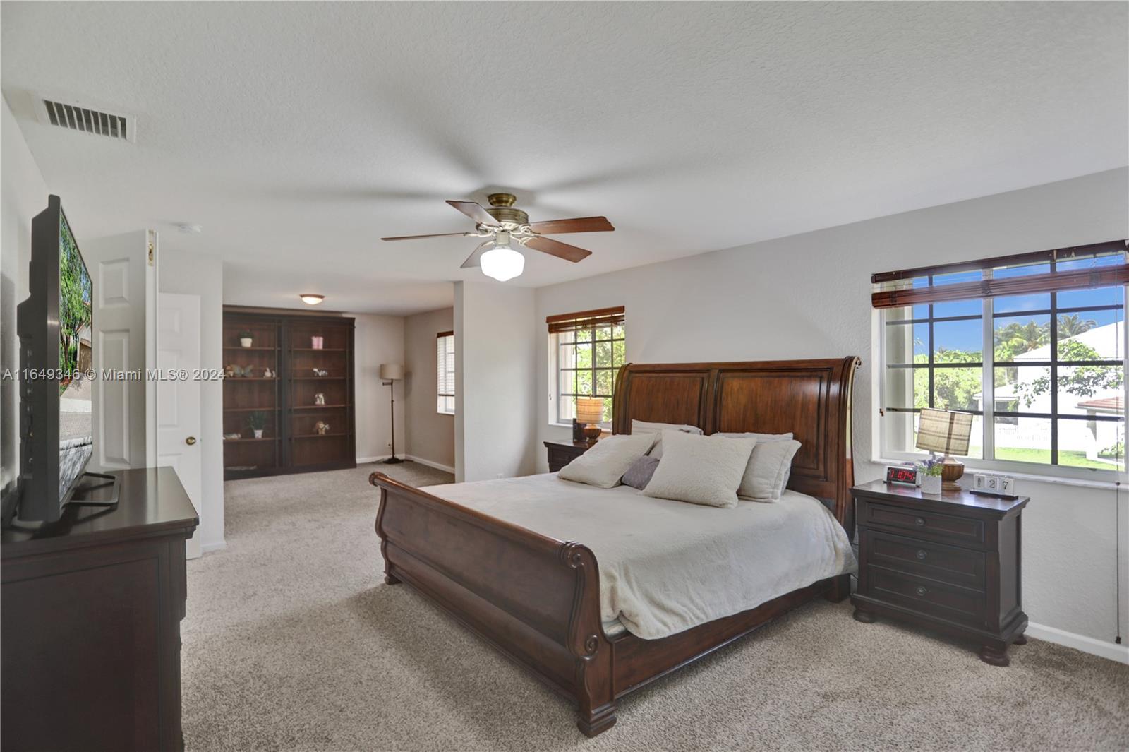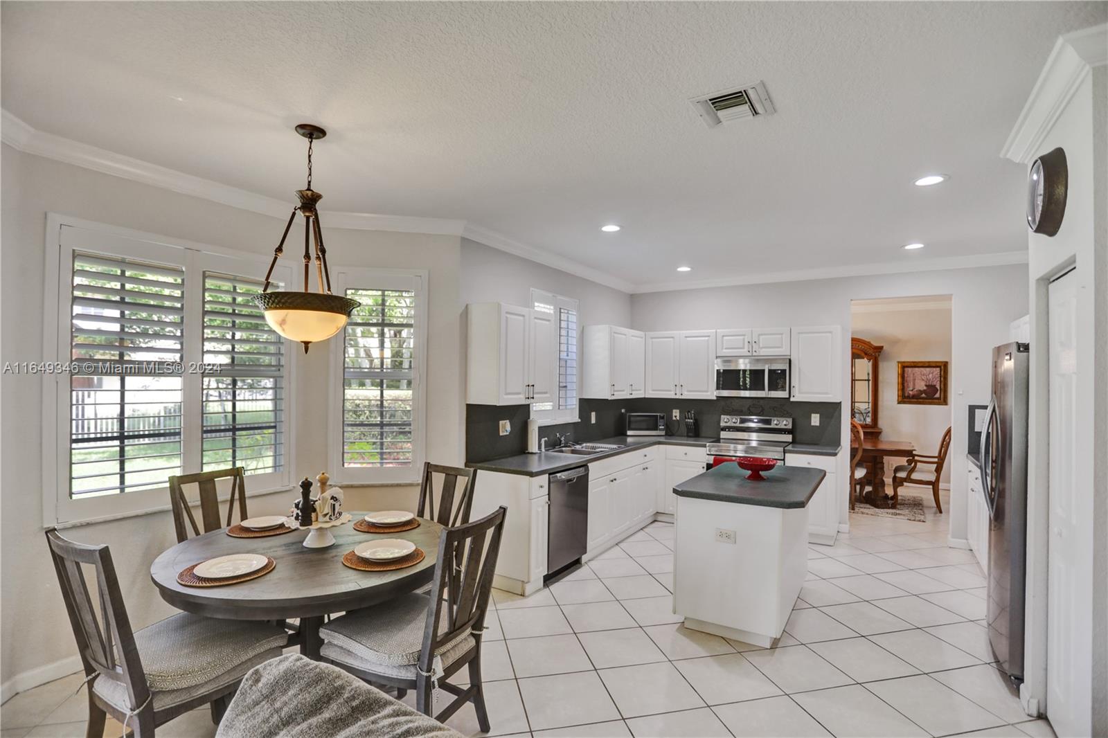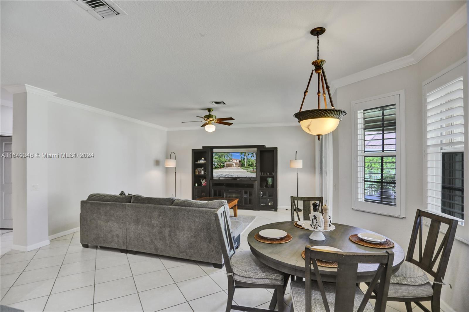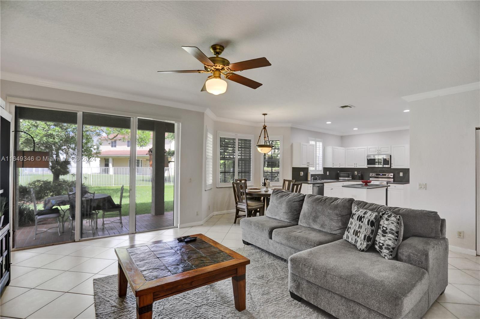 Weston Gem! This beautiful house has a brand new roof and new A/Cs & consists of 5 bedrooms + den(1 bedroom & full bathroom downstairs), master bedroom is extra spacious with 2 adjoining areas that can be used as office/gym/TV room etc. 3146 SF living area, kitchen has SS appliances, pantry & breakfast nook, formal living and dining,laundry room, plantation shutters and crown molding through out. House is located in the Savanna gated community with resort style amenities : pool, lap pool,miniature golf, basket ball court clubhouse & conference room. Holiday parties ,bingo night, movie night are just a few of the activities that the HOA offer. No HOA approval , management office on site. **No flood zone **