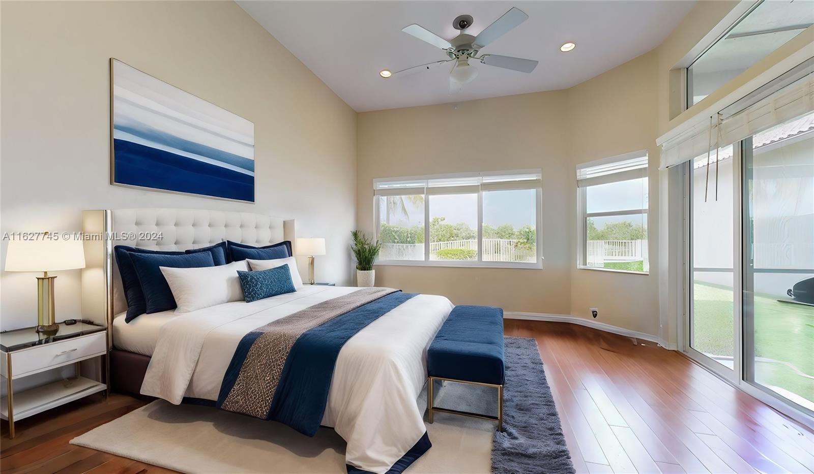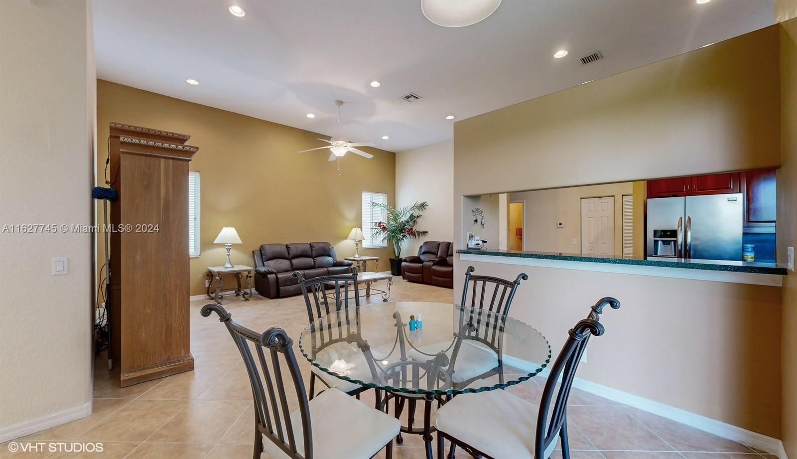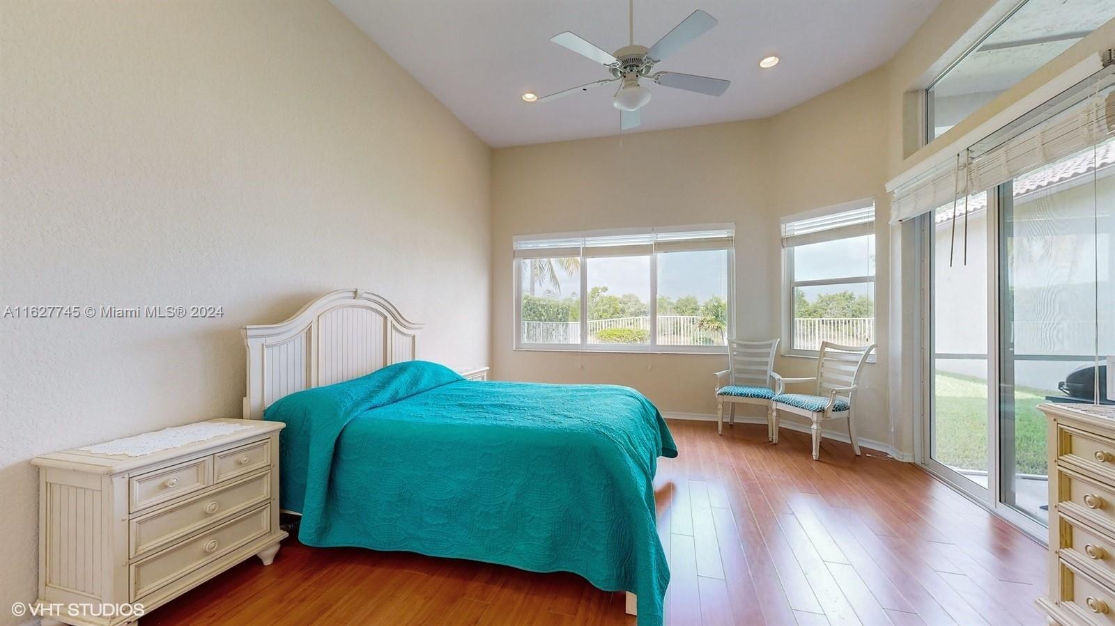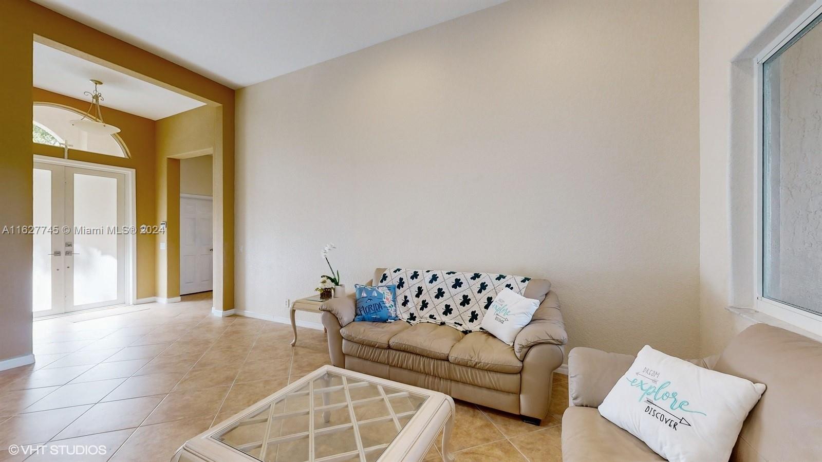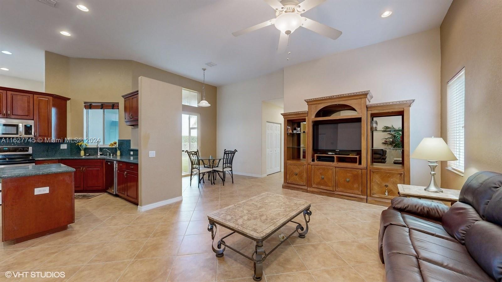 This 4-bedroom plus bonus room, 2.5-bathroom home is a gem located on a picturesque, fenced, waterfront lot overlooking the preserve. Experience breathtaking sunsets from your screened, covered patio. The home features a pavered driveway and front porch. Inside, you'll find a spacious layout with volume ceilings, new hurricane storm windows, and wood kitchen cabinets. There is a formal living room, dining room, and a large family room. The 2-way, split floor plan ensures privacy. There is a laundry room and a 2-car garage. The Savanna community offers the best clubhouse in Weston, complete with a heated lap pool, a huge communal pool and amenities such as miniature golf, a basketball court, a soccer field, roller hockey, a kids' playground, and a cafe. New floors installed in all bedrooms