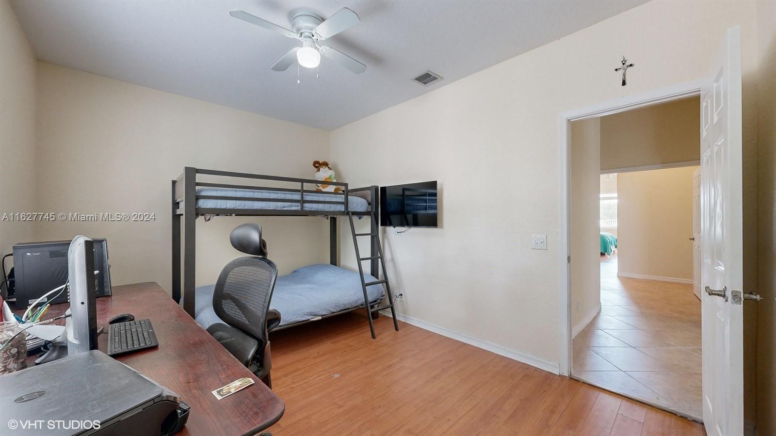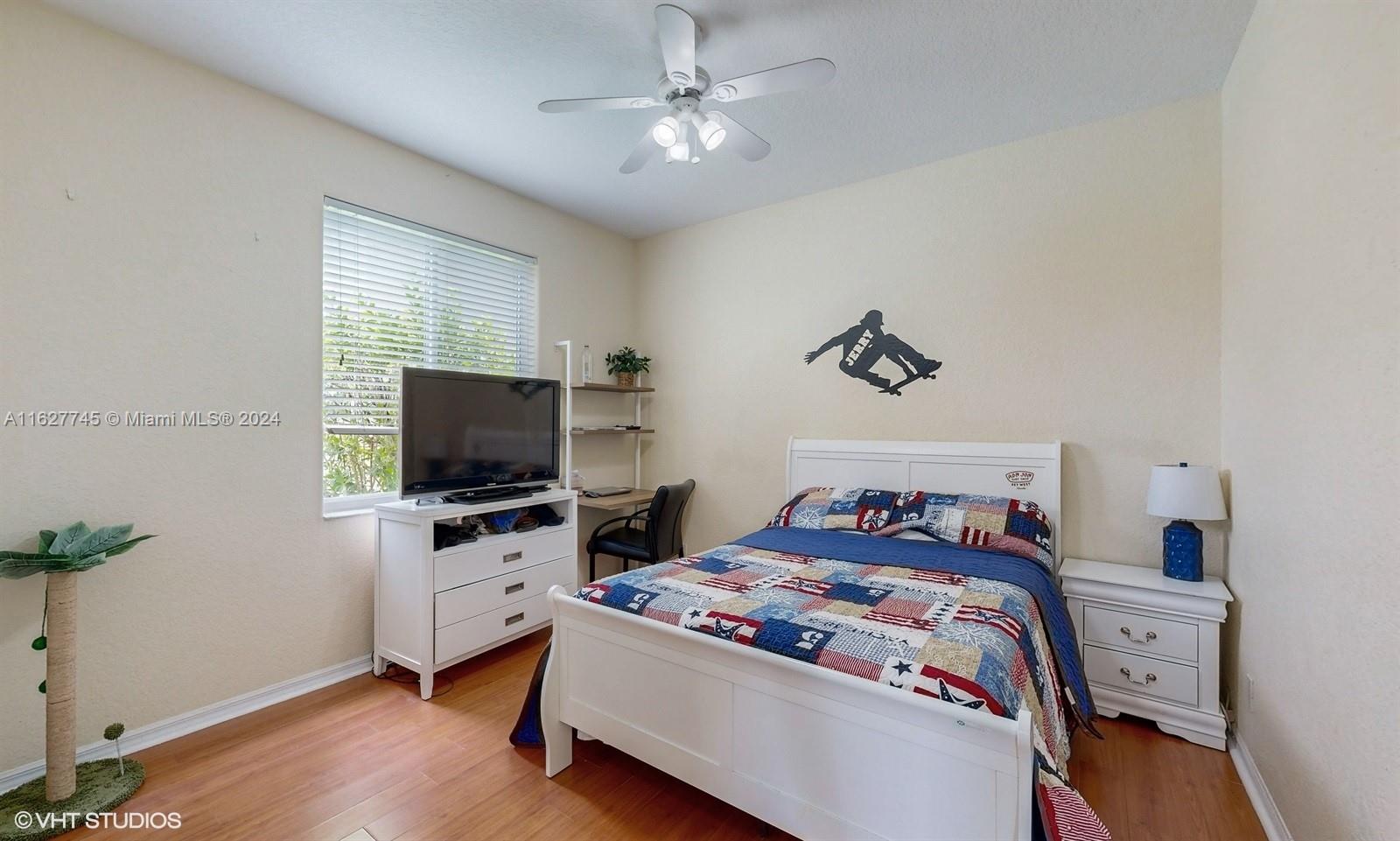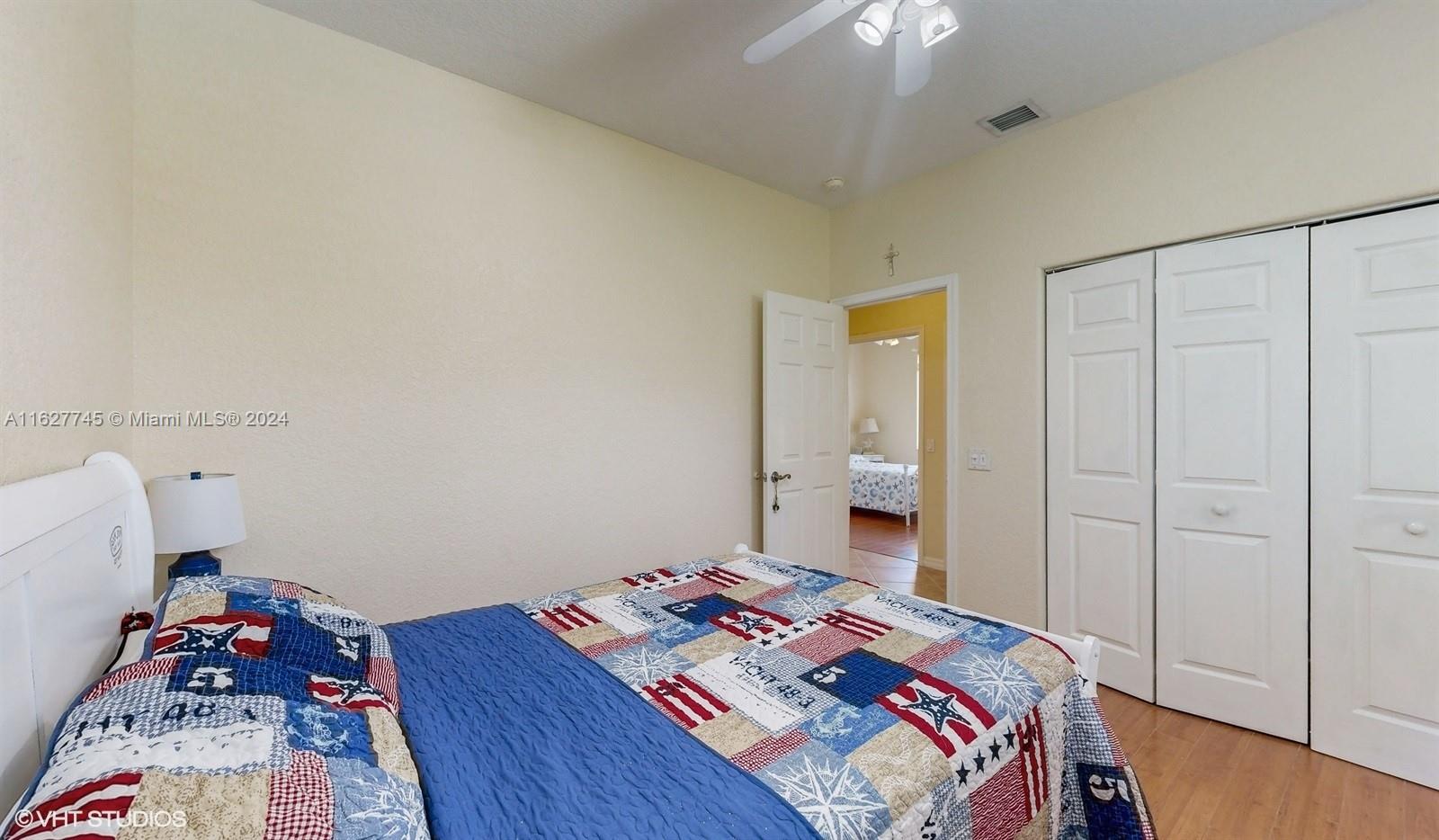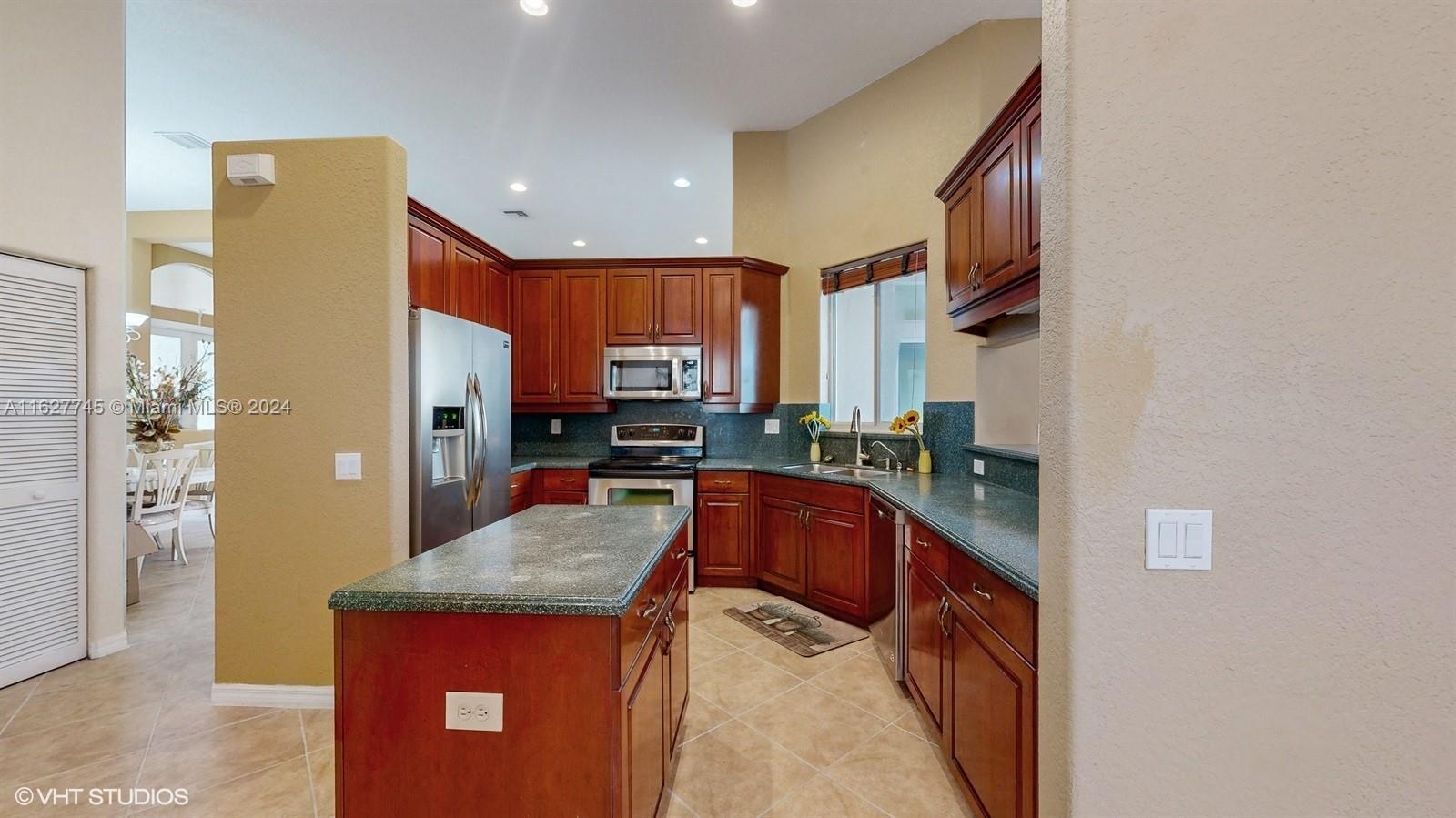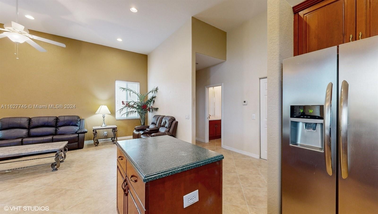 This 4-bedroom plus bonus room, 2.5-bathroom home is a gem located on a picturesque, fenced, waterfront lot overlooking the preserve. Experience breathtaking sunsets from your screened, covered patio. The home features a pavered driveway and front porch. Inside, you'll find a spacious layout with volume ceilings, new hurricane storm windows, and wood kitchen cabinets. There is a formal living room, dining room, and a large family room. The 2-way, split floor plan ensures privacy. There is a laundry room and a 2-car garage. The Savanna community offers the best clubhouse in Weston, complete with a heated lap pool, a huge communal pool and amenities such as miniature golf, a basketball court, a soccer field, roller hockey, a kids' playground, and a cafe. New floors installed in all bedrooms