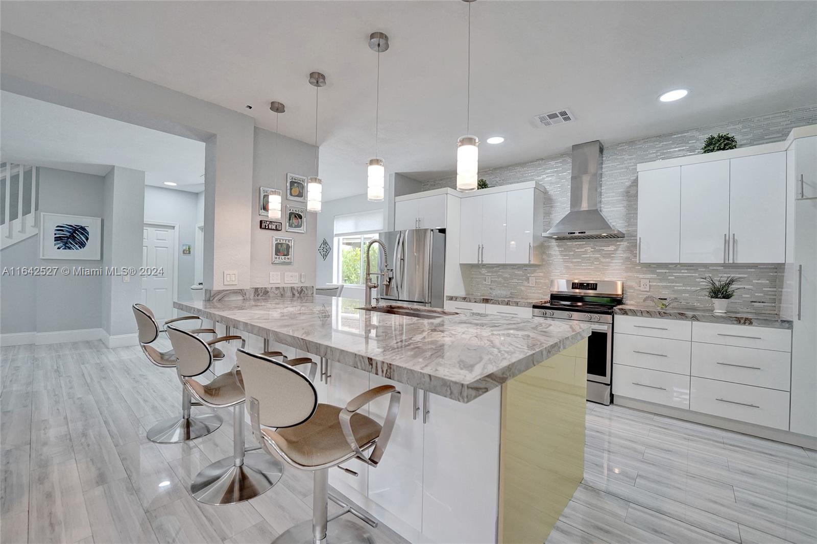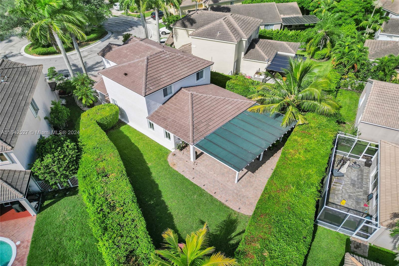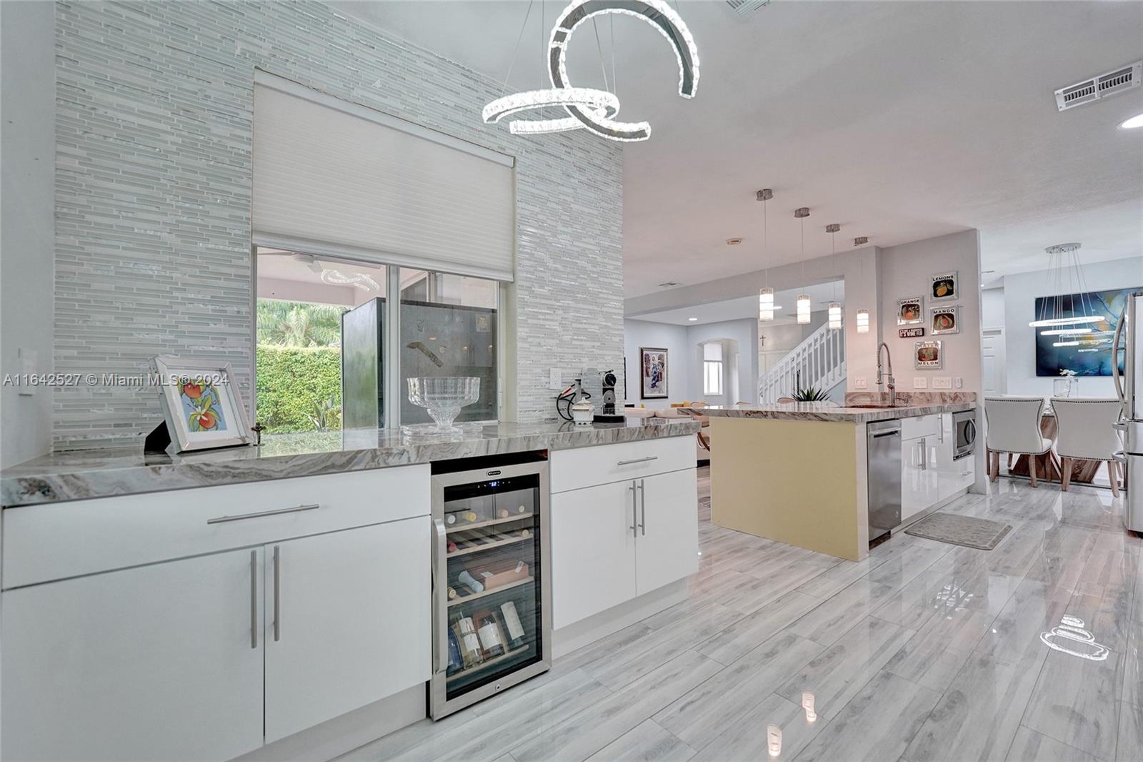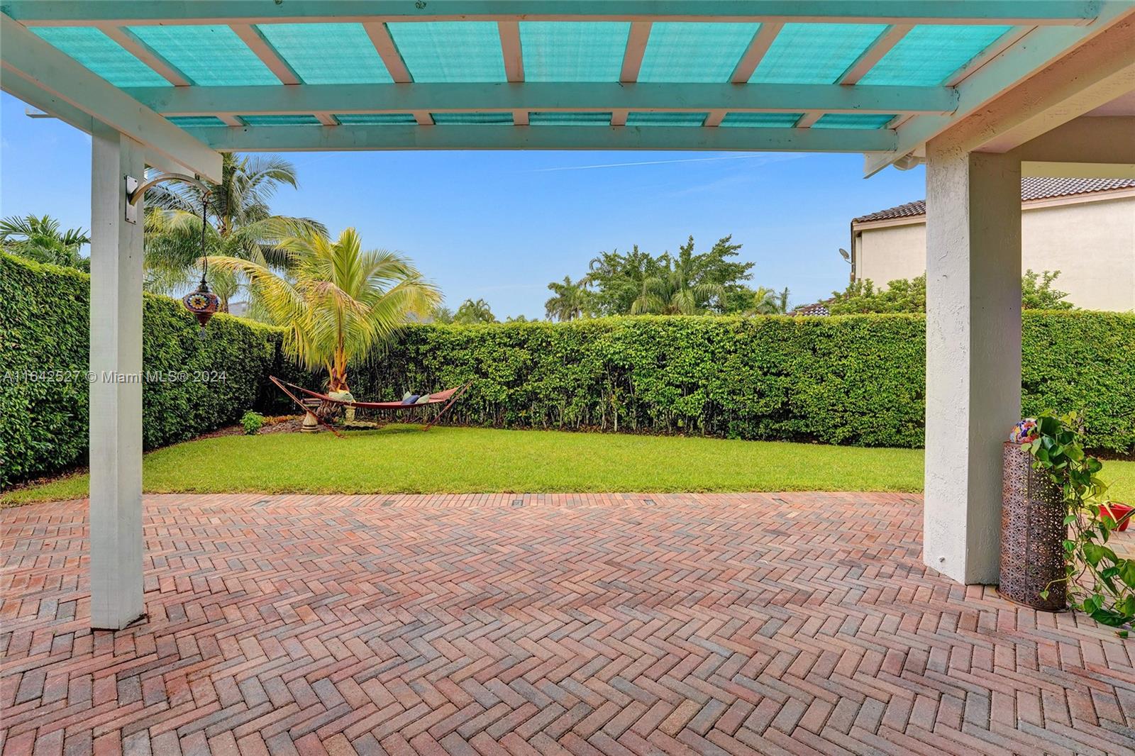 Experience luxury living in the prestigious gated community of Savanna, Weston. Nestled in a serene cul-de-sac, this remodeled home offers a NEW ROOF (2024) and freshly painted exterior (2024). An expansive private yard with a vast paver patio, pergola for seamless outdoor living, and a 5-ton outside/inside AC unit (2020). Step inside to find ceramic floors, LED lighting, and a stylish half-bath. The modern kitchen features white cabinetry, Aragonite stone countertops, high-end appliances, and a coffee area with a wine refrigerator. Upstairs, the master suite awaits with an oversized primary bath + 3 additional bedrooms with a beautifully renovated secondary bath. AT&T Fiber Optic High-Speed Internet ready! The community offers many amenities and A+ schools nearby.
