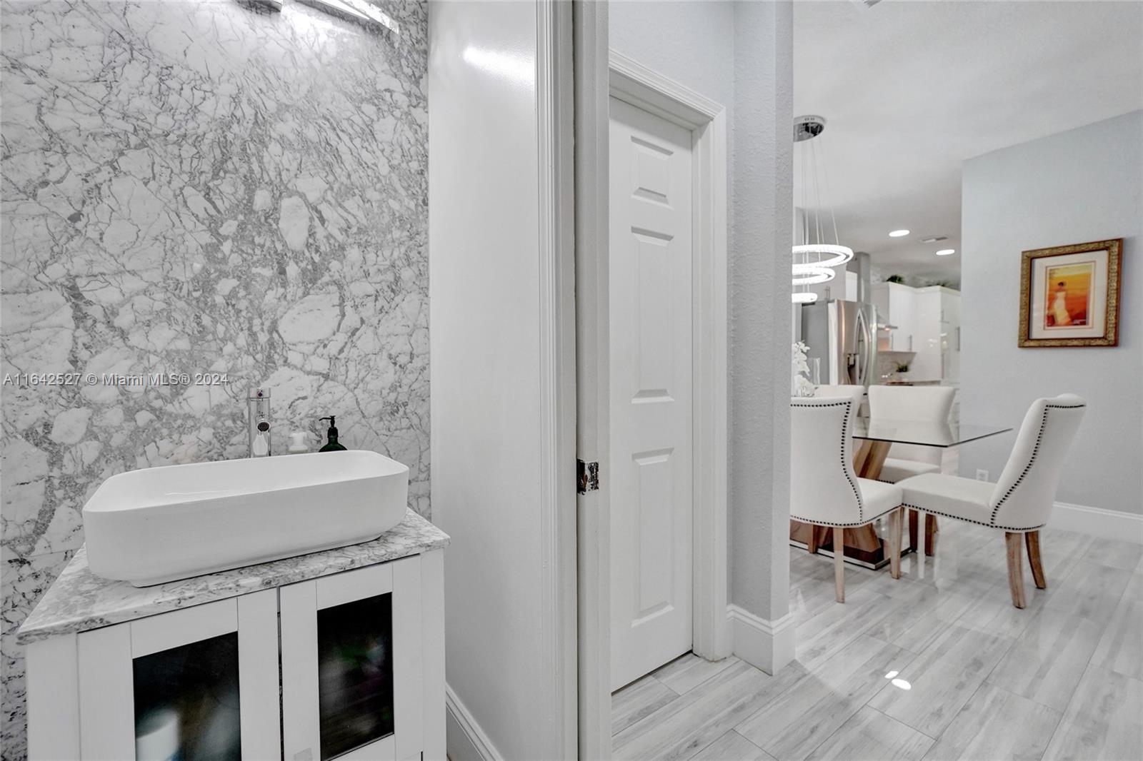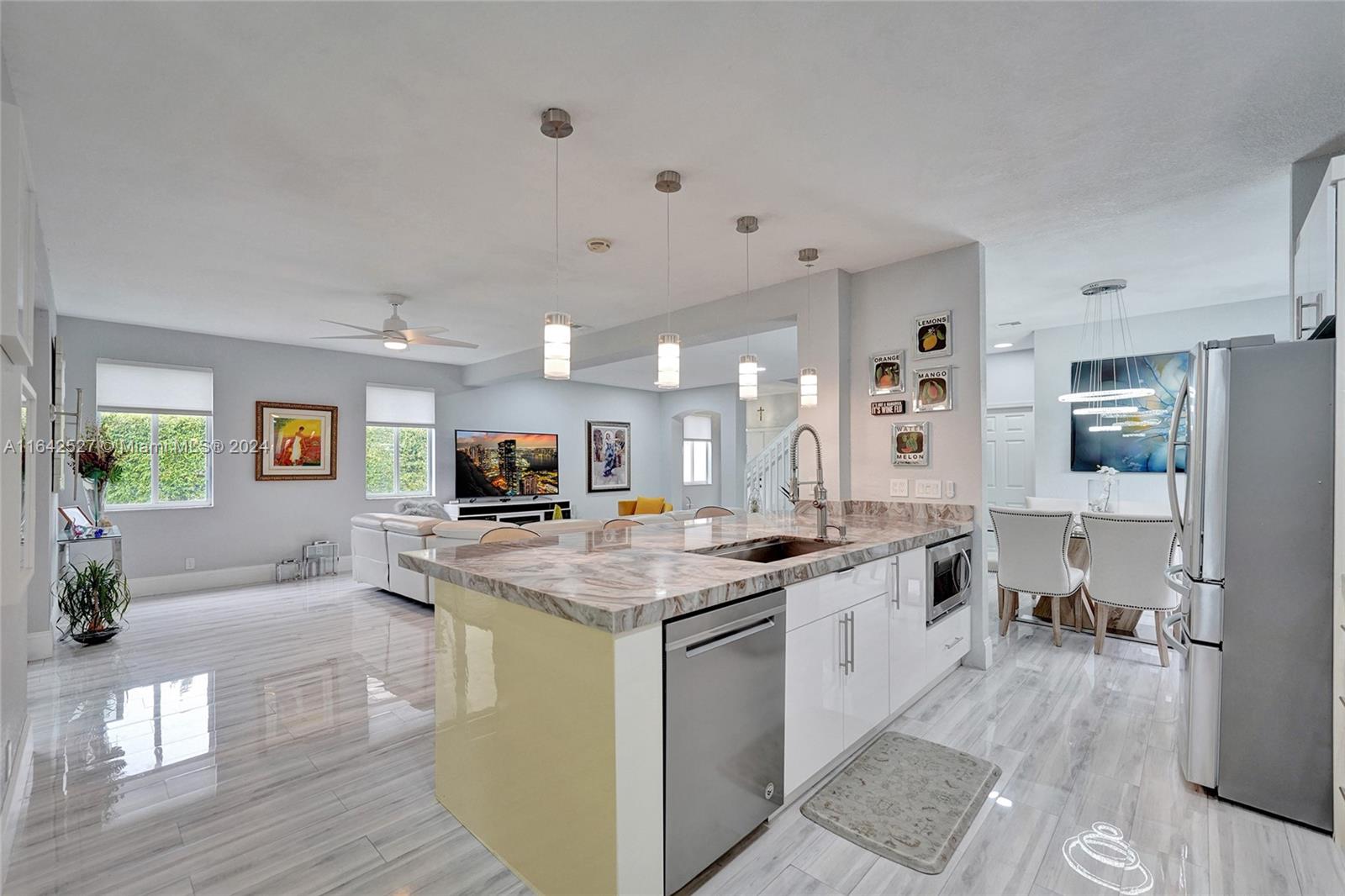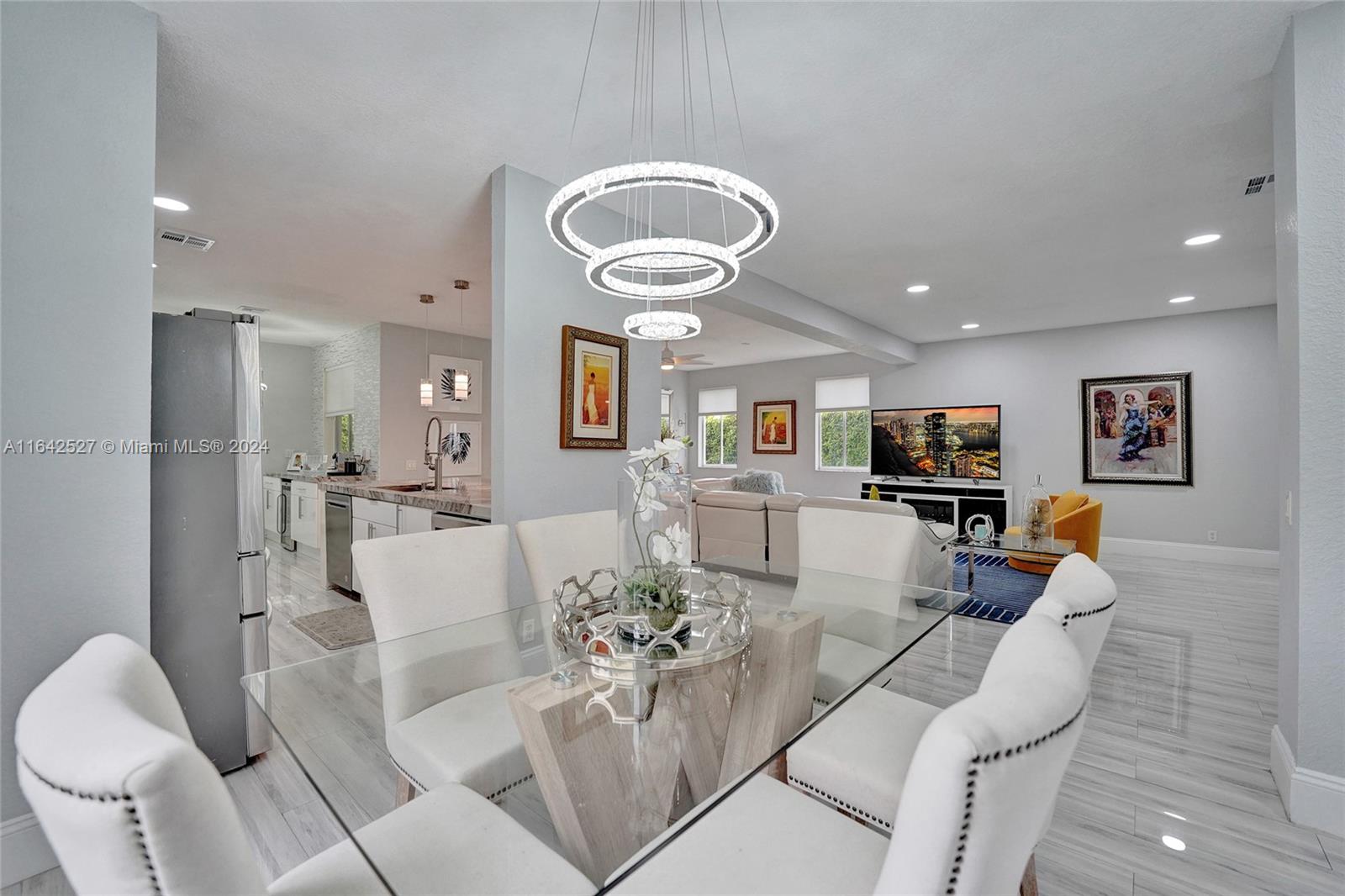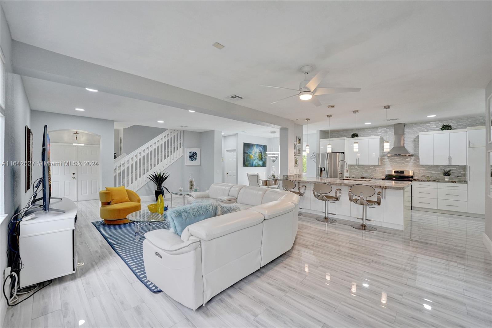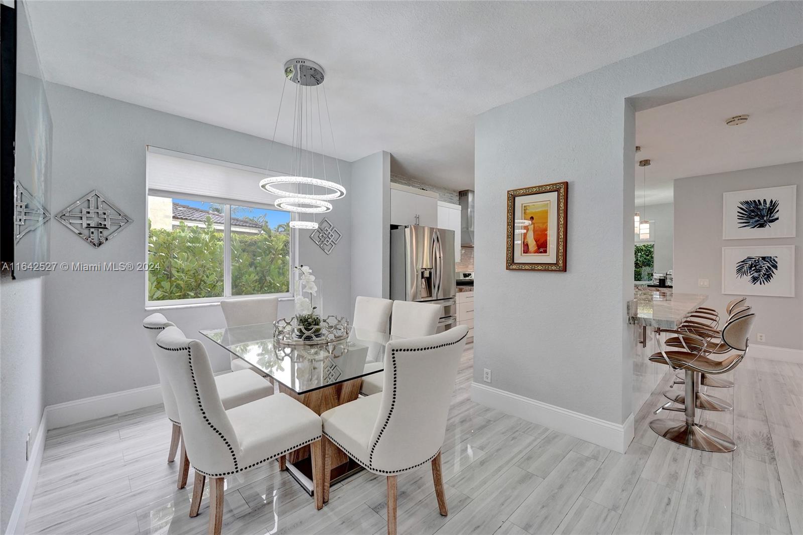 Experience luxury living in the prestigious gated community of Savanna, Weston. Nestled in a serene cul-de-sac, this remodeled home offers a NEW ROOF (2024) and freshly painted exterior (2024). An expansive private yard with a vast paver patio, pergola for seamless outdoor living, and a 5-ton outside/inside AC unit (2020). Step inside to find ceramic floors, LED lighting, and a stylish half-bath. The modern kitchen features white cabinetry, Aragonite stone countertops, high-end appliances, and a coffee area with a wine refrigerator. Upstairs, the master suite awaits with an oversized primary bath + 3 additional bedrooms with a beautifully renovated secondary bath. AT&T Fiber Optic High-Speed Internet ready! The community offers many amenities and A+ schools nearby.