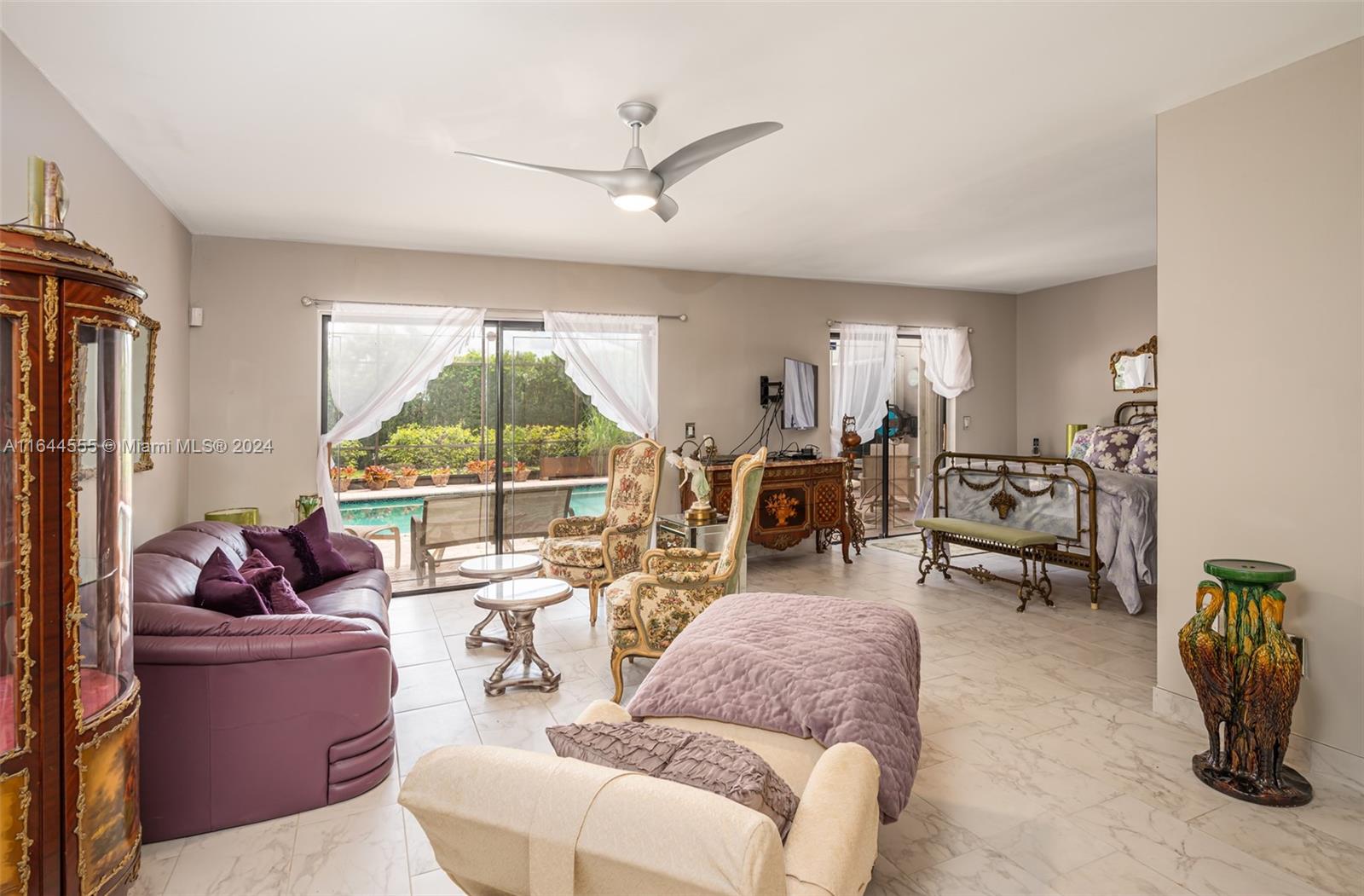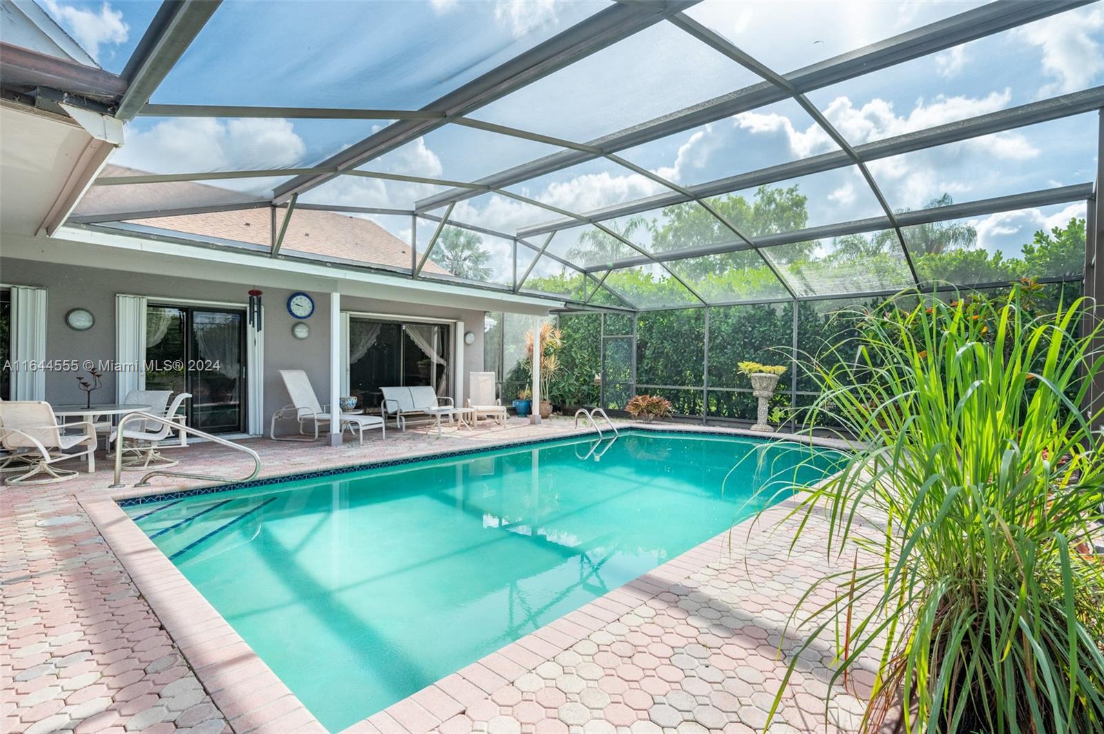 Welcome to your dream home in sought after Bonaventure Lakes community! This stunning 3-bed, 3-bath residence w/ 2,328 SF on an oversized 8,859 SF cul-de-sac lot offers ultimate privacy. Step inside to discover a beautifully updated kitchen, boasting top-of-the-line stainless steel appliances, sleek cabinetry, and elegant porcelain tiles. The spacious primary suite features a cozy sitting area, perfect for unwinding after a long day. The open floor plan flows seamlessly, enhanced by modern LED lighting. Enjoy the Florida lifestyle w/ a heated, screened-in pool & paver deck, ideal for entertaining or simply relaxing. Additional amenities include a 1-car tiled garage w/ AC, washer/dryer, & laundry tub, as well as sauna & custom built workshop/storage shed. Accordion shutters throughout.