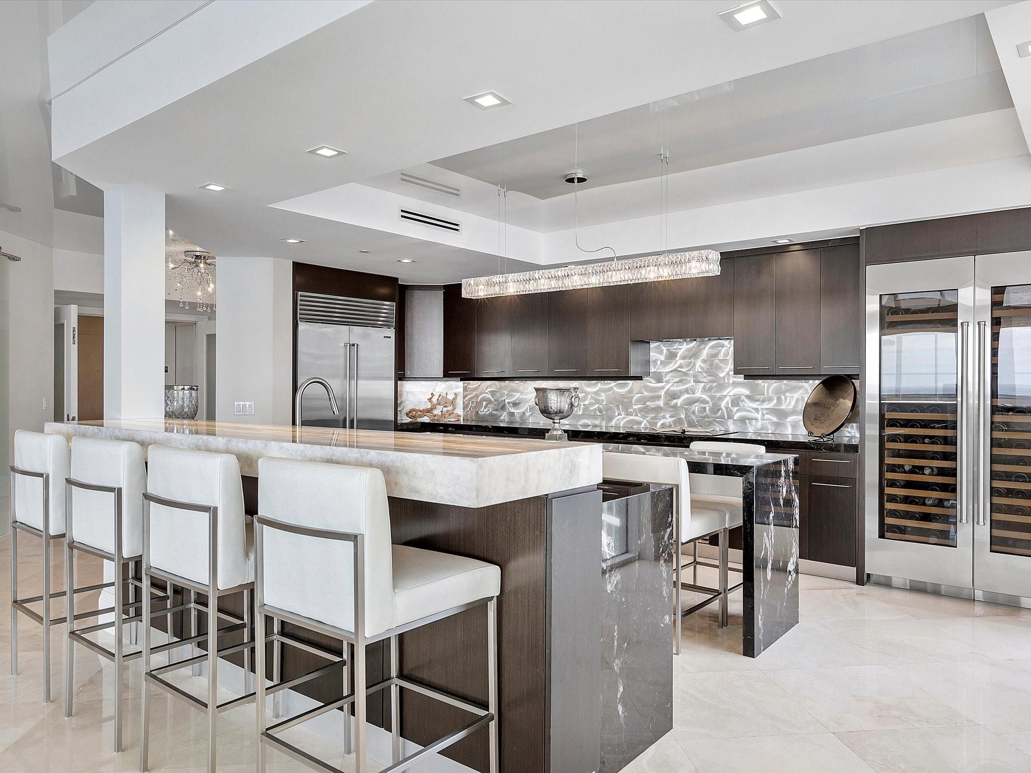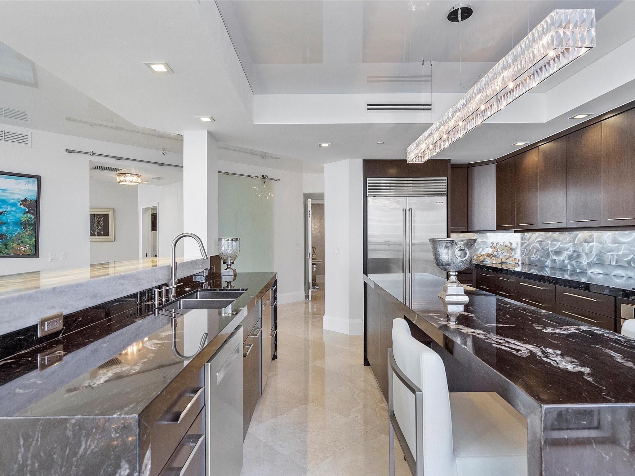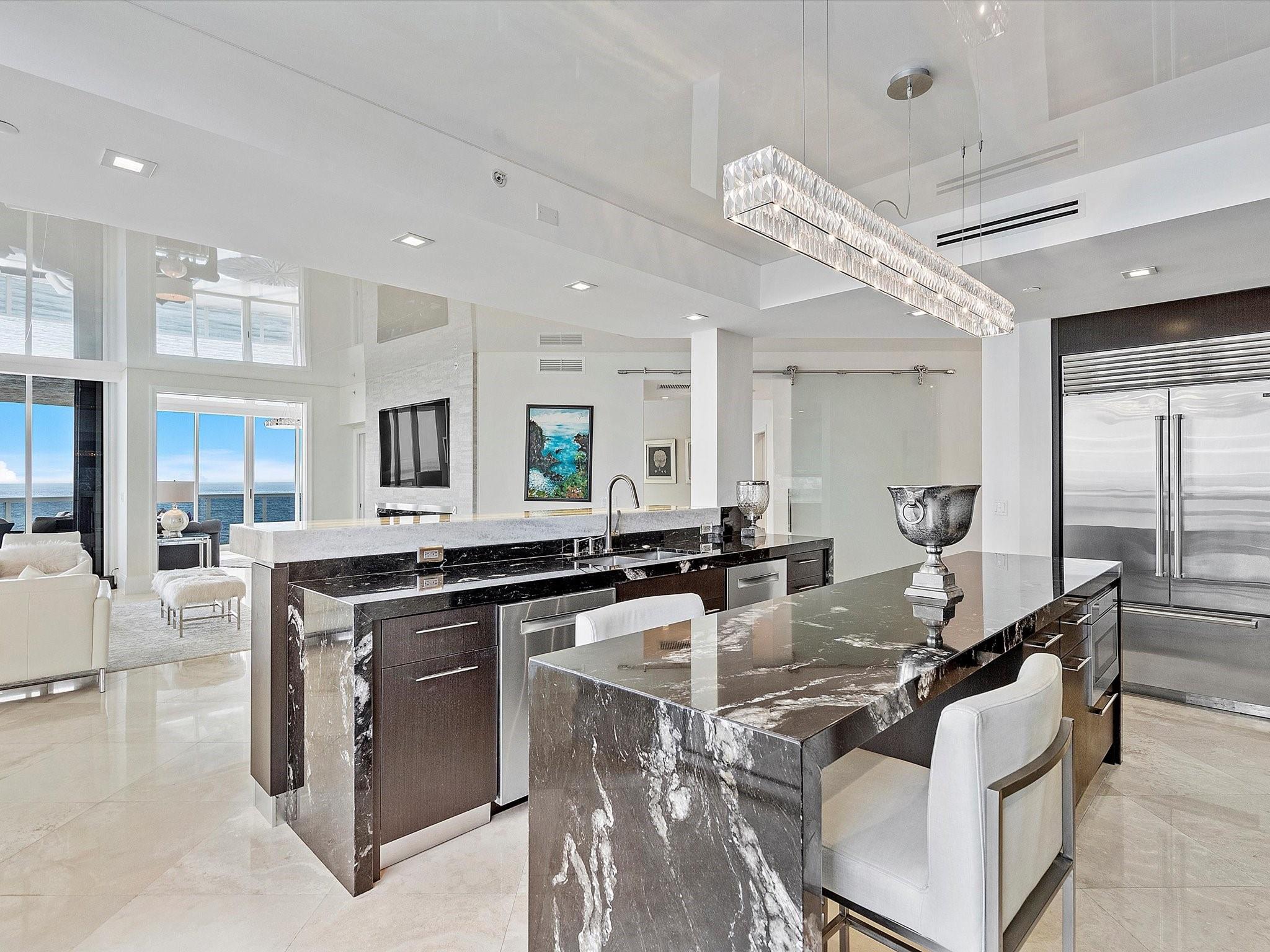 Direct Ocean Custom Renovated L'Hermitage Dream Home with 3 en-suites overlooking resort, sand, ocean, coastline. Magnificently renovations include new kitchen, baths, rooms, closets, stretch ceilings, entrance way. Private elevator, 2 parking spots, large wraparound balcony. The most sensational sunrises. L'Hermitage is a resort-like complex with over 10 acres of Oceanfront/Beachfront property with tennis, fitness, fenced complex, attended beach. Pool deck has over 2.5 acres which includes an outdoor restaurant, a lap pool and a separate oceanside pool, 2 spas, kiddie pool, and ocean access. Each building has a fitness center, saunas, steam, massage. Restaurants/Salons/Shopping Minutes from Las Olas. Pets friendly.