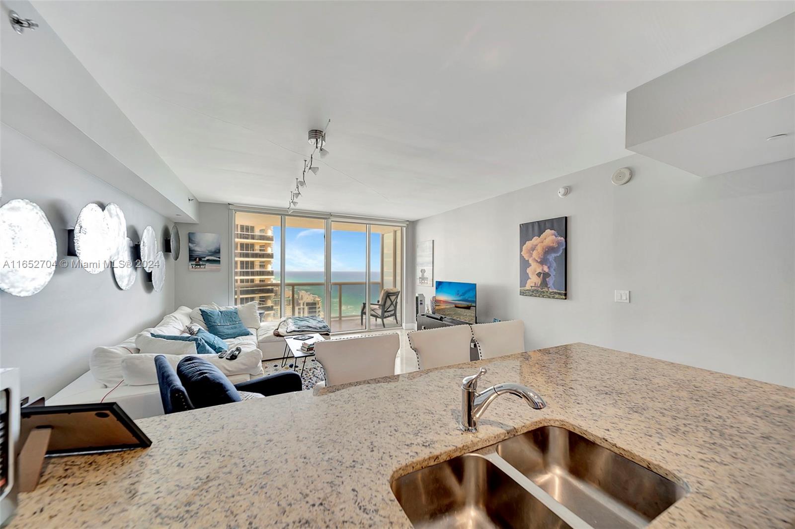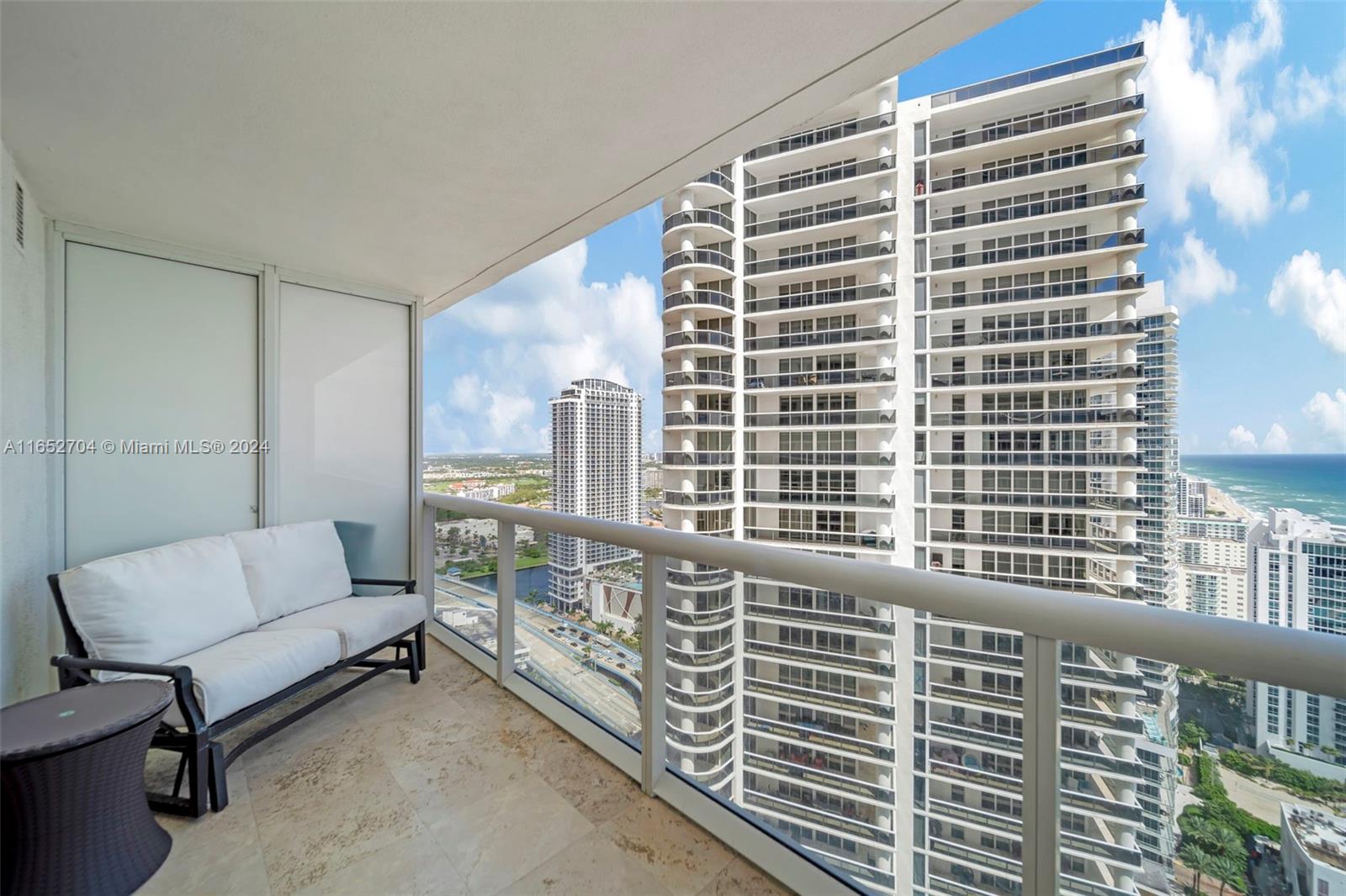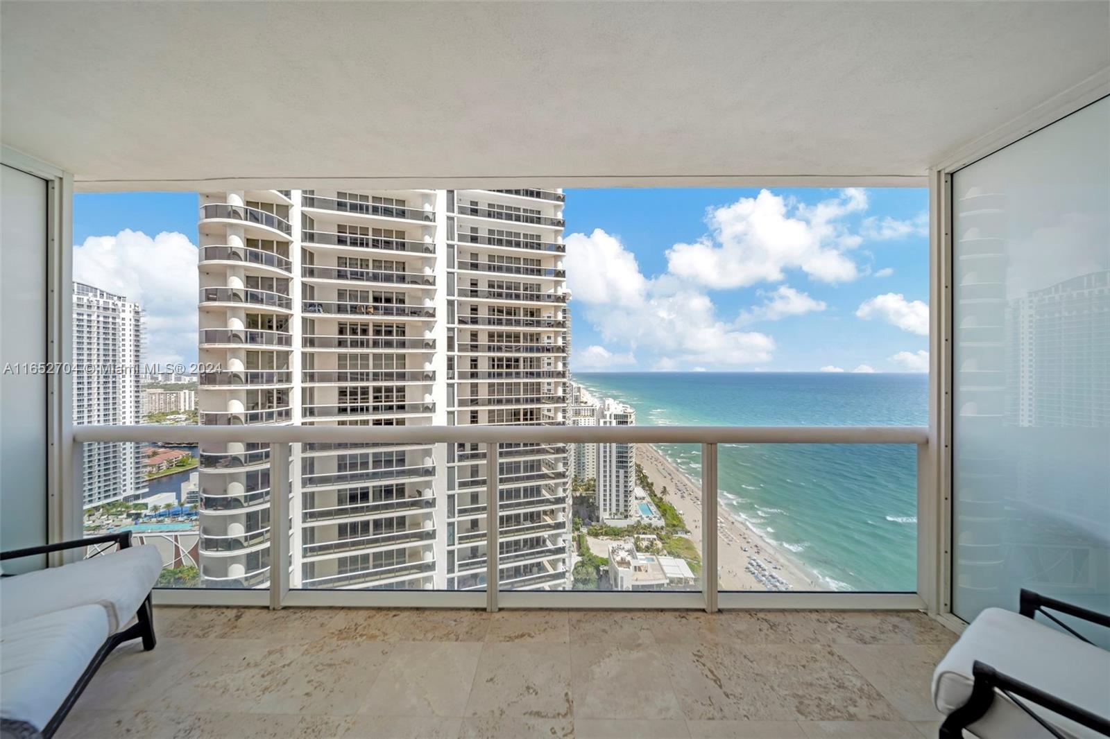BEST PRICE OCEAN VIEW! Step into your haven of spacious, light-filled living. Gorgeous FULLY furnished one bedroom plus den, one bathroom condo on the 36th floor, offering stunning ocean views located at the Beach Club in Hallandale Beach. Designer finishes featuring marble flooring, custom kitchen with elegant cabinetry, granite countertops, SS appliances elevate your culinary experience. High impact windows and doors. In unit washer and dryer. Private terrace perfect for enjoying al fresco breakfasts while basking in the Florida sunshine. This unit offers modern comforts and a welcoming ambiance. Residents of Beach Club enjoy an array of luxury amenities : 24-hour concierge, resort style pool, one of kind fitness center with breathtaking ocean views, full service spa and 24 hour valet.
