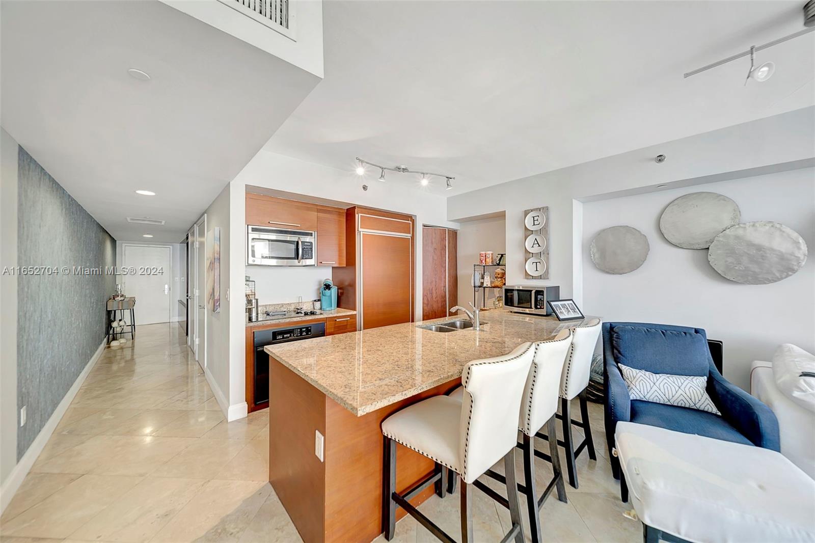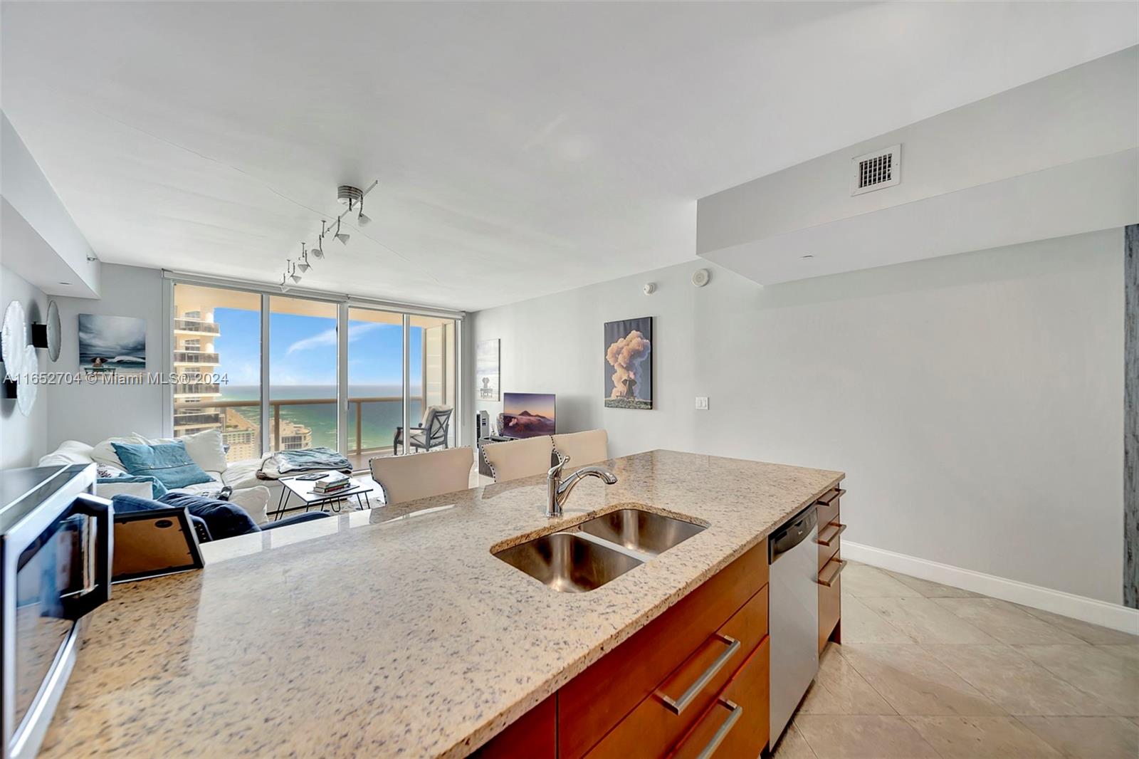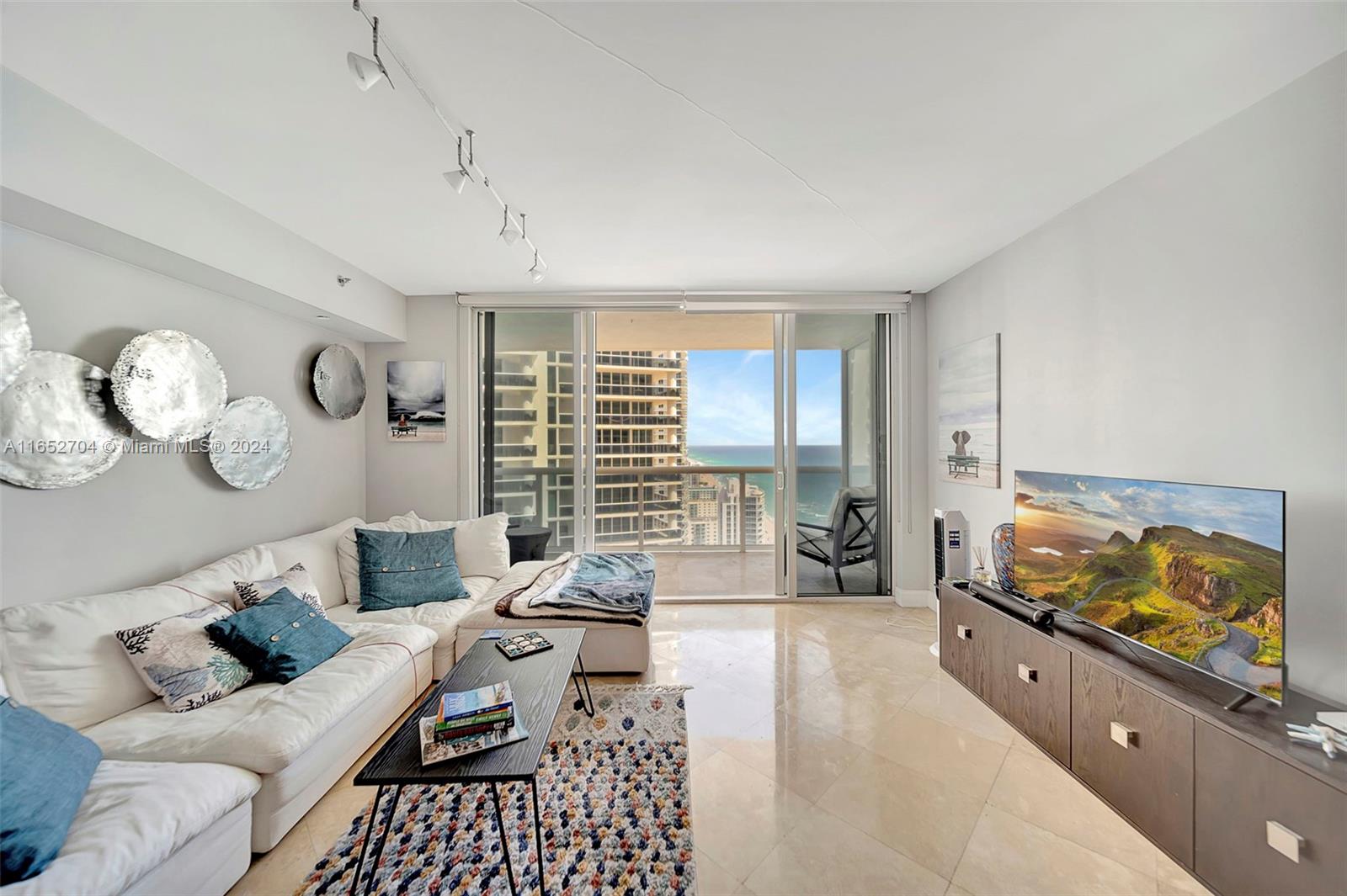 BEST PRICE OCEAN VIEW! Step into your haven of spacious, light-filled living. Gorgeous FULLY furnished one bedroom plus den, one bathroom condo on the 36th floor, offering stunning ocean views located at the Beach Club in Hallandale Beach. Designer finishes featuring marble flooring, custom kitchen with elegant cabinetry, granite countertops, SS appliances elevate your culinary experience. High impact windows and doors. In unit washer and dryer. Private terrace perfect for enjoying al fresco breakfasts while basking in the Florida sunshine. This unit offers modern comforts and a welcoming ambiance. Residents of Beach Club enjoy an array of luxury amenities : 24-hour concierge, resort style pool, one of kind fitness center with breathtaking ocean views, full service spa and 24 hour valet.