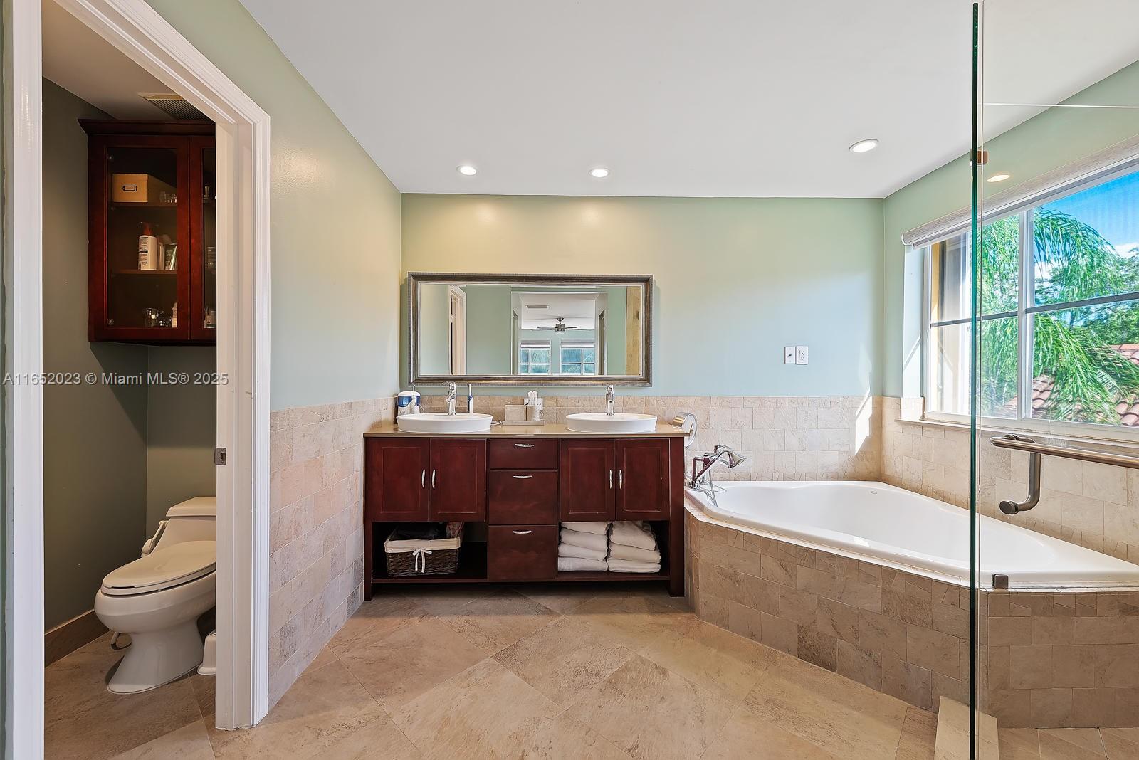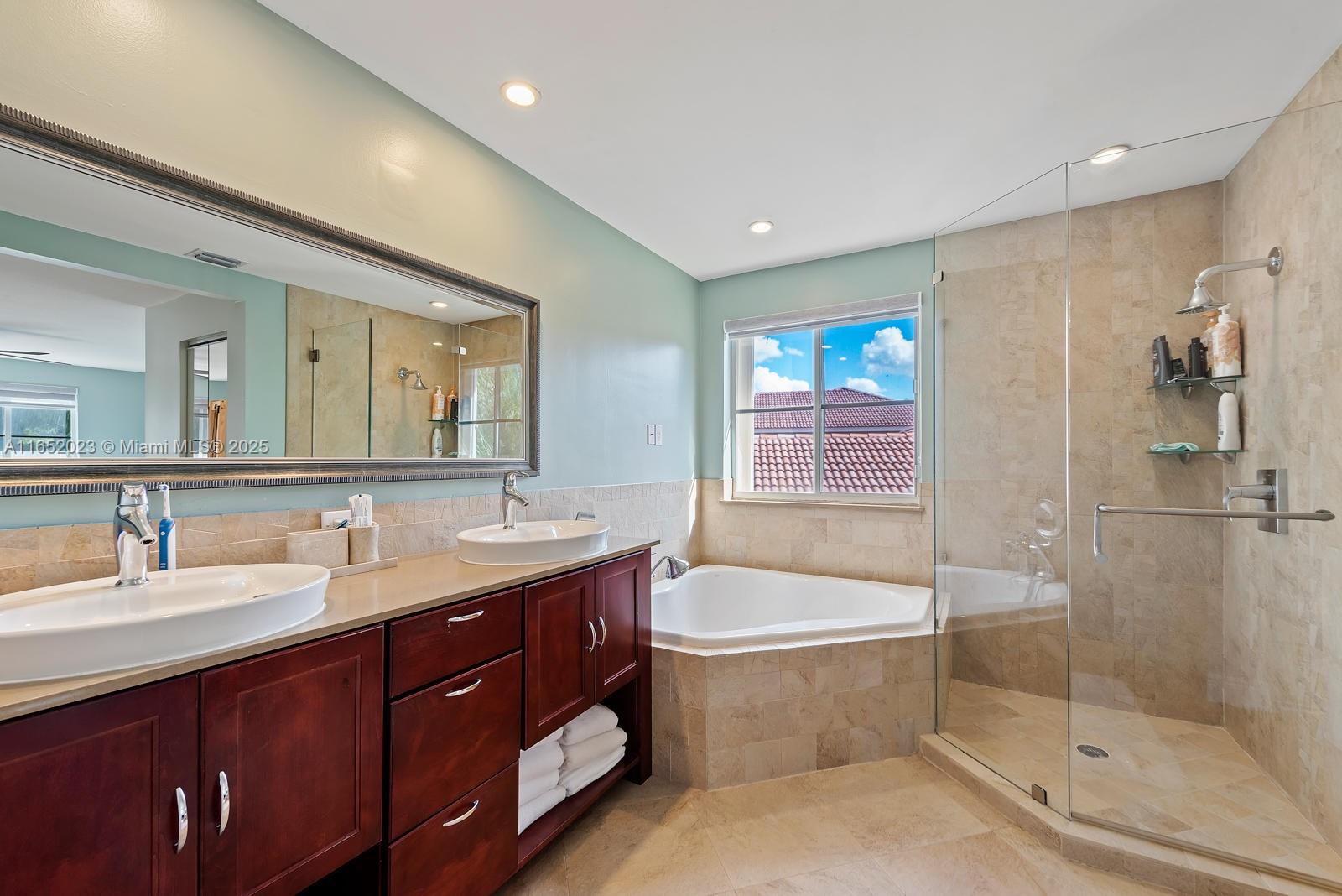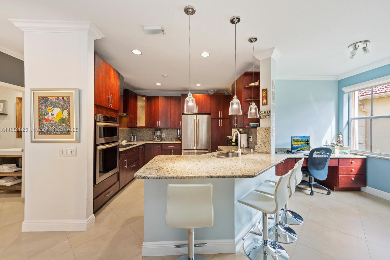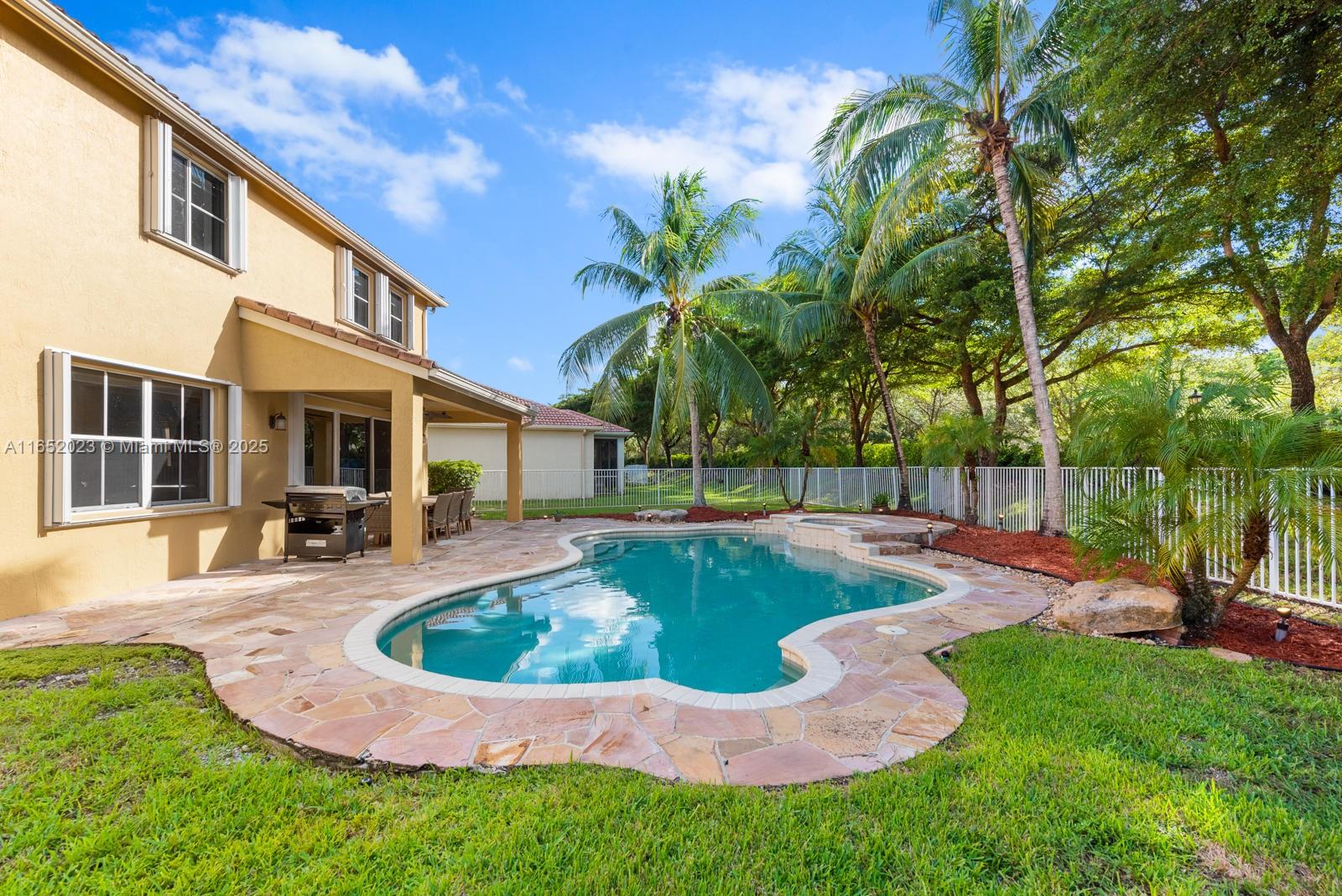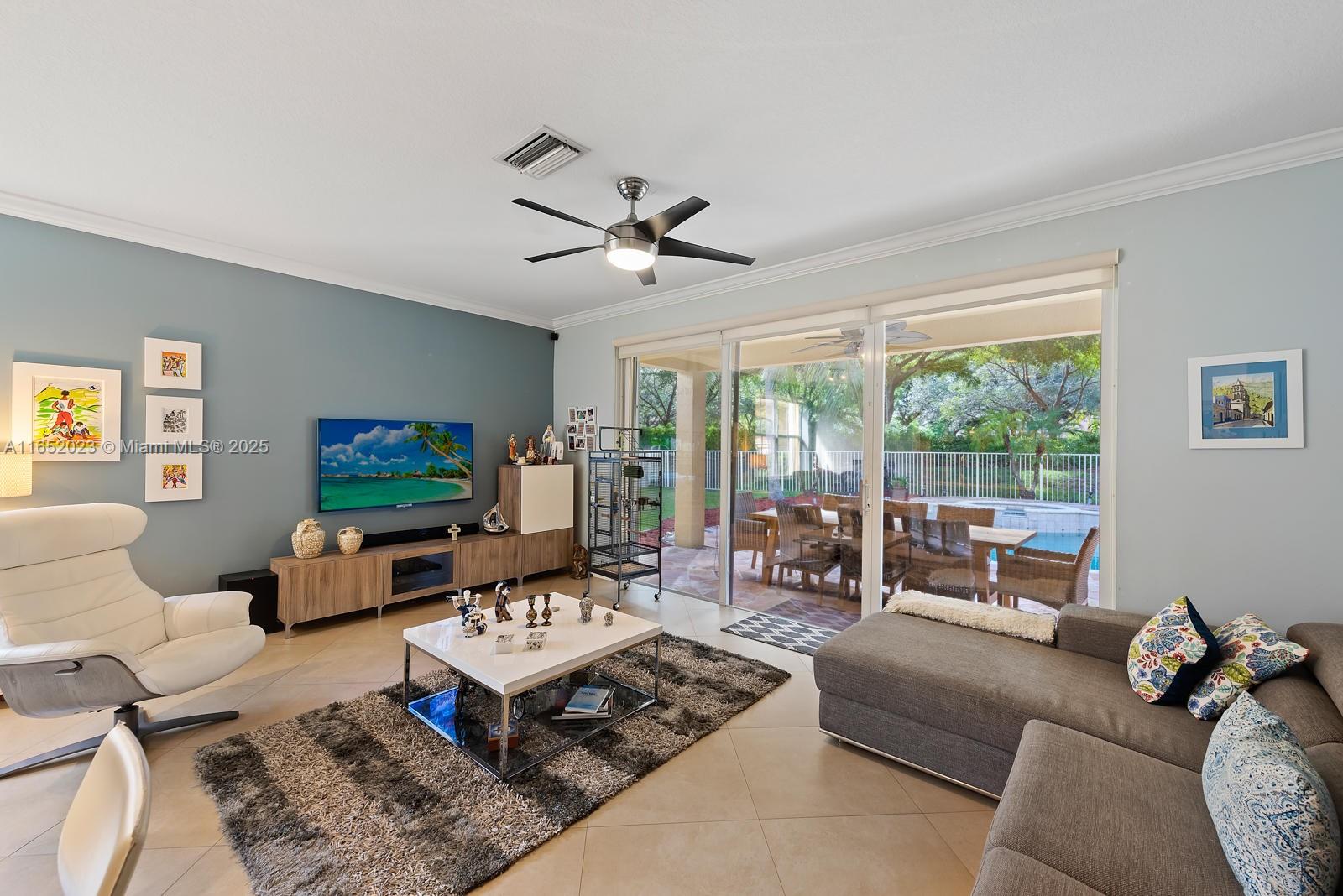Popular Weston Ridges community home w/ newly surfaced pool. 4 bedrooms, 3.5 baths, 1 bed on ground level with en-suite, 2nd floor den, besides large family room, large pie shaped lot, in-ground salt water pool/spa, automatic pool cleaner. Home backs to berm. Located in cul-de-sec. Closest community of single family homes to highly rated Cypress Bay High, Falcon Cove Middle, Broward College at Weston & Library. Minutes to Manatee Bay & Everglades Elementary. First Floor diagonally installed Porcelain tiles throughout including bathrooms. High end Kitchen Aid appliance in Kitchen, Thomasville wood cabinets w/ pull out drawers, granite counters, LG Large Capacity washer dryer. Second floor hard wood throughout (including stairs). Community with pickle ball, large pool, BBQ & party room.