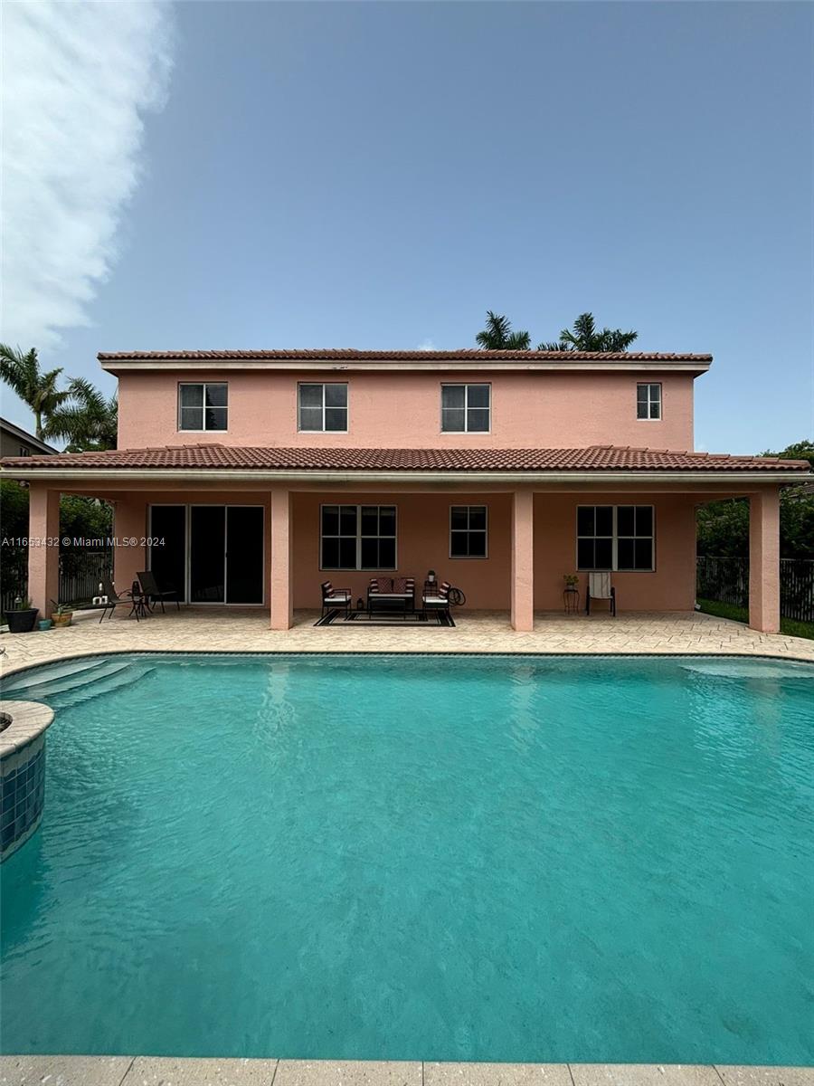 Amazing Single-Family Home in the Sought-After Gated Community of Savanna. This stunning 2-story residence features a soaring high ceiling and tile floors on the first floor. The thoughtfully designed floor plan includes 1 bedroom and a full bathroom on the main level. The open kitchen connects to the spacious family room, living room, and dining room. The expansive main bedroom comes with generous closet space. Enjoy the extended covered patio with a stunning pool. This home offers 6 bedrooms, 4 full baths, a 2-car garage, a separate laundry room, 2 A/C units, and accordion shutters. The community boasts a clubhouse with amenities and a ballroom/party area for rent. *** SELLER WILL CONTRIBUTE $30,000.00 TOWARDS NEW ROOF ***