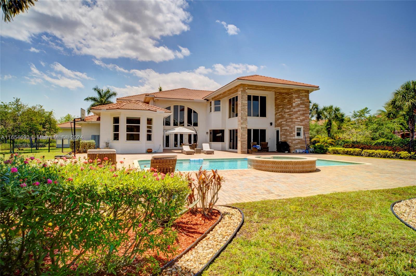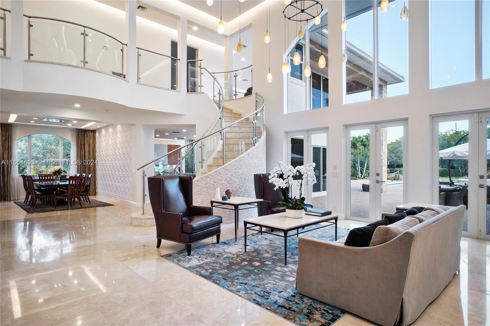 Beautifully decorated modern contemporary estate located in one of the most affluent neighborhoods in Weston. This estate features 6 bedrooms, 6 bathrooms, 2 half baths, a playroom, an office/studio, Mia Cucina Italian cabinetry, Wolf/Sub Zero stainless appliances, 2 two car garages, impact glass, oversized pool, imported Italian marble throughout its 6,900 sq ft of living space, located near A+ schools and much more.