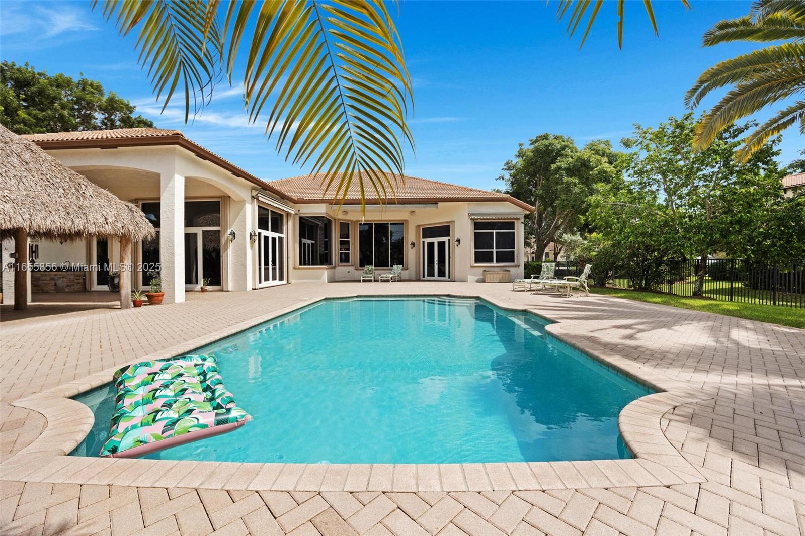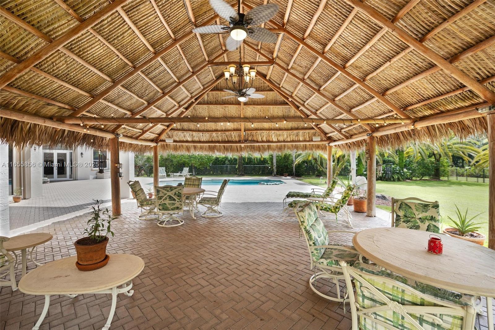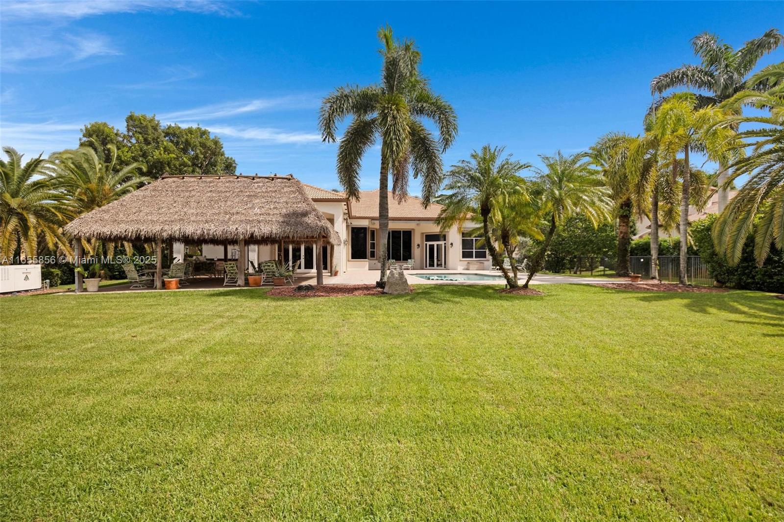 Davie~GATED~ULTRA Private*1-Story*4BED/5.5BATH~3Car Garage~Pool Estate*Blackhawk Ranches is exclusive of only 15 Homes~This Waterford LX Model is a Split Flr-plan comprised of 5419 ft.² w/Soaring 18ft ceilings.*Upon entering, observe the expansive layout offering an immaculate presentation w/Gorgeous views of the oversized Resort style Pool & Patio area*Featuring:Granite Kitchen w/SS appliances~Full hurricane protection~3 A/C units~Triple French doors~Full house Generac generator~Cuisine d'ete w/built in grill*All bedrooms En-Suite w/beautiful flooring & custom closets*Formal office*Primary bath w/walk-through shower~Can convert family rm for MOI Suite~Luxuriant landscape w/rapid growing privacy hedge & 30 X 30 Tiki Hut*$100K Roof credit from Seller at Closing*Prime location~Great schools!