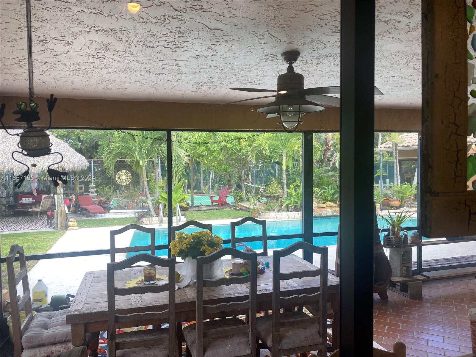 CASA DE AMOR... TENNIS ANYONE OR CONVERT TO PICKLE BALL COURT.... DAVIE HOME RETREAT FOR THE SPORTING ENTHUSIAST. THIS EXQUISITE HOME FEATURES 4 BDRMS, 2 FULL BATHS, PRIVATE TENNIS COURT, POOL, 4-6 PERSON SAUNA ROOM, TIKI HUT/EXERCISE ROOM (CURRENTLY)/BRICK WOOD -BURNING FIREPLACE/WET BAR/VAULTED CEILINGS/UNIQUE CUSTOM KITCHEN WITH BRICK DECOR/CUSTOM WINE BUILT IN FEATURE/OPEN FLOOR PLAN/GREAT ROOM WITH AMPLE SPACE. THIS PRIVATE CUSTOM HOME IS NESTLED IN THIS SMALL DIVISION OF GROVES ESTATES WITH UNIQUE HOMES THAT ARE IN THE IDEAL LOCATION. EASY ACCESS TO GREAT EQUESTRIAN TRAILS, PARKS. ENJOY OUTDOOR LIVING IN THIS LUSH LANDSCAPED AND RECREATIONAL PARADISE. THIS HOME IS PRICED TO SELL.